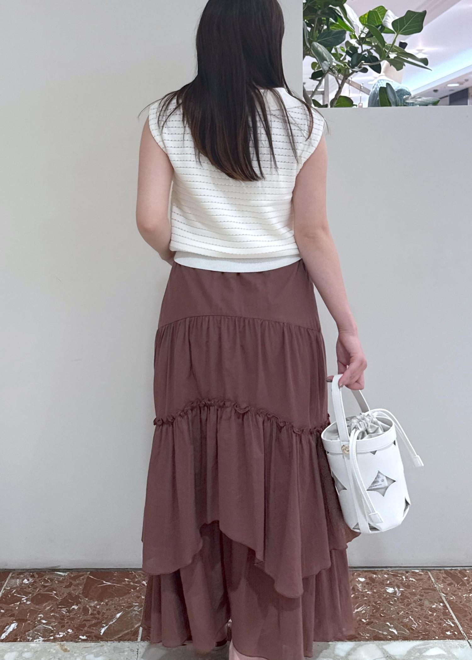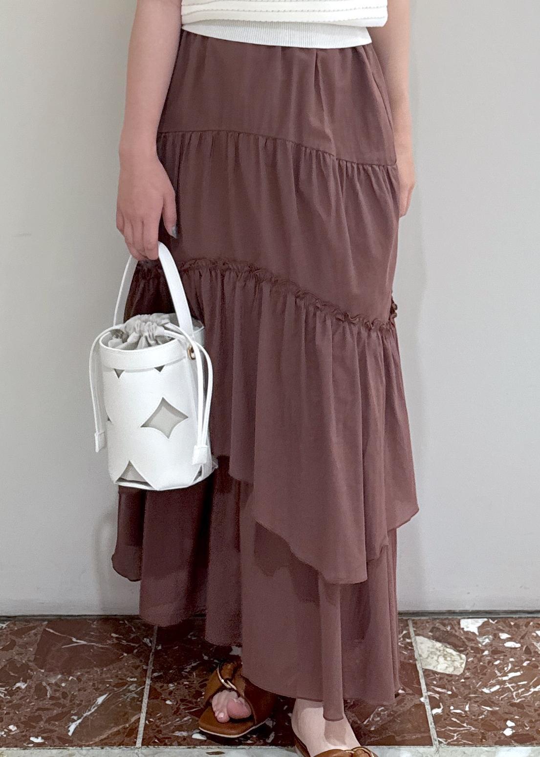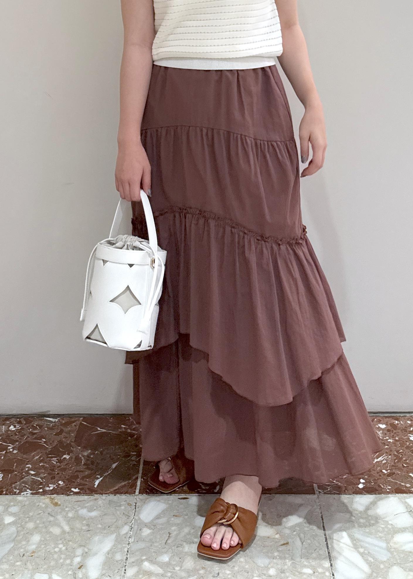 アウトレットVISボイルティアードスカートダークブラウン / F¥3,955レビュー裏地がしっかりついたティアードスカートなので