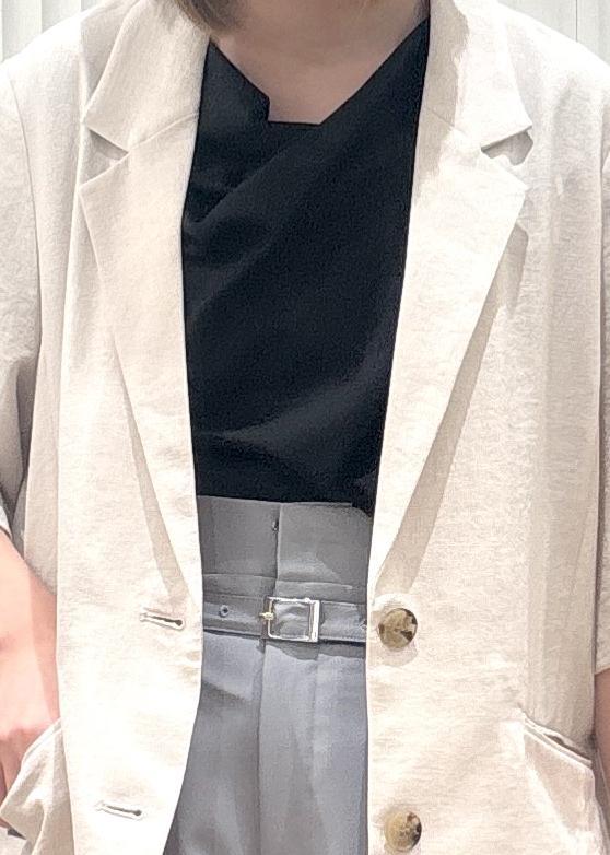 VIS【新色追加】【防シワ/接触冷感】ベルトディテールタックワイドスラックスパンツサックス / SS¥6,589レビュー153センチ、SS着用です!