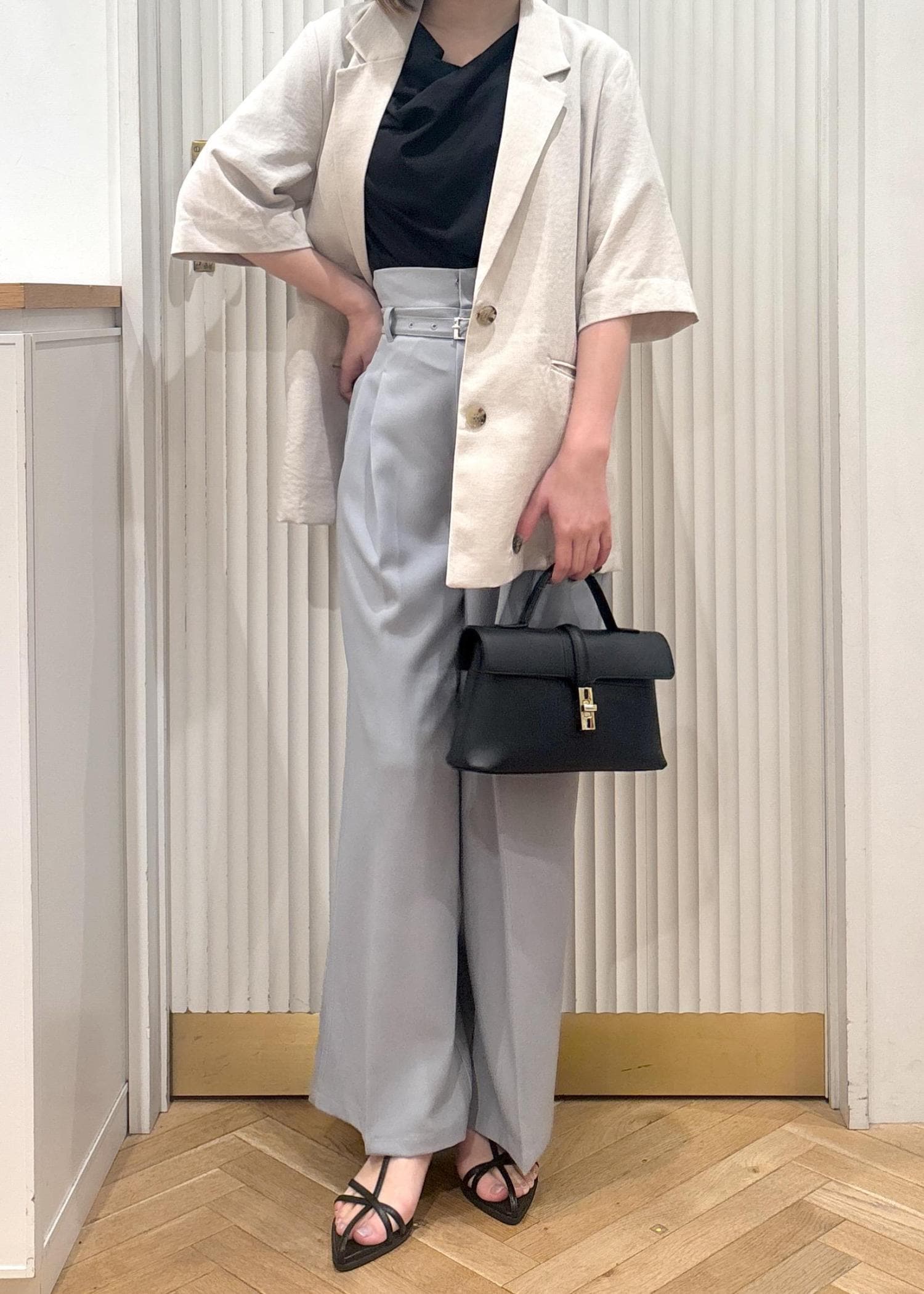ハイウエストのパンツで、低身長でも足が長く見え、