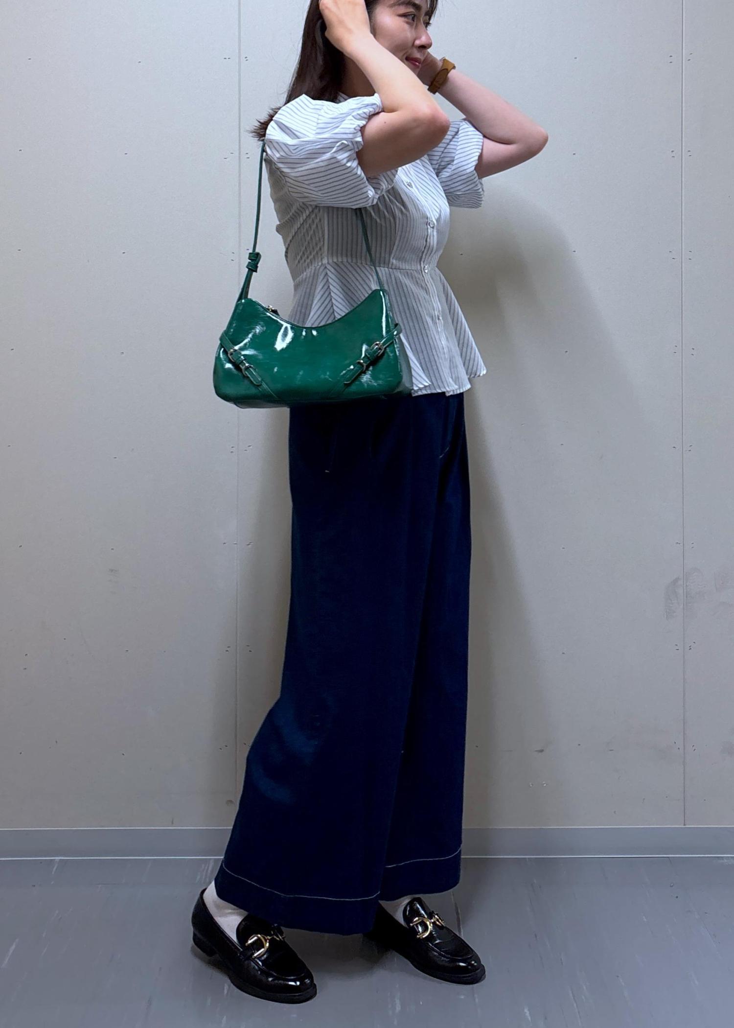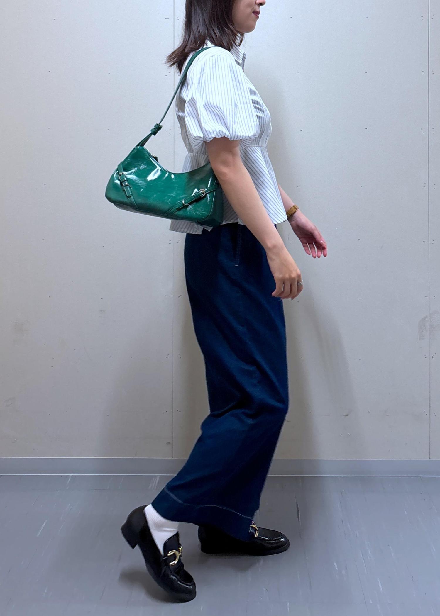 アウトレットVISフロントベルトショルダーバッグダークグリーン / F¥2,768レビュー軽さのあるバッグです。長財布や大きいペットボトルもしっかり入ります。