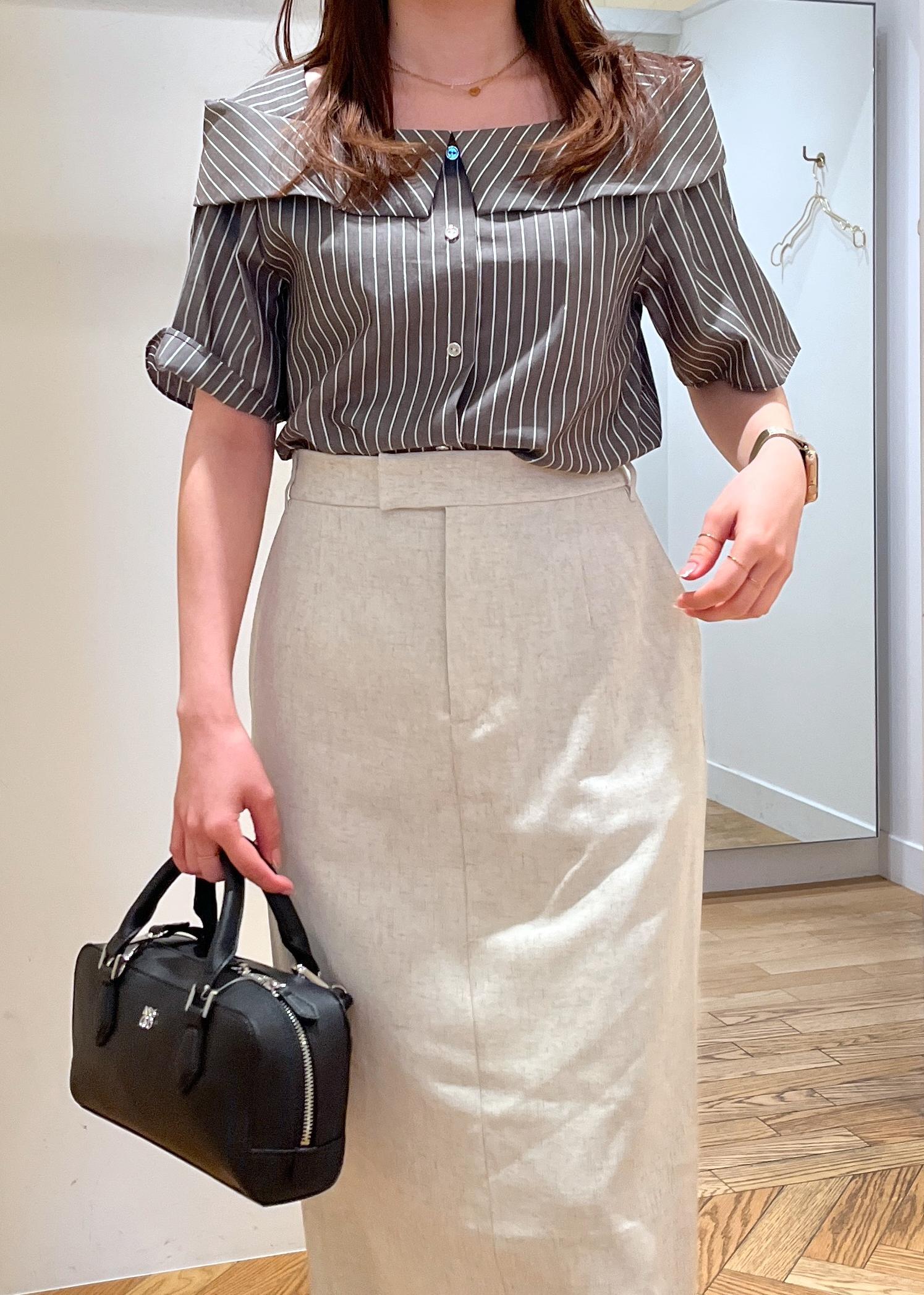 夏の一枚に着映えること間違いなしの、オフショルブラウス!
