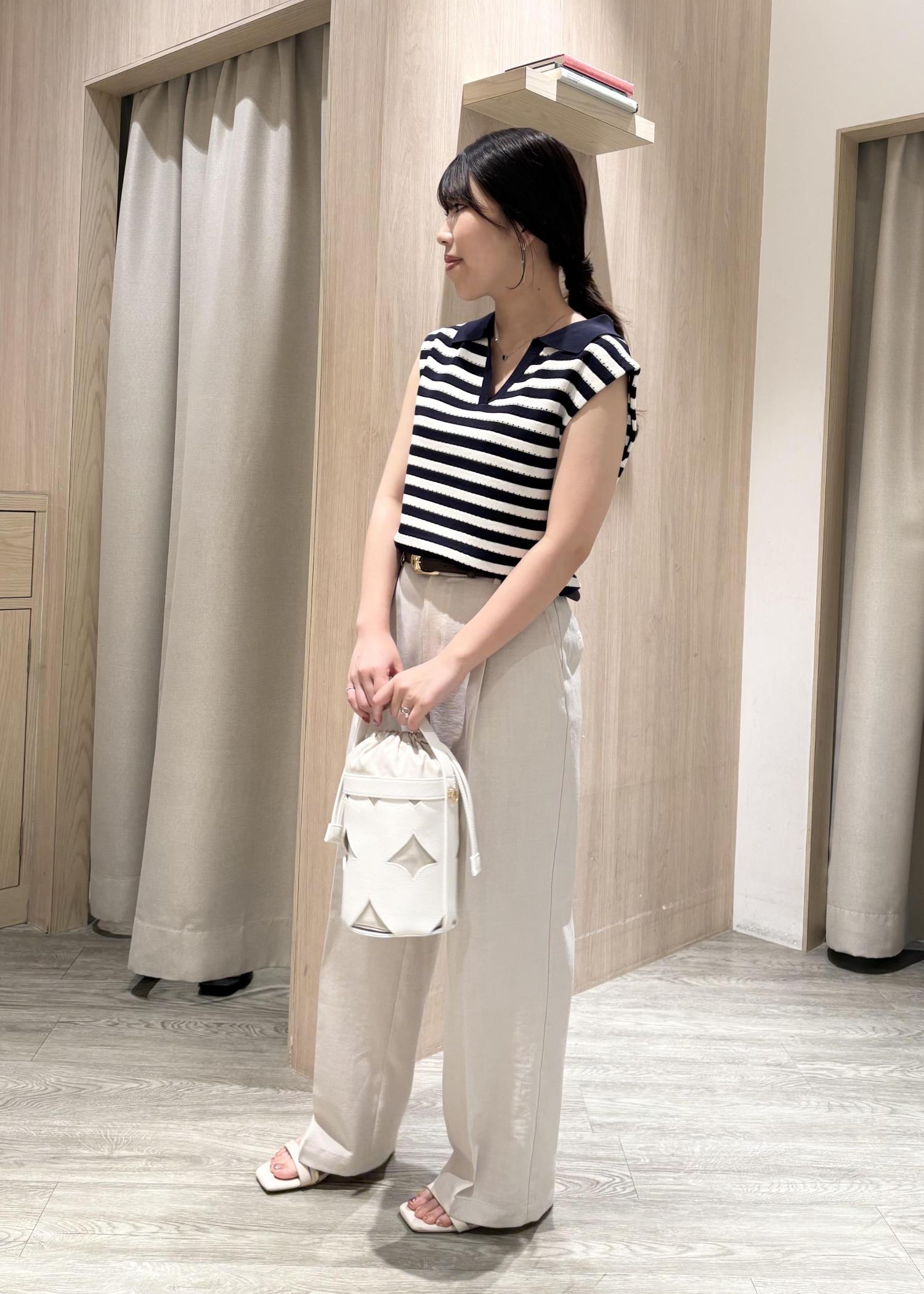 ゴールドのバックルがアクセントになってシンプルなコーデを引き立たせてくれますよ。