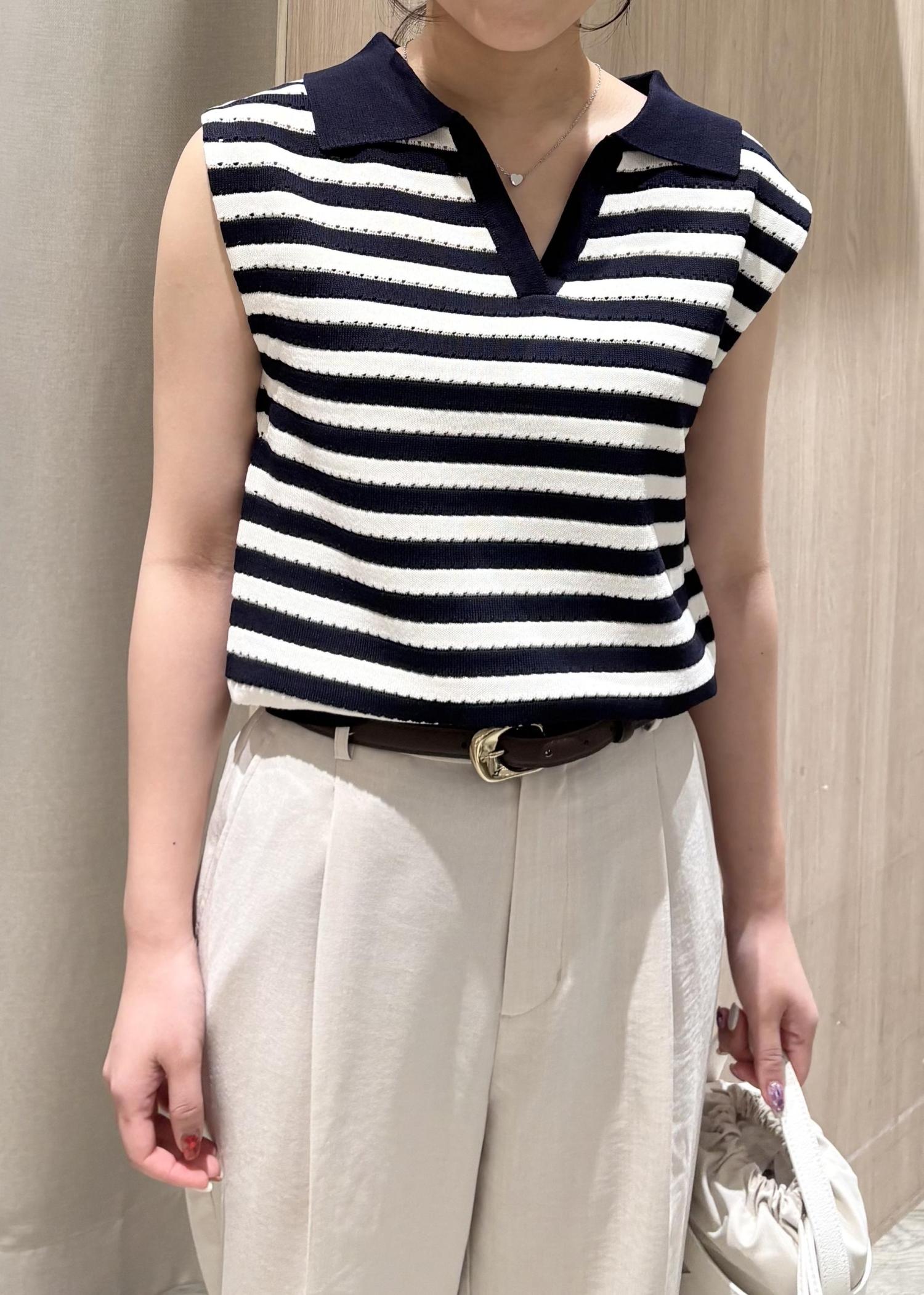 アウトレットVISスキッパーフレンチスリーブアイレットニットネイビー系 / F¥3,842レビュー少しゆとりがある作りで、丈は身体152センチだとお尻の上くらいになりました。