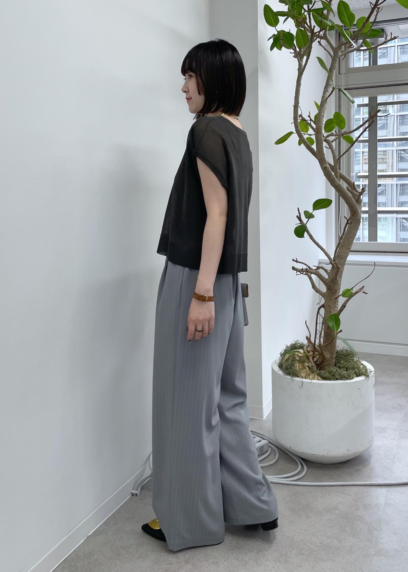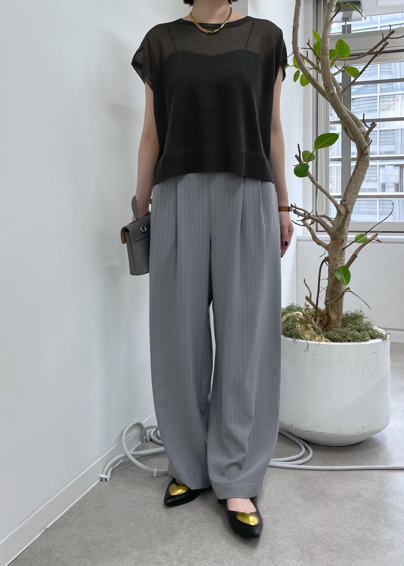 アウトレットVIS【接触冷感/UVケア】ピンストライプリラックスワイドパンツグレー / M¥2,636レビュー身長159cm.Mサイズ着用。ワイドシルエットですが2タック入りでスッキリ見えします!ベタつかないサラッとした生地感と締め付けの無い後ろゴムで、リラックス感がかなりあります◎シルエットが綺麗なのでカジュアル過ぎず、ブラウスやシャツ合わせで綺麗めなシーンにも♡