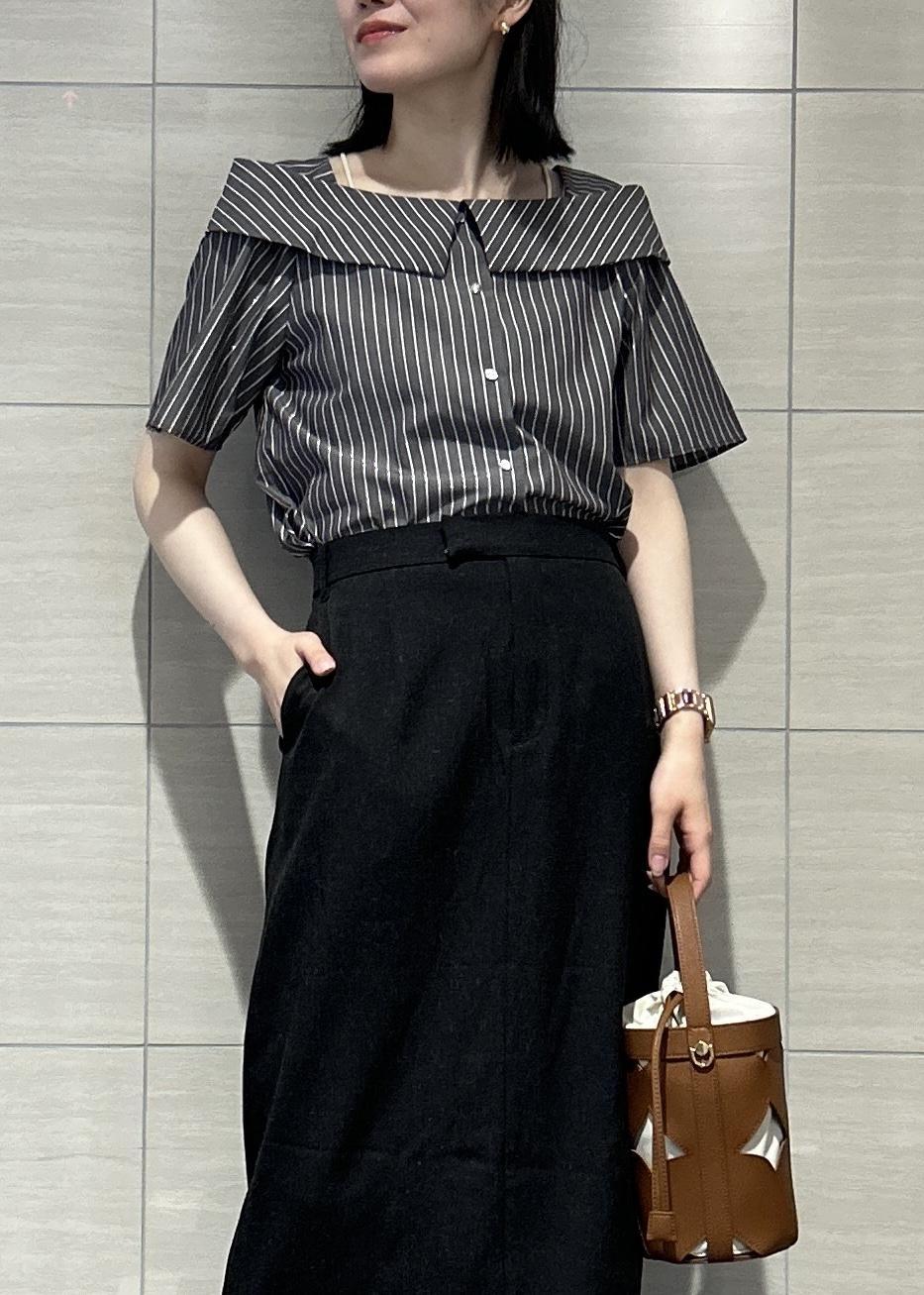 VIS【新色追加】【防シワ】ラメミックスオフショルダー風ストライプシャツダークブラウン系 / F¥5,489レビュー骨格ストレートで比較的肩幅しっかり目(横幅)なのですが、オフショルのデザインがボックス型のようになっていて、ジャストフィットで肩が収まる感じです!