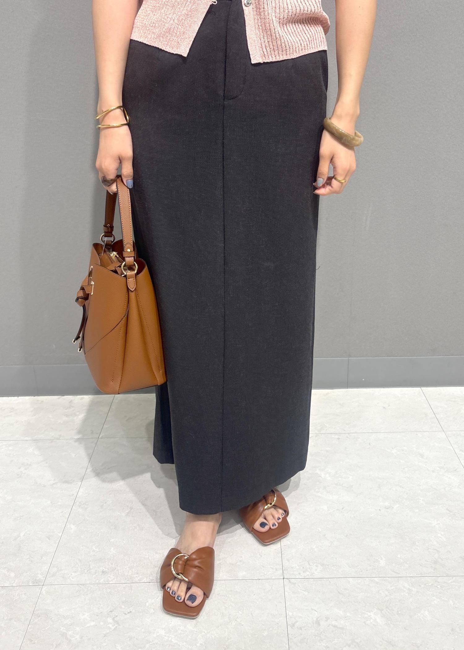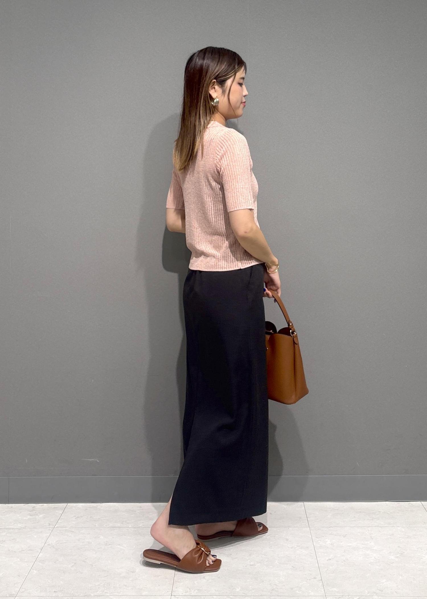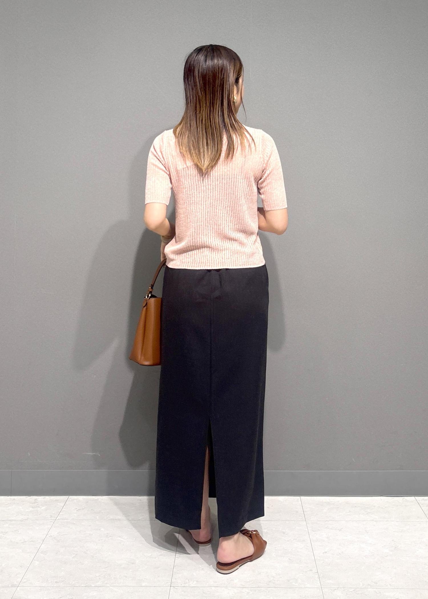 全体をすっきりシルエットで合わせたIラインコーデ。