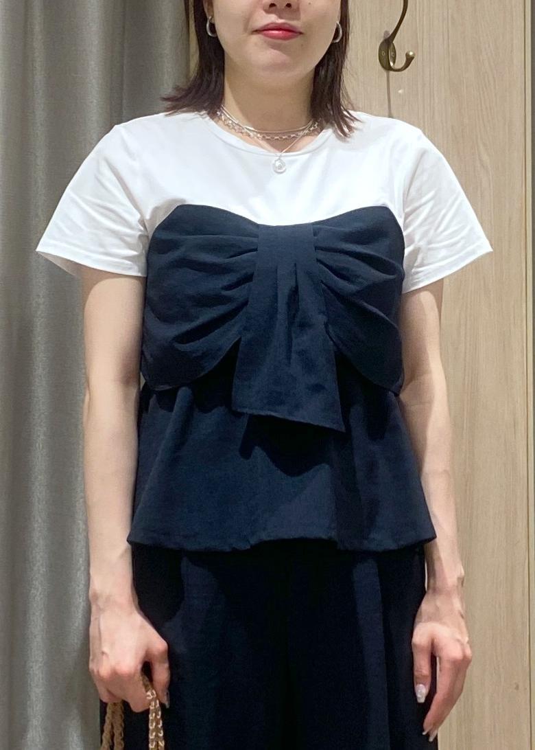 VIS【新色追加】【美easy】ねじりリボンTシャツドッキングプルオーバー【接触冷感/洗える】ネイビー / F¥5,489レビュー161cm/F着用で腰がしっかり隠れる着丈でした。