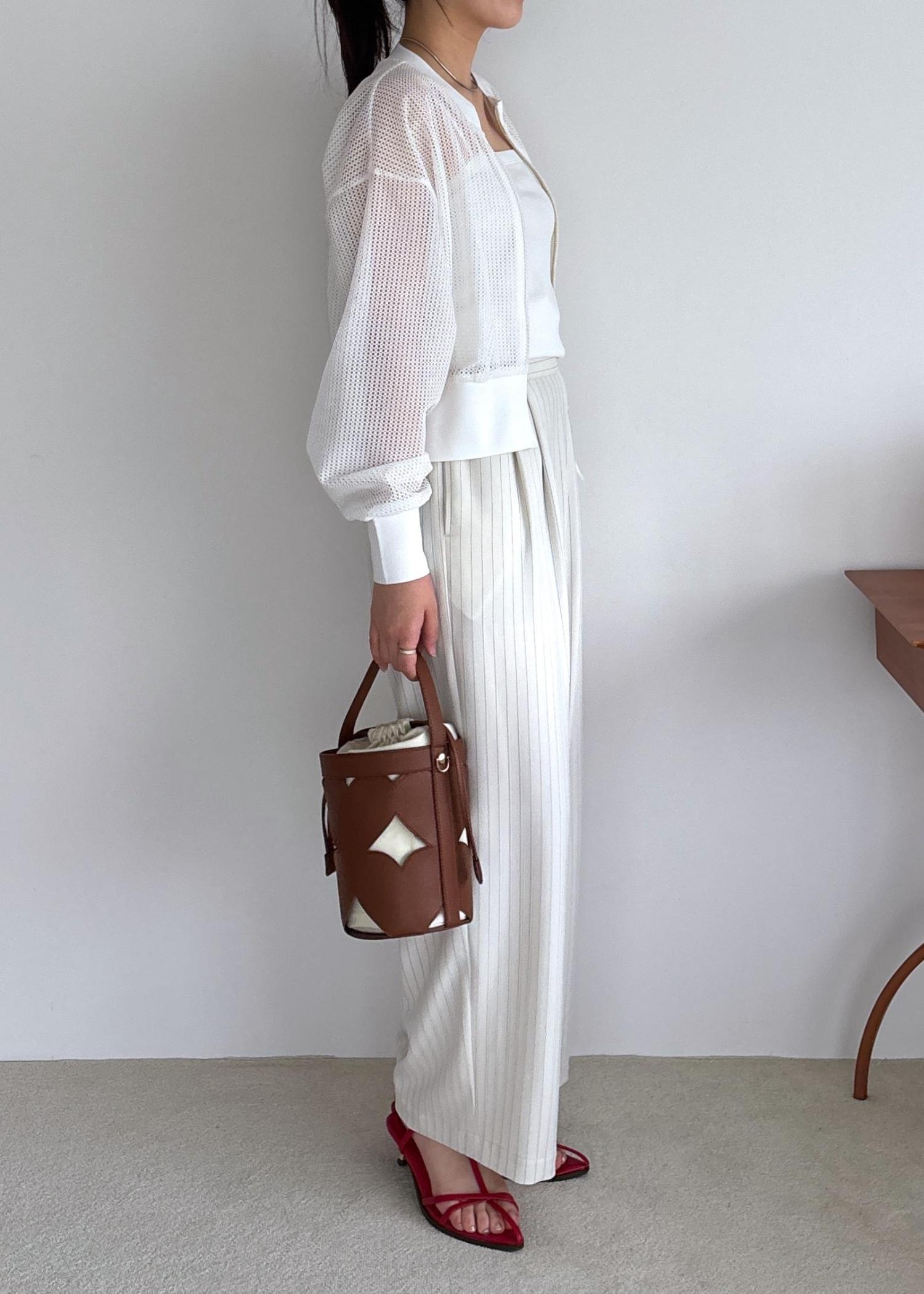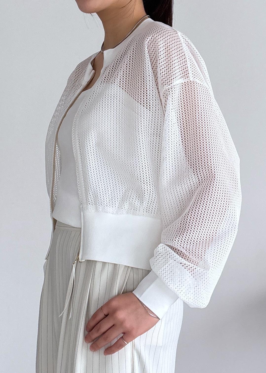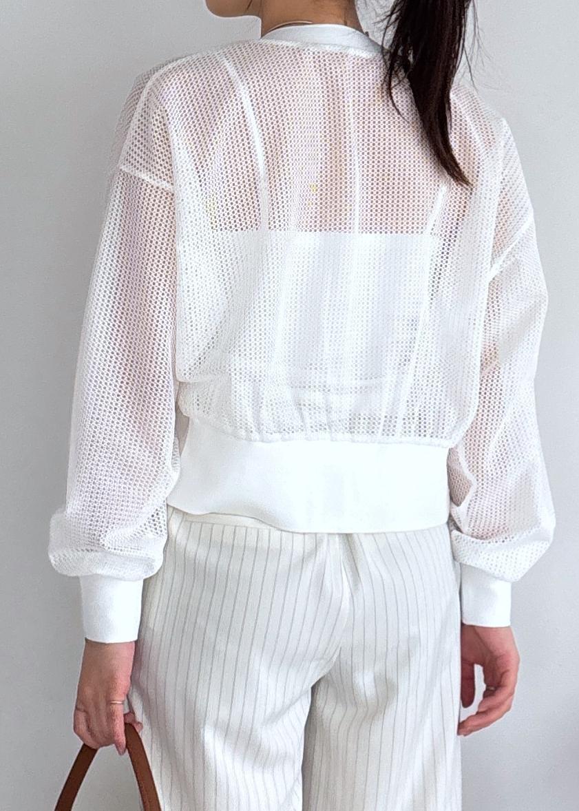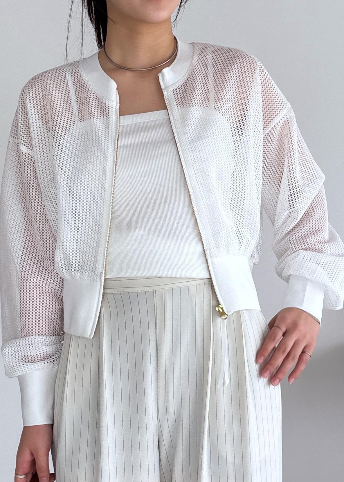 アウトレットVIS【WEB限定】ジップアップメッシュブルゾン/カーディガンホワイト / F¥3,076レビュー165cmでやや腰にかかる丈感です!