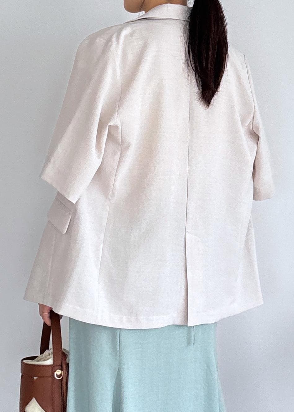 VIS【美easy】ハーフスリーブジャケット/セットアップ対応・洗えるキナリ / M¥7,909レビュー165cmでMサイズ着用、お尻にかかるくらいの丈感です!