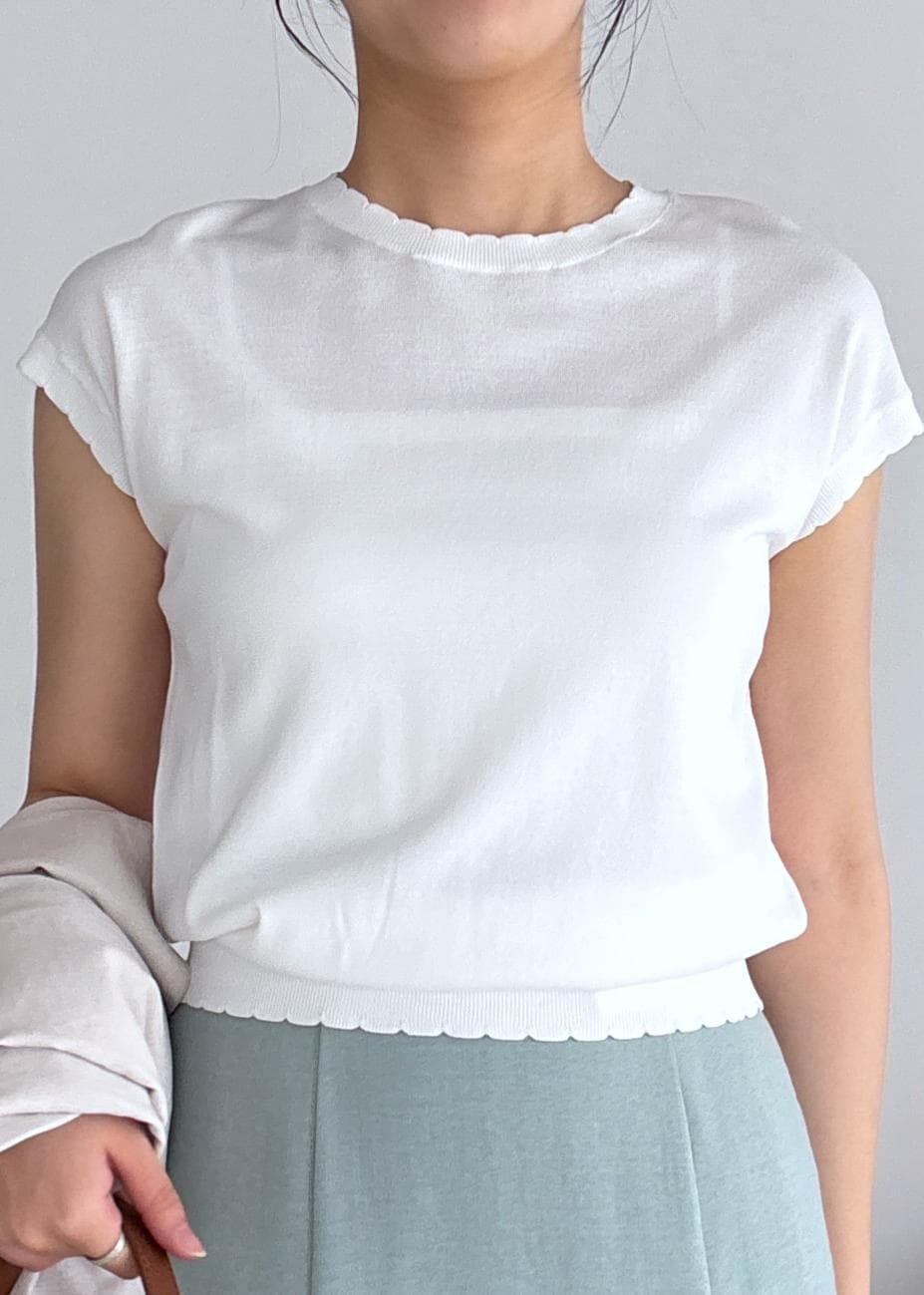 アウトレットVIS【WEB限定】パールフリルリブサマー半袖ニットホワイト / F¥2,965レビュー165cmで腰がほぼ隠れるくらいの丈感です。