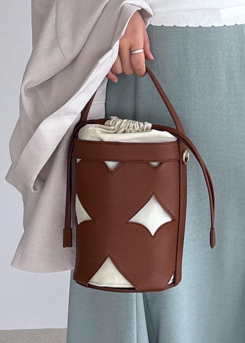 アウトレットVISカットワーク2WAYバッグブラウン系 / F¥4,843レビューマチがしっかりあり、500mlのペットボトルや長財布も収納可能です!