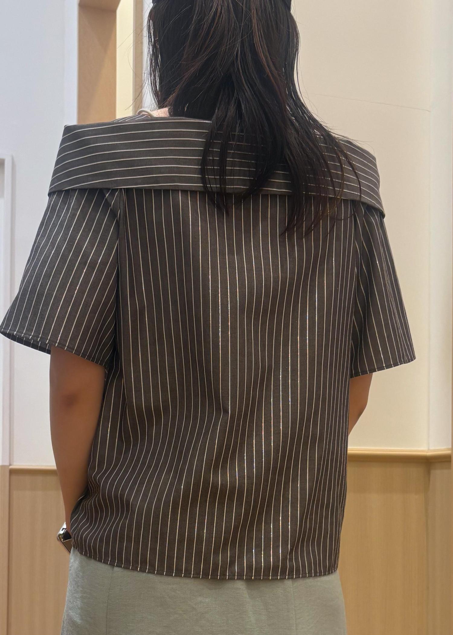 VIS【新色追加】【防シワ】ラメミックスオフショルダー風ストライプシャツダークブラウン系 / F¥5,489レビュー肩紐が見えないような工夫がされている便利なシャツです。