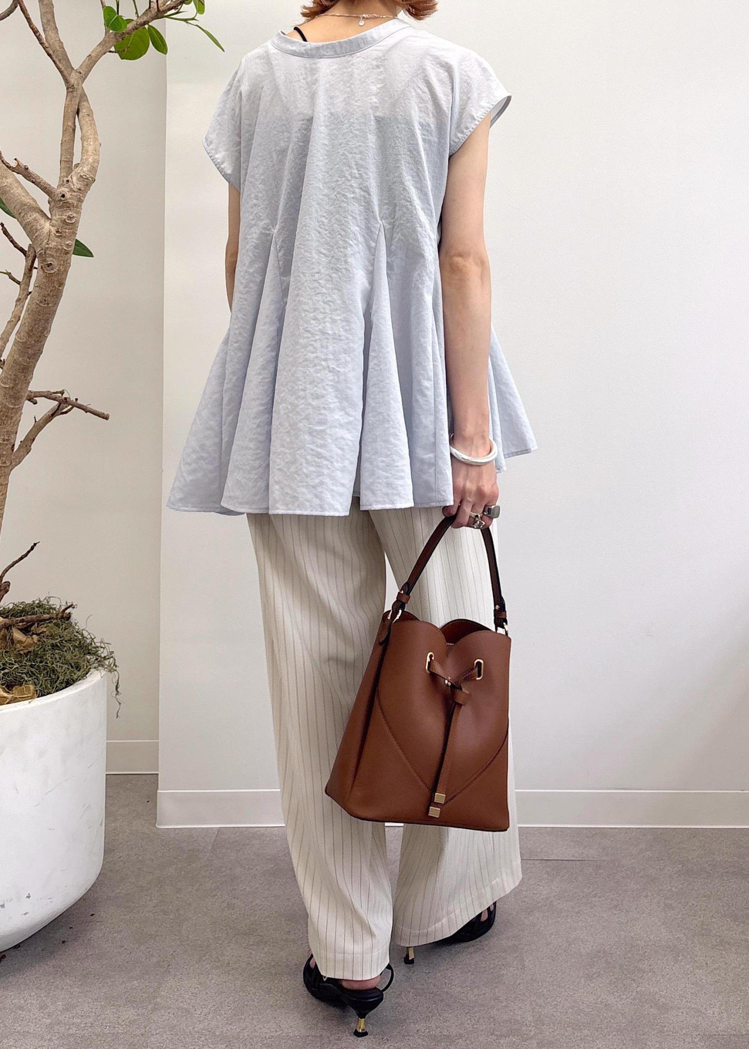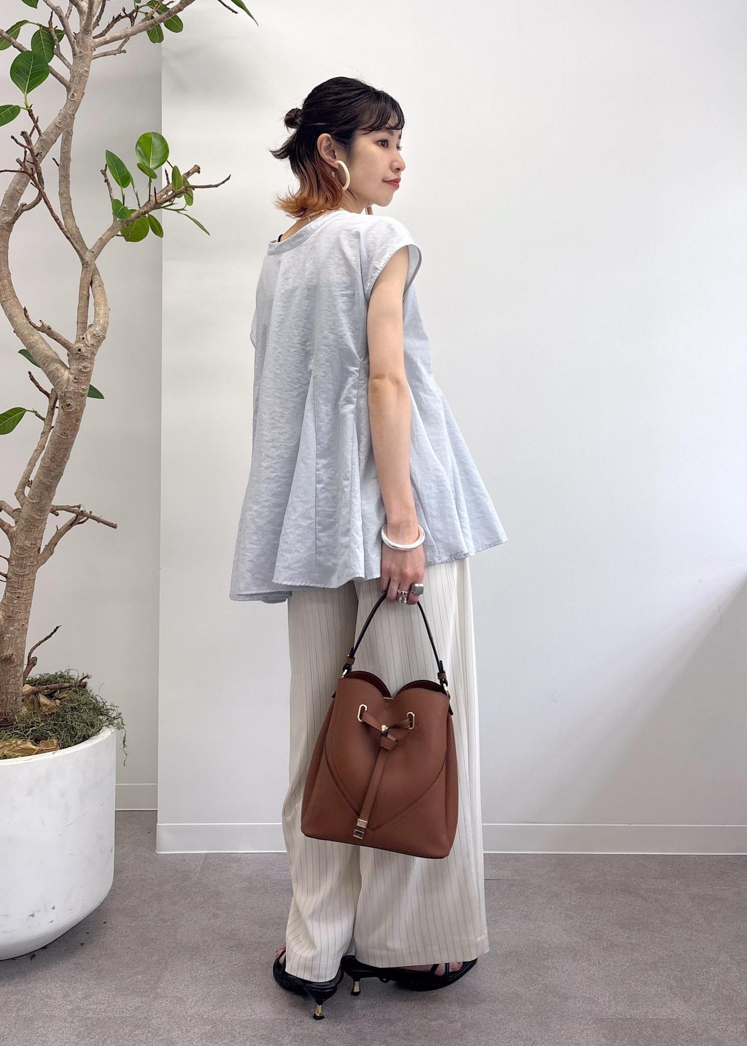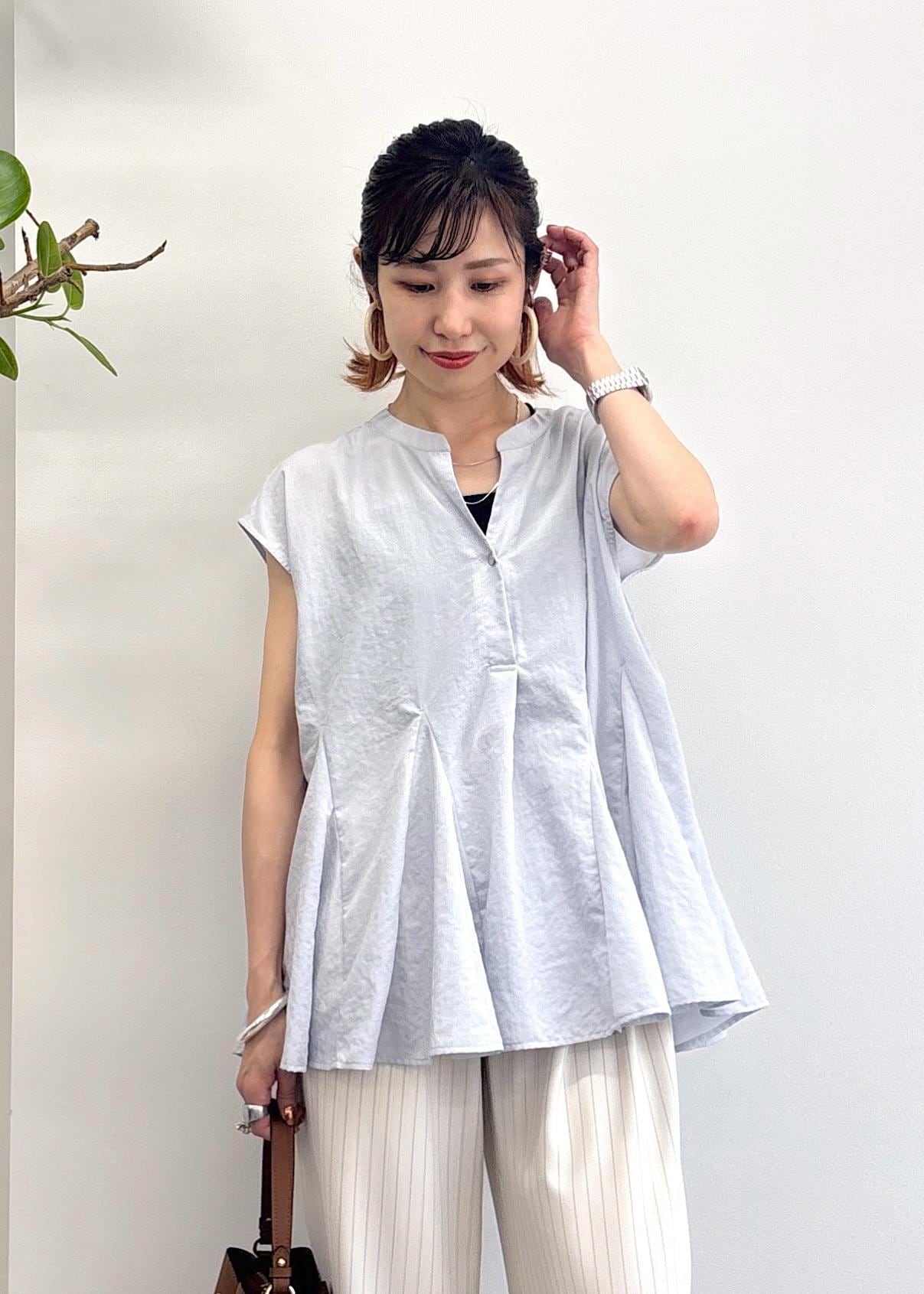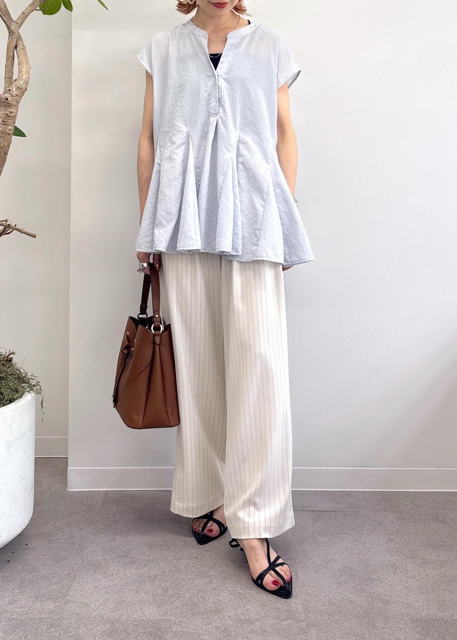 ふわっと優しく揺れるチュニックシャツは、爽やか+お尻が隠れる安心感と夏の必須アイテム♪今回はピンタックストライプのワイドパンツでオフィスでも着れるスタイルにまとめました◎涼しさを感じられるようにブルー×ホワイトの合わせ◎夏に向けてピッタリなオフィスカジュアルコーデ。