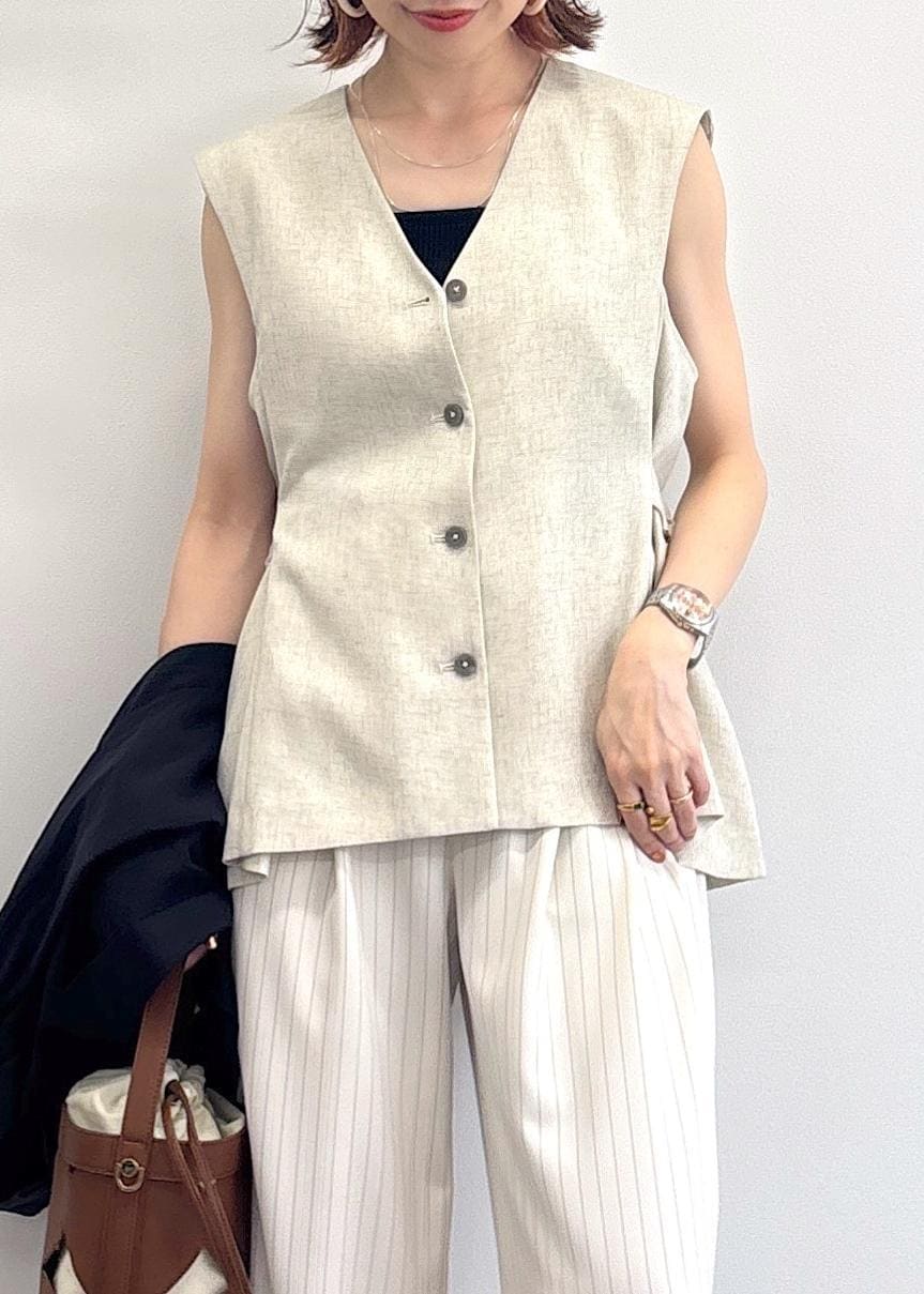 アウトレットVIS【セットアップ対応】サイドベルトフレアジレオフホワイト / F¥4,391レビューシルエットがとてもキレイなサマージレ♪ウエストはベルトで調整ができるので、ボトムに合わせて変化を楽しめるデザインが嬉しい◎フレアシルエットが優しくスタイルup見えする、大人可愛いジレでとても好みでした。全体的にややゆったりめ、着丈はお尻が隠れるくらい長さでした。