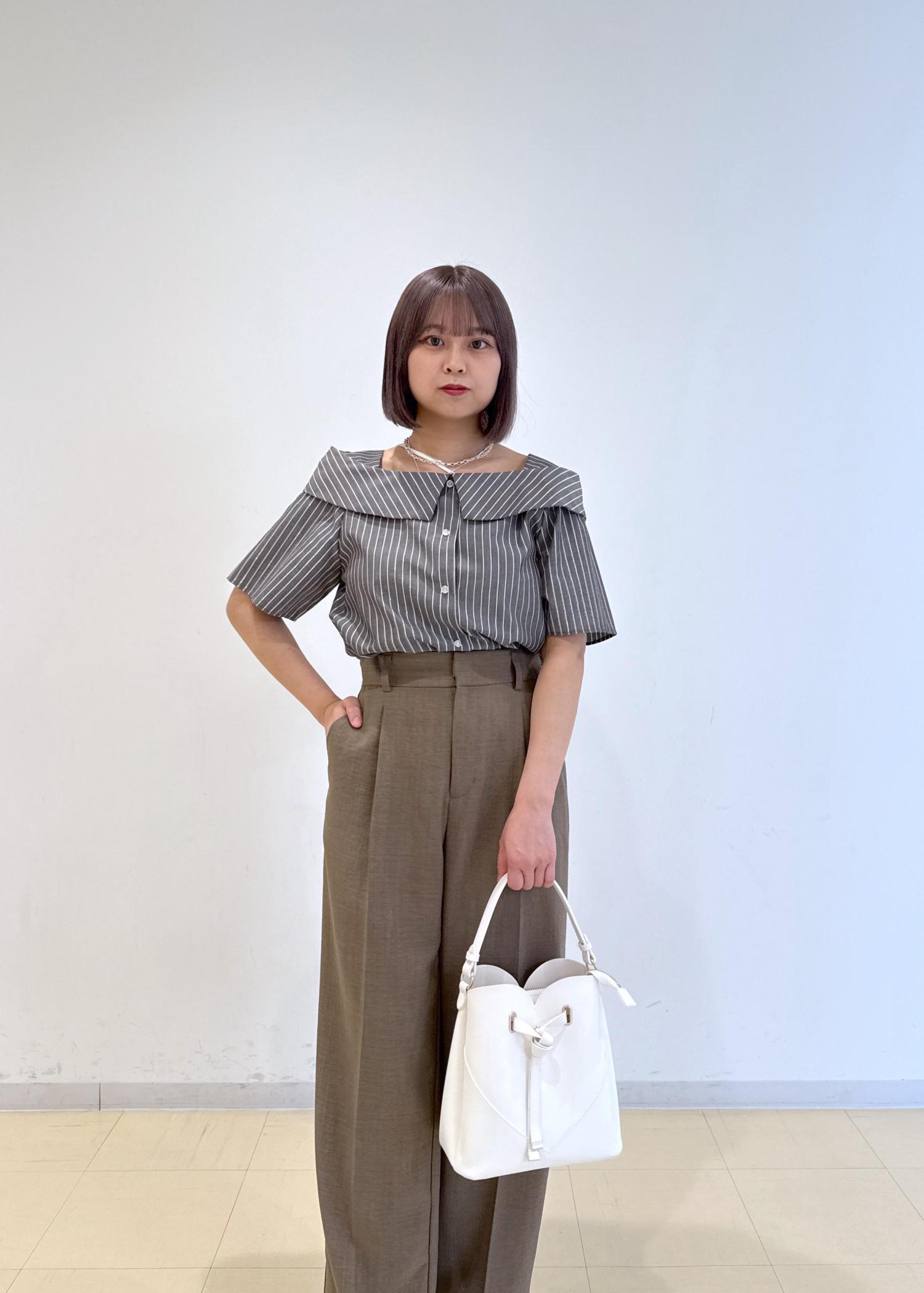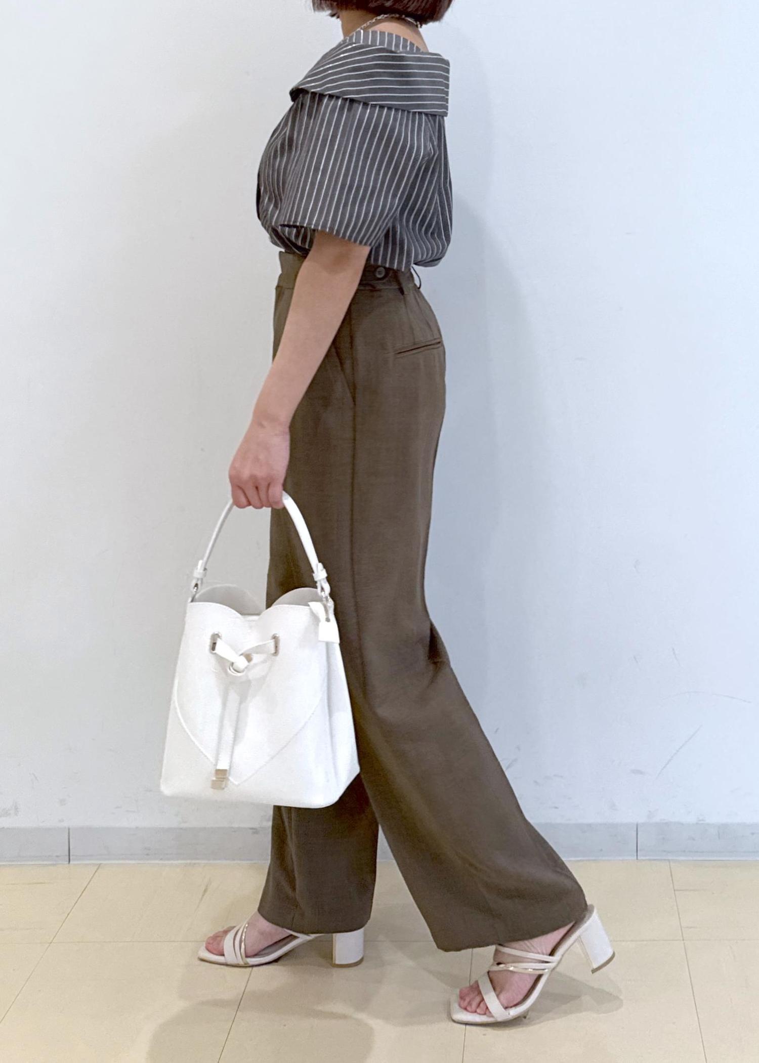 重たくならないように靴と鞄はオフホワイトで統一し、涼しらしさをプラスしました!