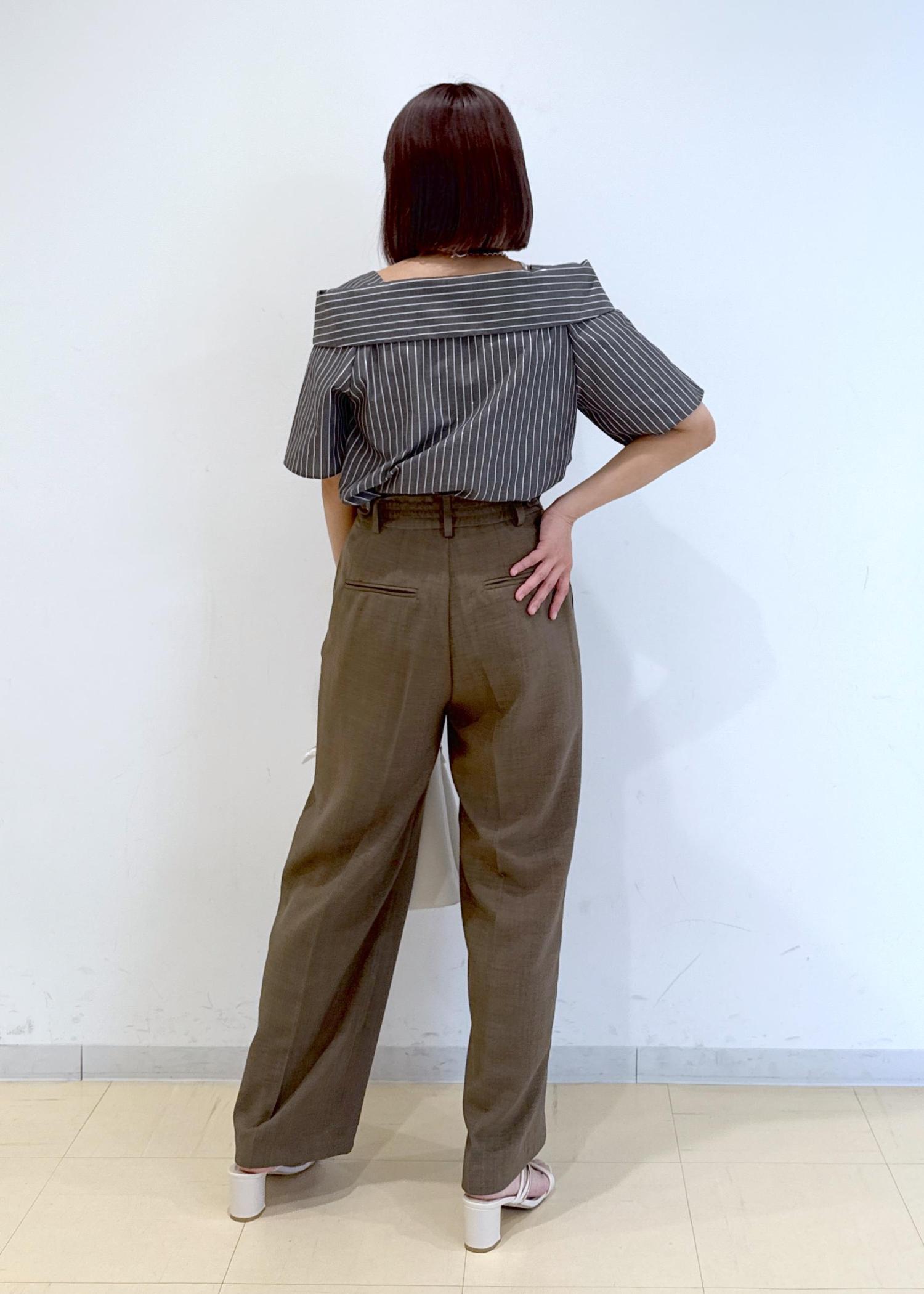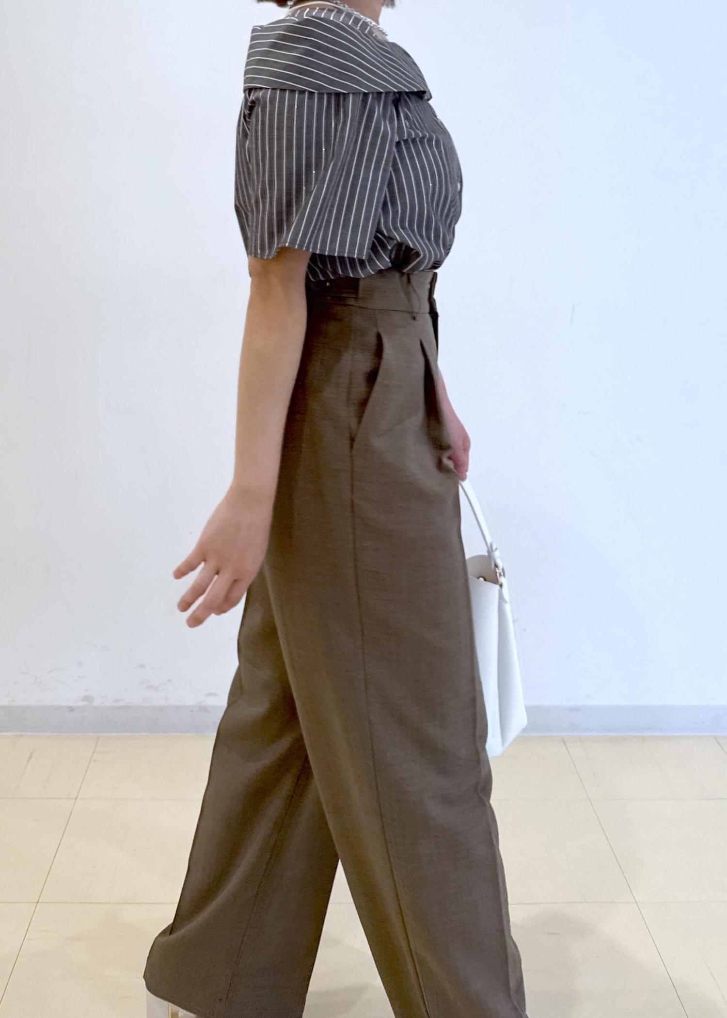 トップスもパンツもブラウン系でまとめた大人のデートコーデにしました。