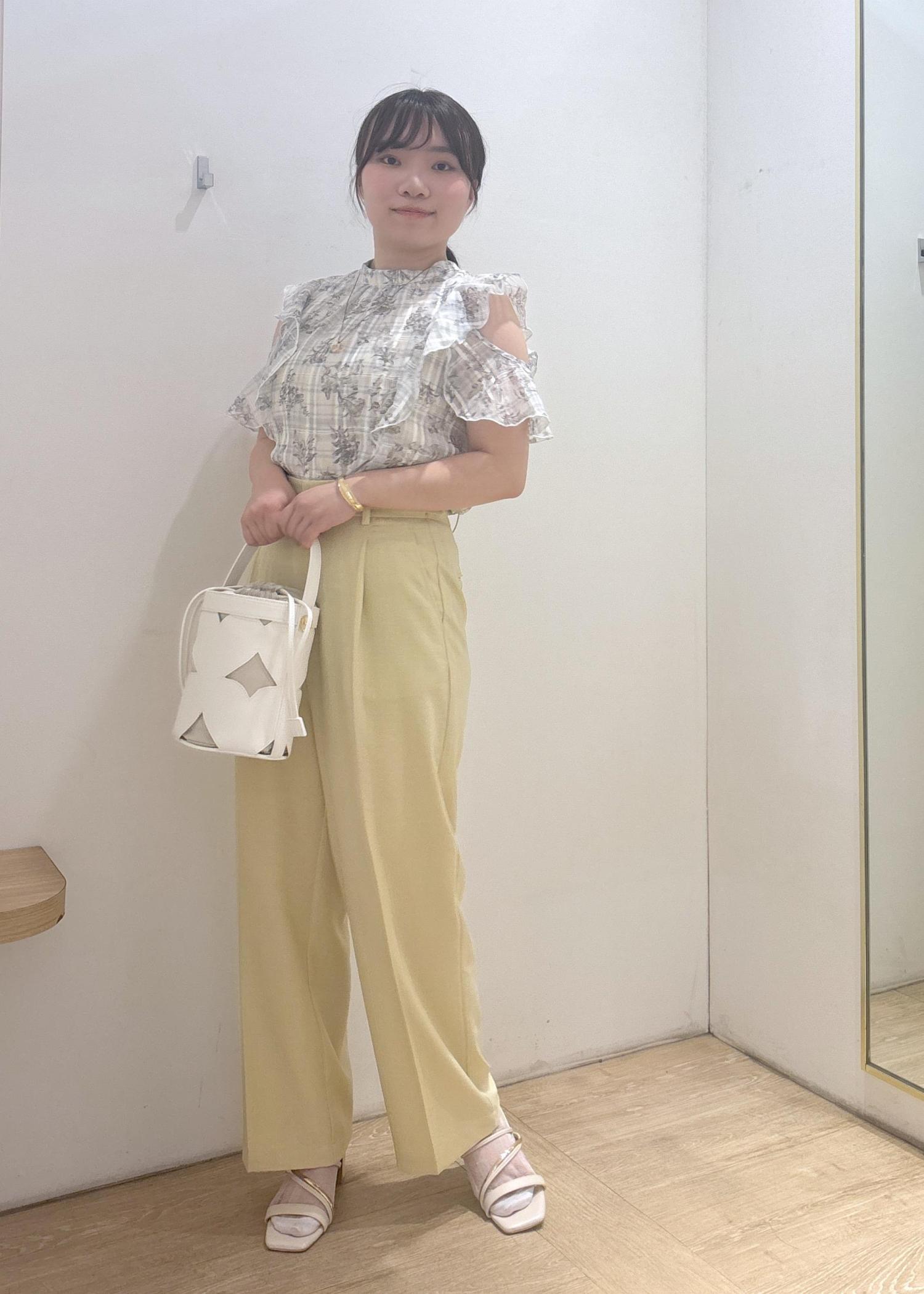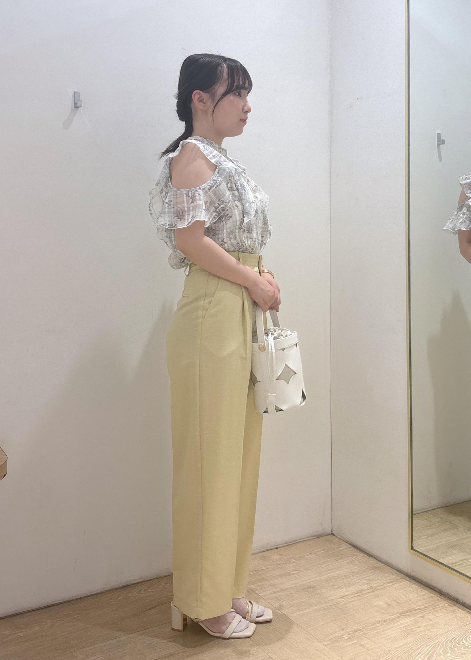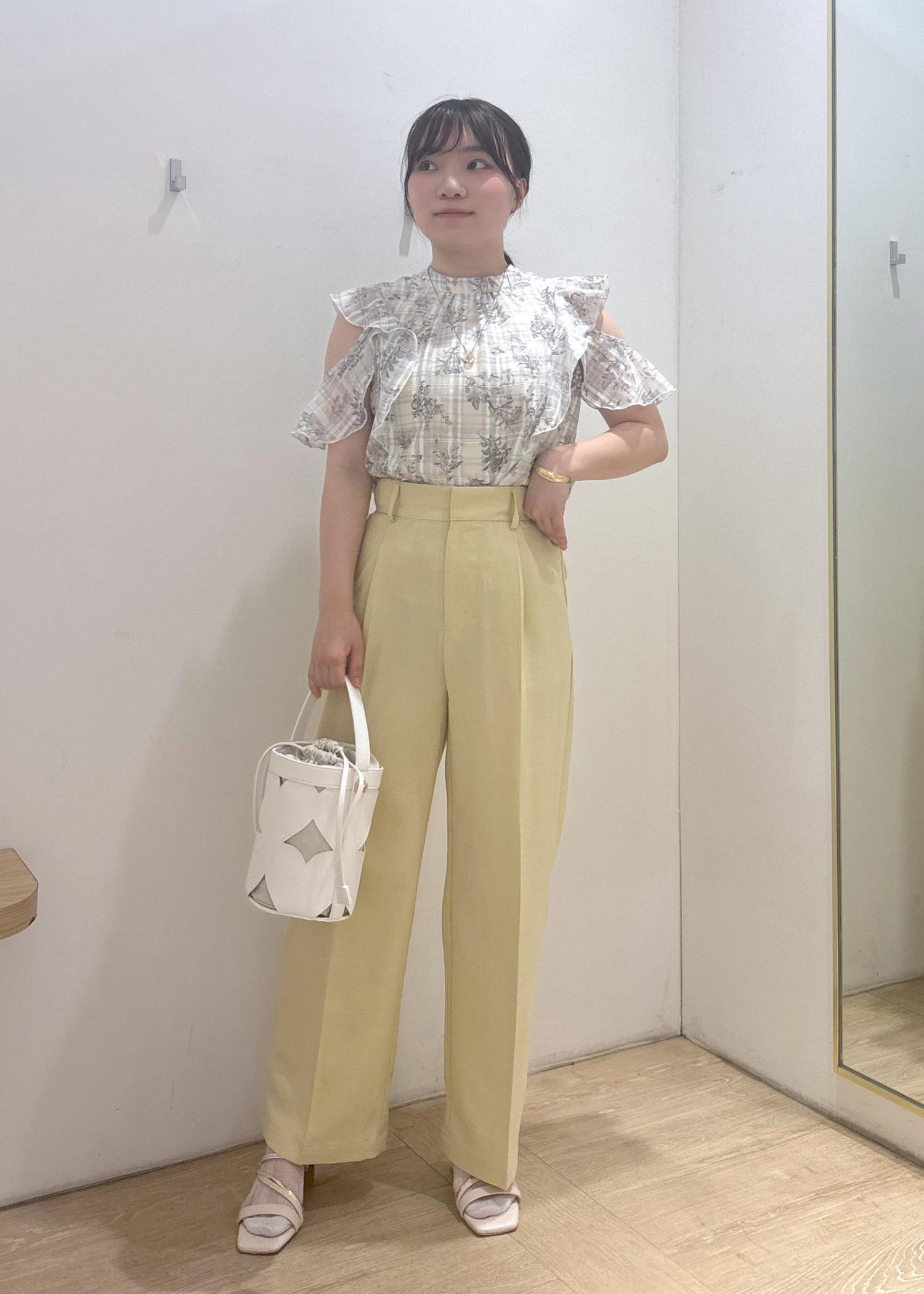 VIS【美easy】ワンタックワイドスラックスパンツ/洗えるイエロー系 / S¥5,489レビュータッグがしっかりと入っているので、脚長効果が叶うアイテムです!接触冷感素材でひんやりとしているため、非常に履き心地が良いです!