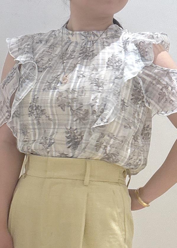 アウトレットVIS【洗える】2WAYショルダーシアーチェックブラウスベージュ系 / F¥4,391レビューフリルがとても華やかな印象に仕上げてくれる上に、肩周りを上手くカバーしてくれるアイテムです♪