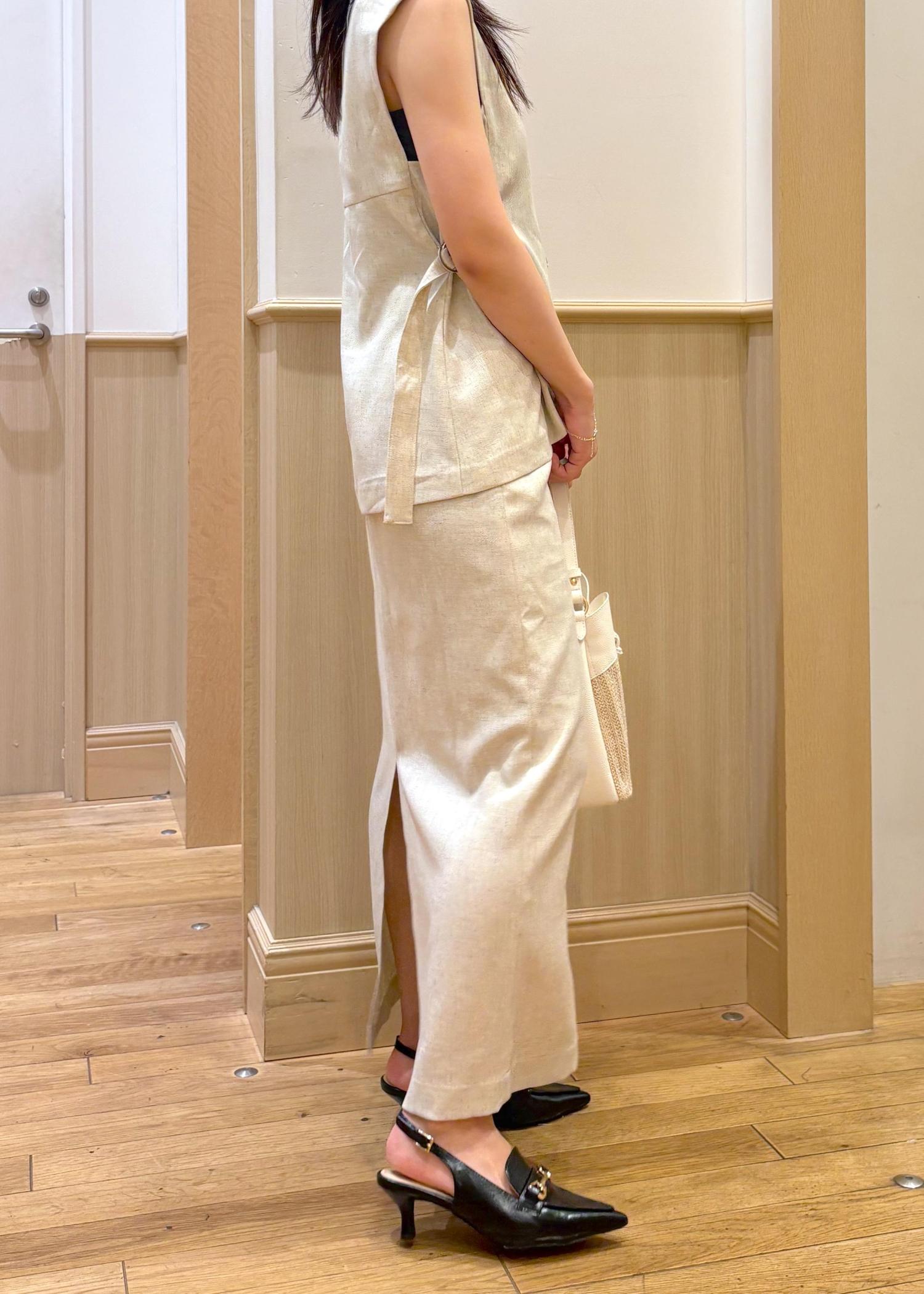 アウトレットVIS【セットアップ対応】サイドベルトフレアジレオフホワイト / F¥4,391レビューリネン調の素材が涼しいジレです。