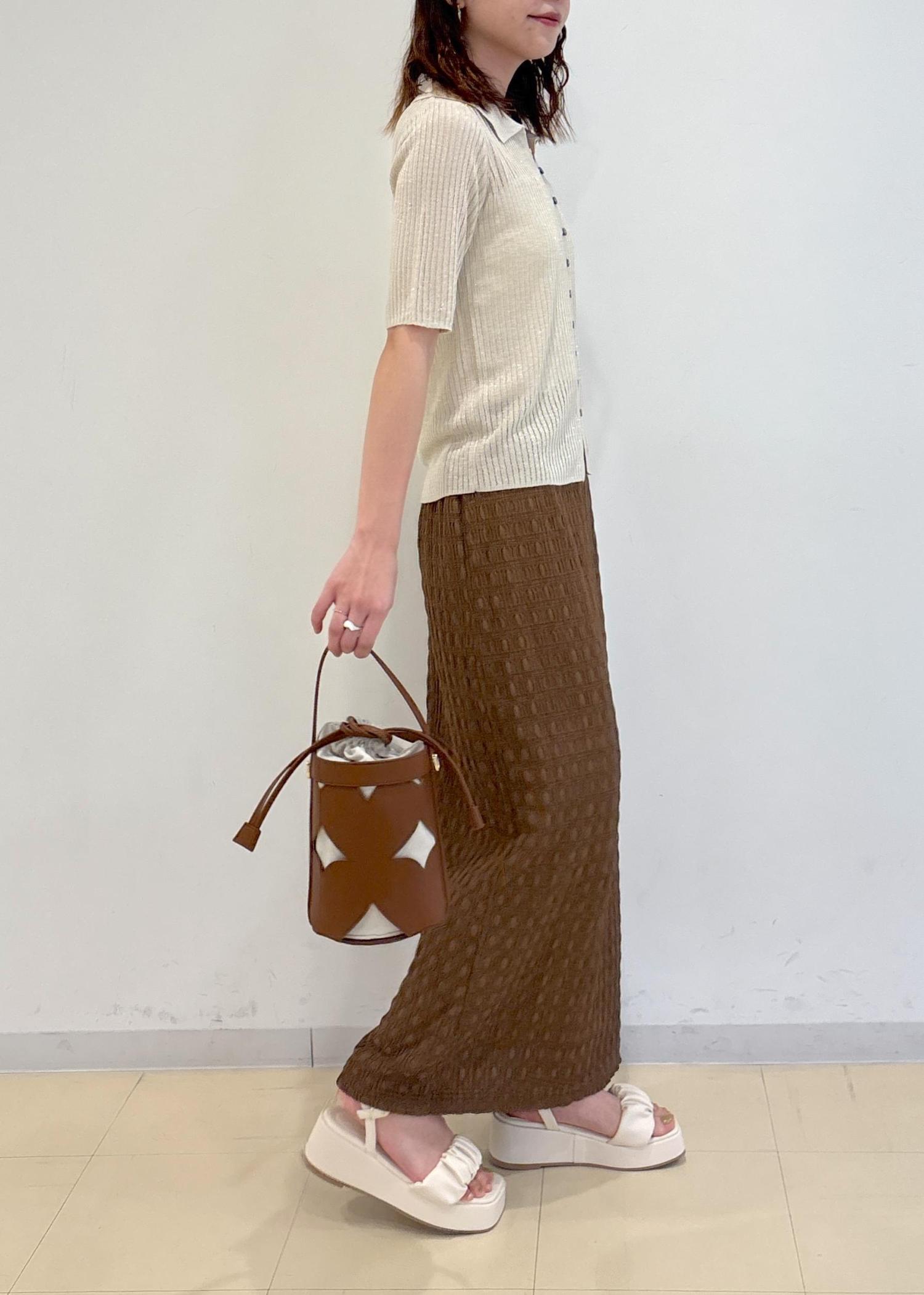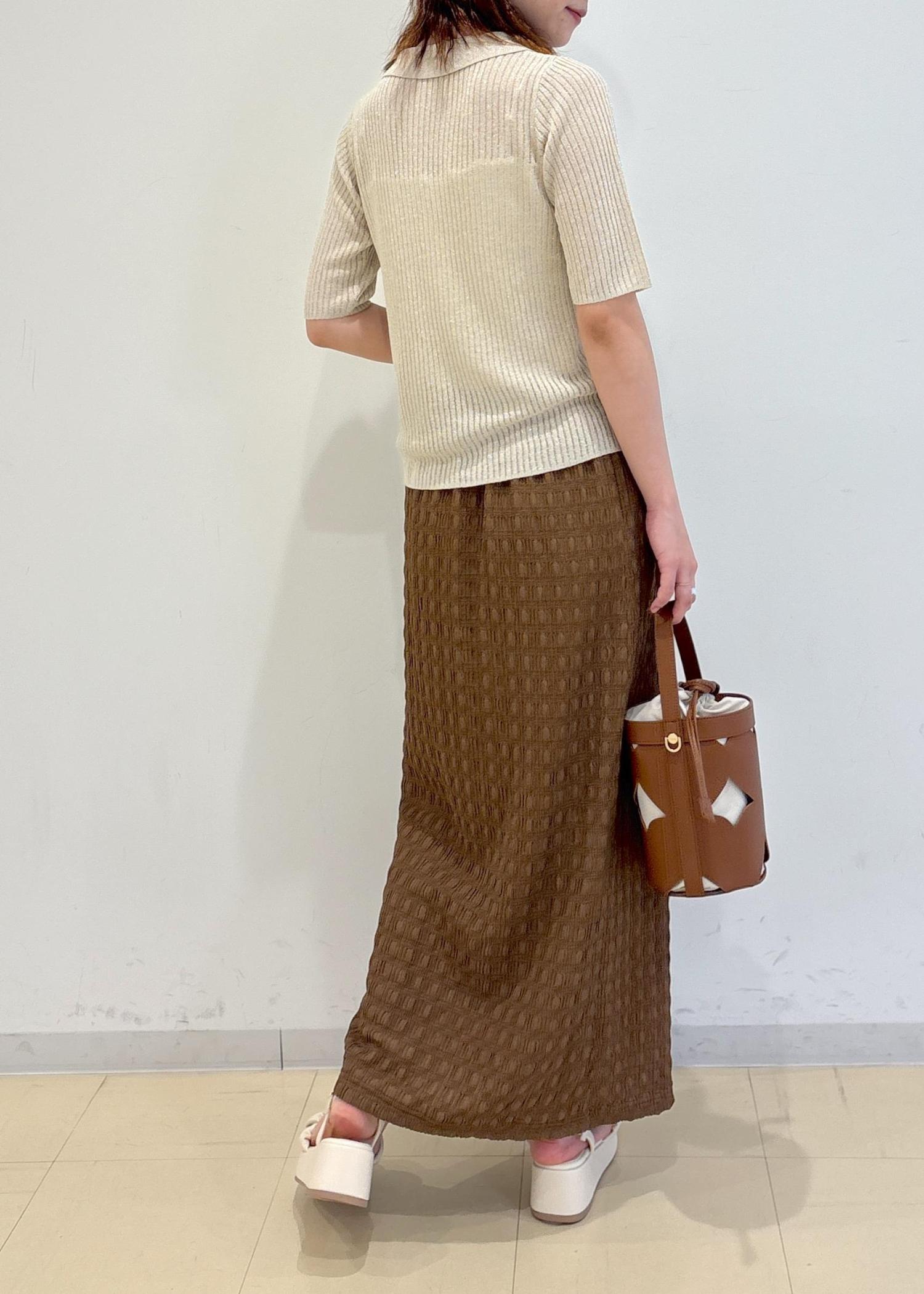 アウトレットVIS【新色追加】【接触冷感】膨れジャガードナロースカートブラウン / F¥3,293レビュー160cm着用でくるぶしが隠れる丈感です。