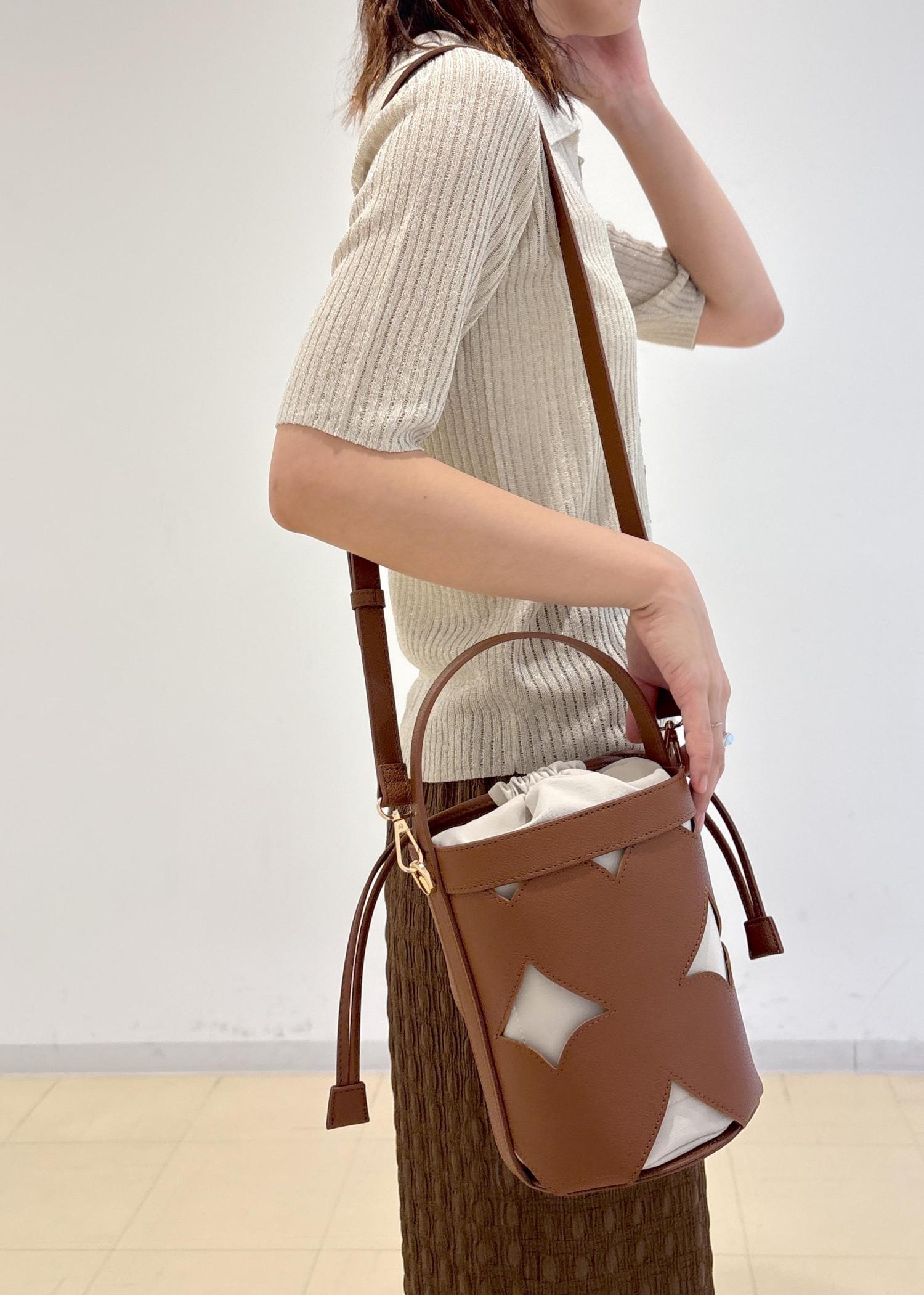 アウトレットVISカットワーク2WAYバッグブラウン系 / F¥4,843レビューマチが広めに作られており折りたたみ財布や小さめのポーチ、350mlのペットボトルでしたら入るサイズ感です◎