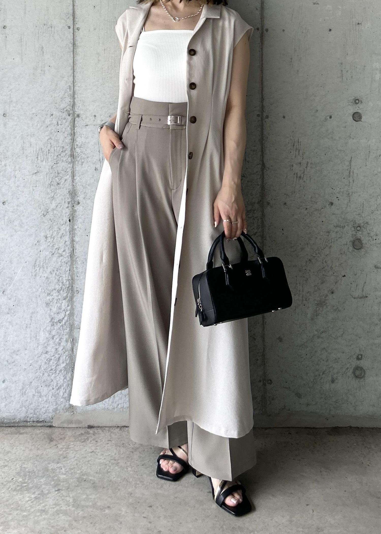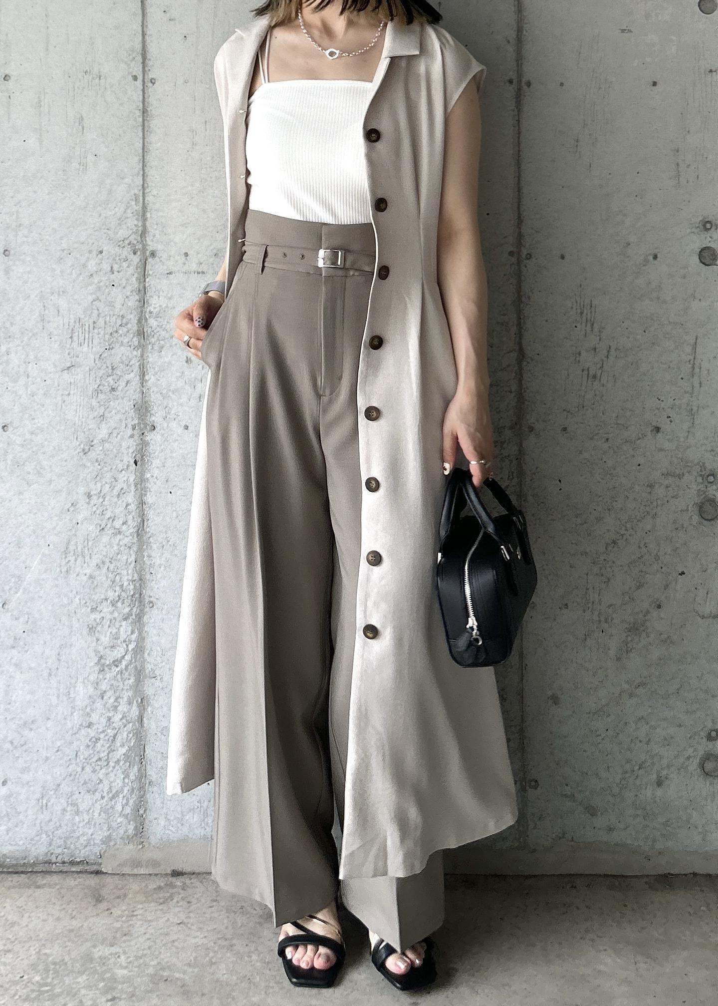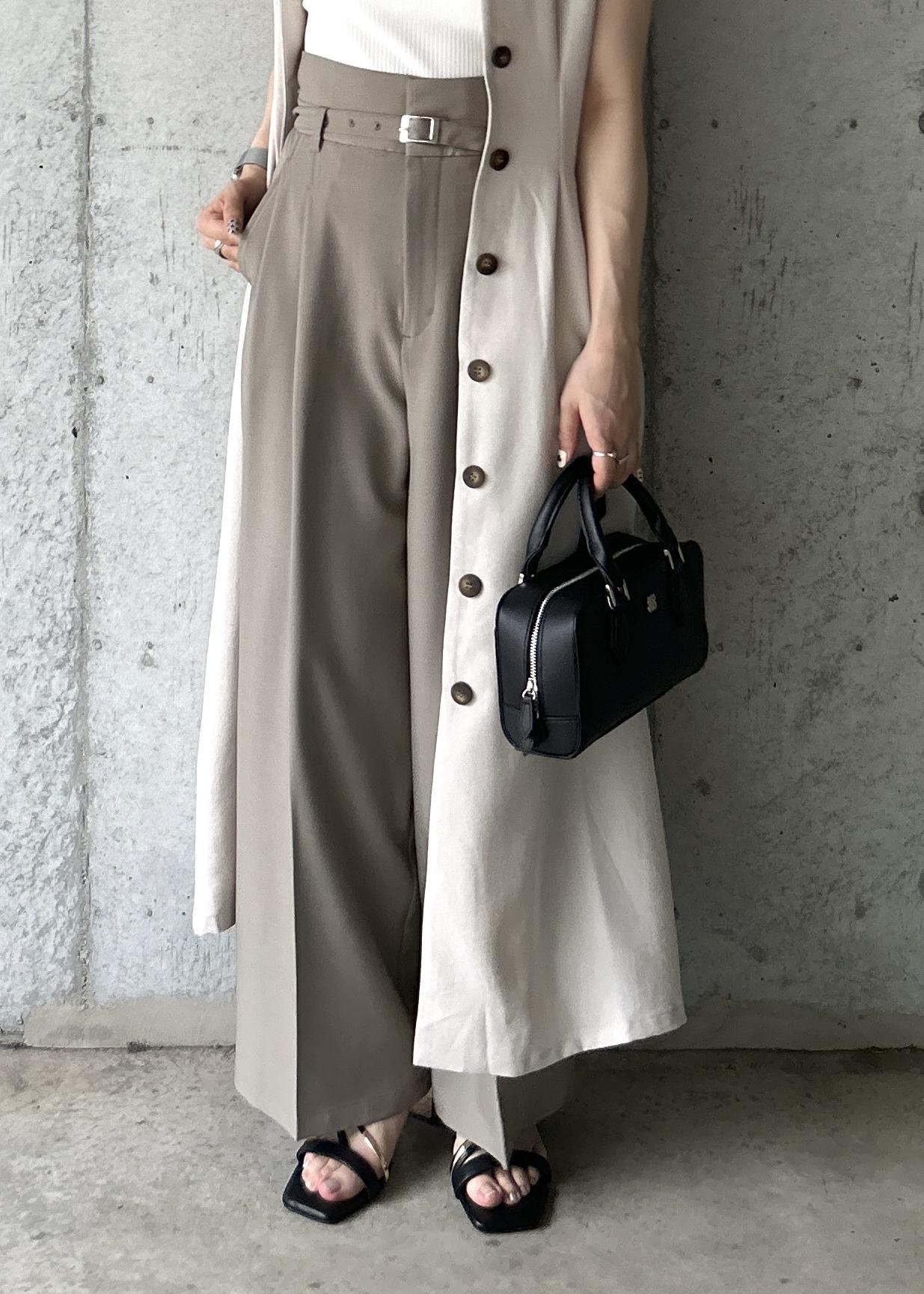 VIS【新色追加】【防シワ/接触冷感】ベルトディテールタックワイドスラックスパンツベージュ系 / S¥6,589レビュー157cmでSサイズを着用しています。