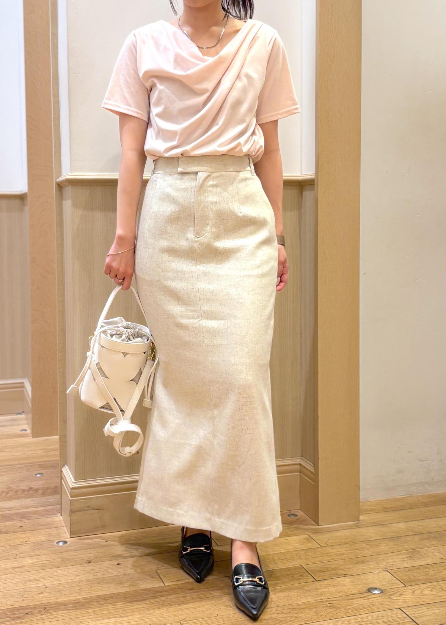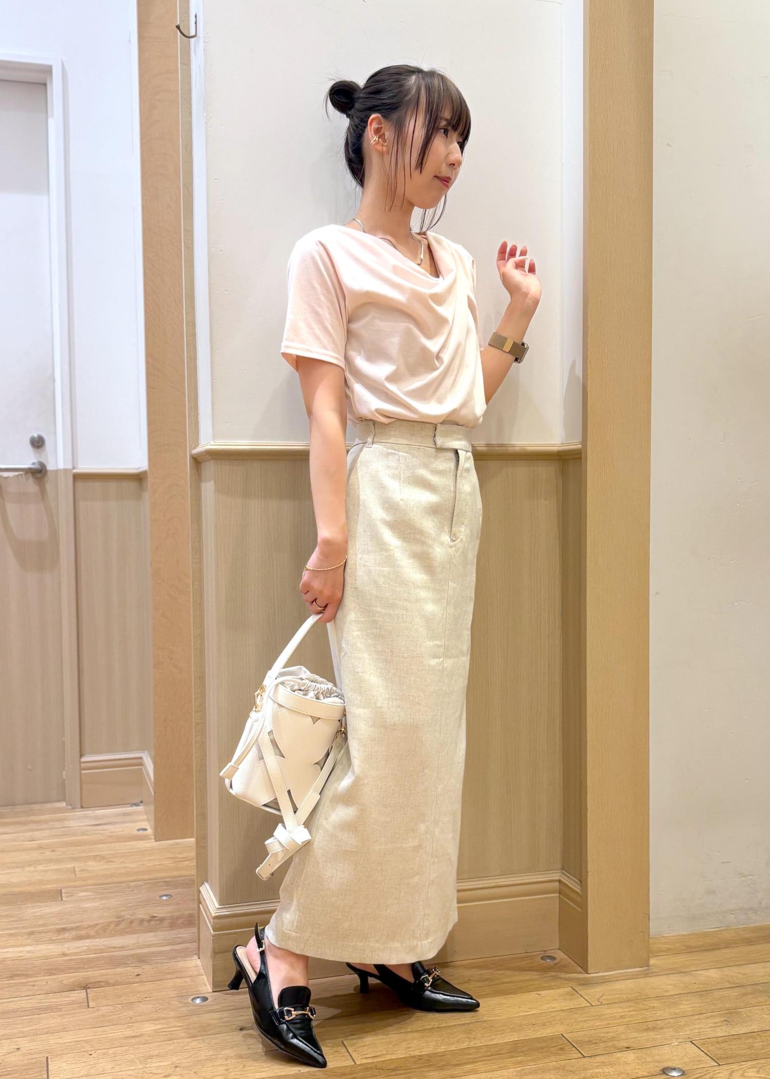 腰回りのボリューム感がコンプレックスですが、ウエストから腰へかけてストンと落ちるシルエットなので、そこまで肉感を拾わず着用できました。