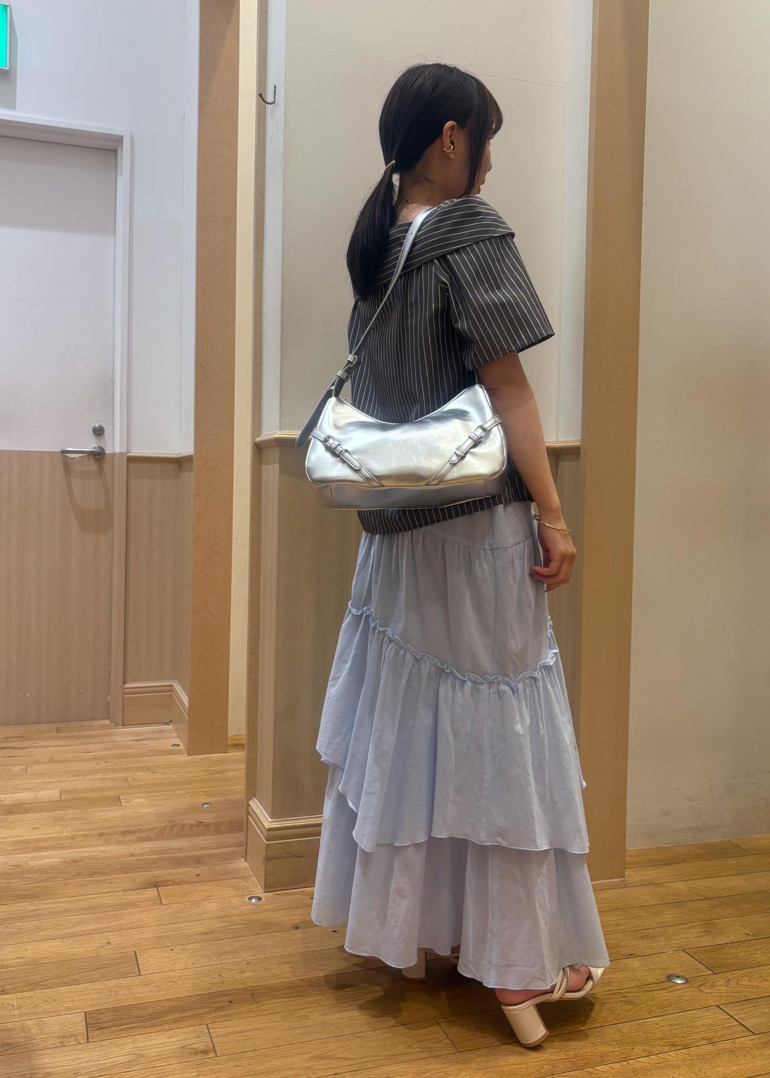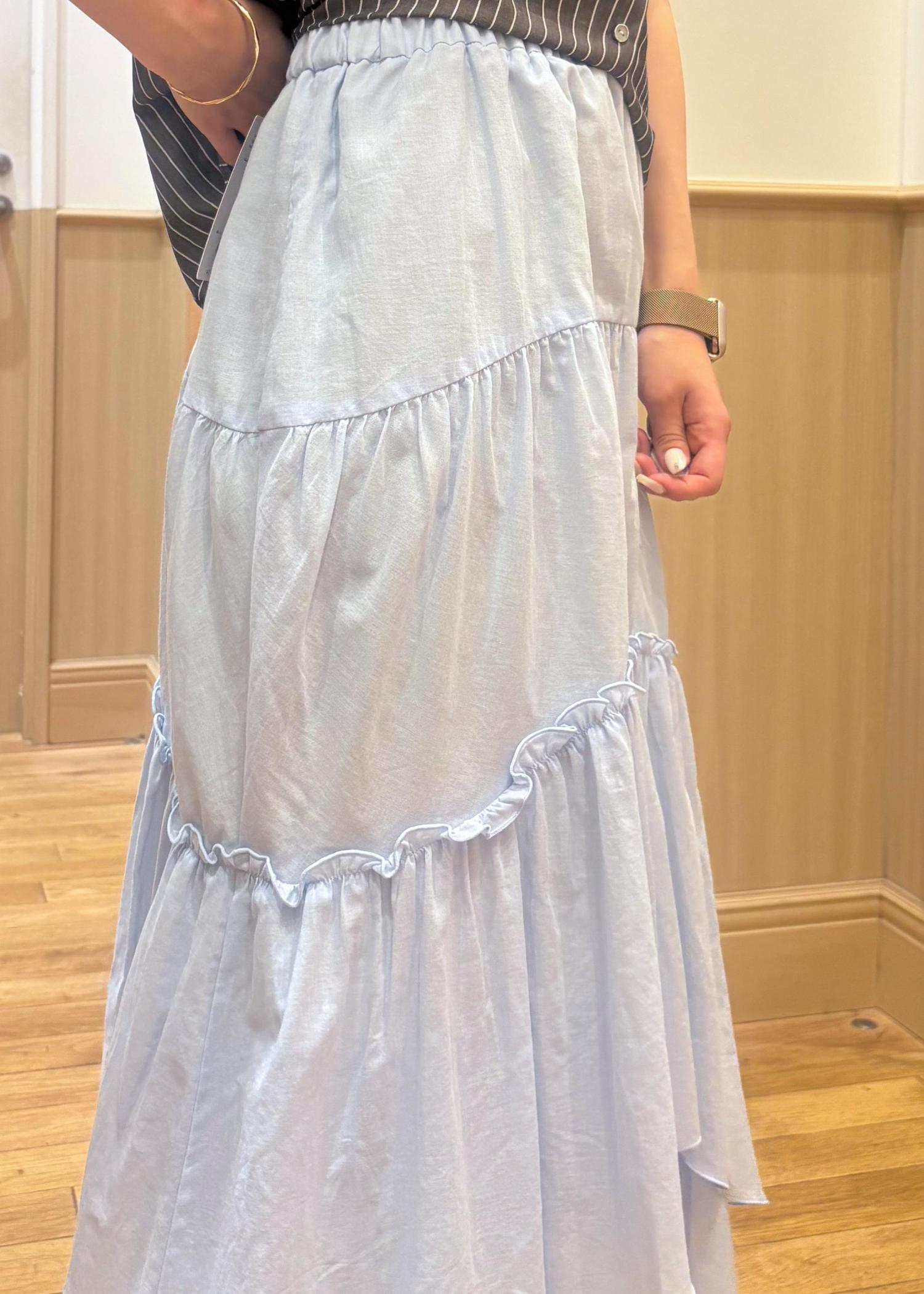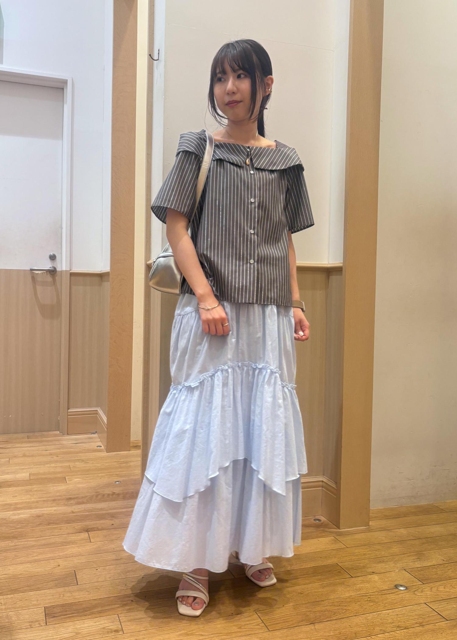 アウトレットVISボイルティアードスカートブルー系 / F¥3,955レビュー156センチでウエストは大きめだったので、腰くらいで着用できます。
