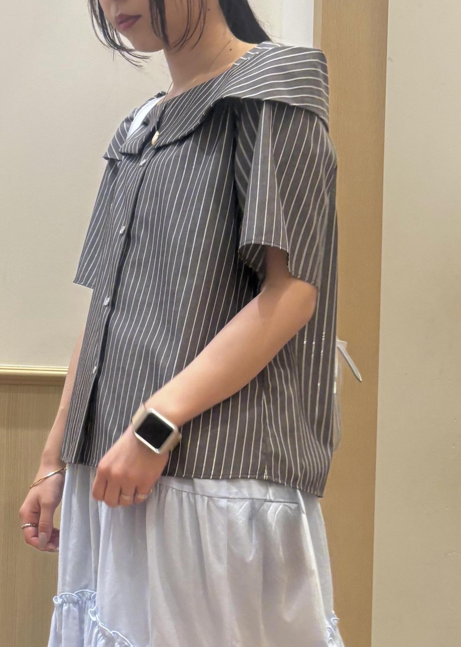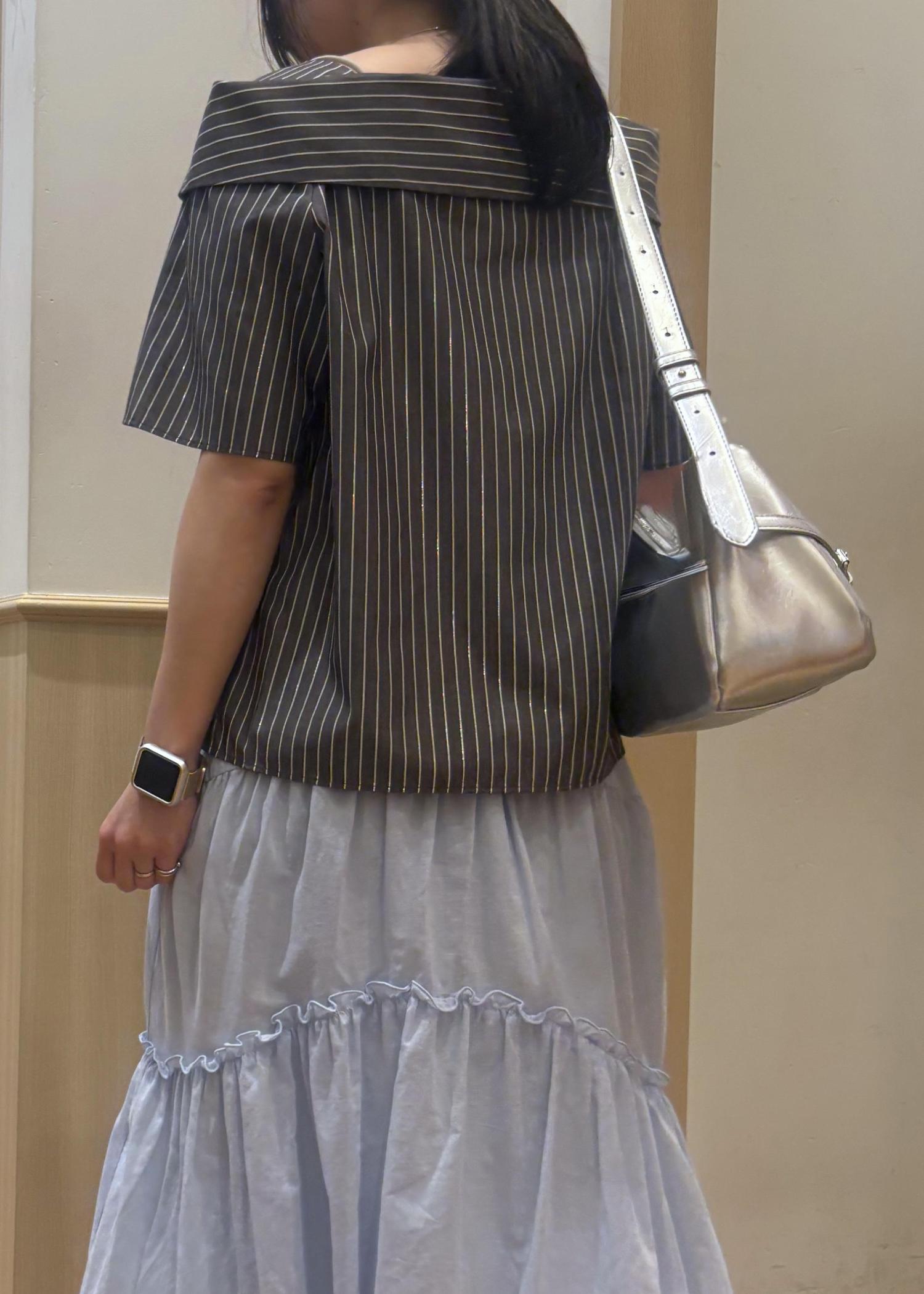 VIS【新色追加】【防シワ】ラメミックスオフショルダー風ストライプシャツダークブラウン系 / F¥5,489レビュー肩紐が見えないような工夫がされている便利なシャツです。