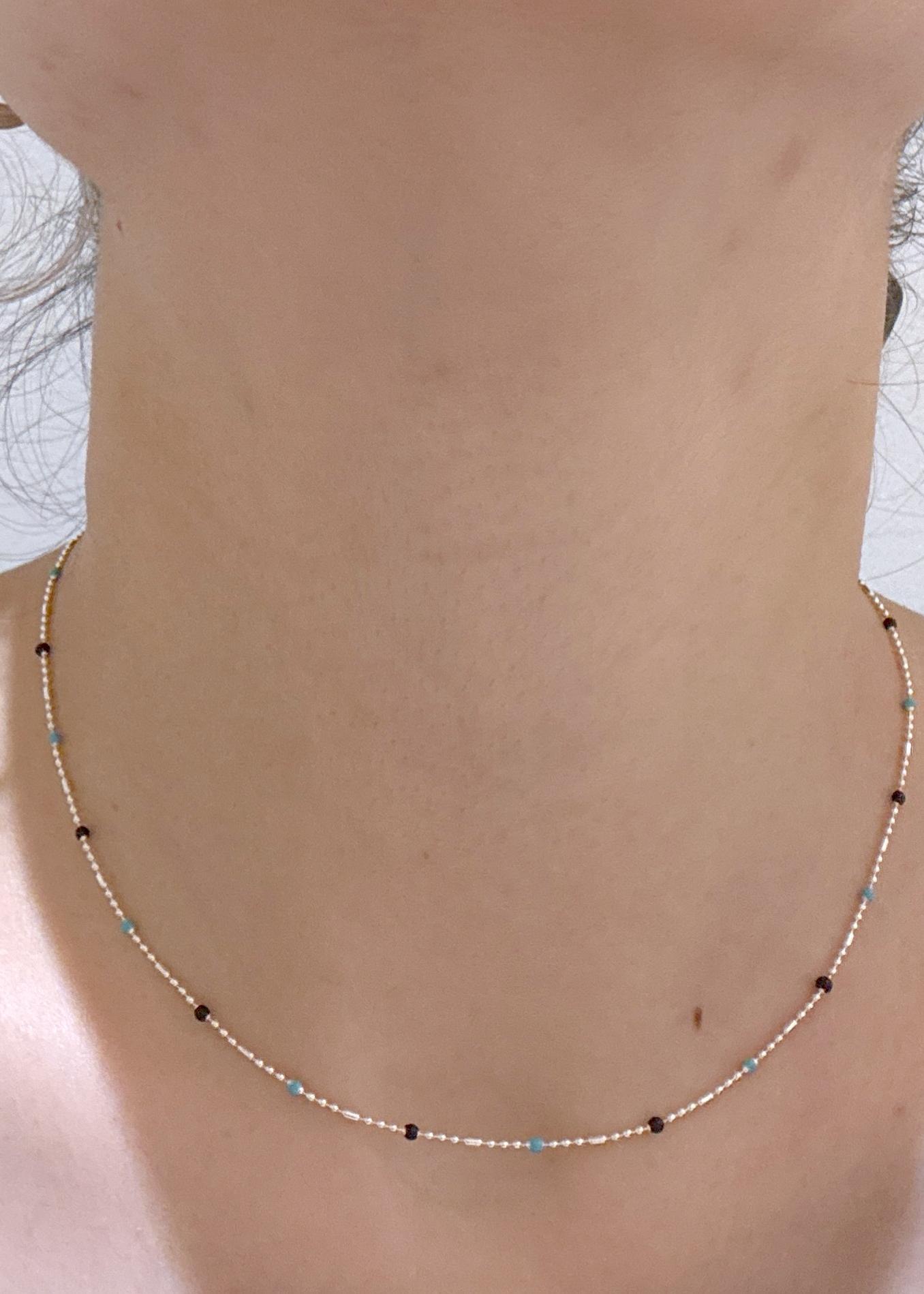 アウトレットVISカラーチェーンネックレスブルー系 / F¥1,748レビュー夏らしいカラーのネックレスで一番長くすると鎖骨下くらいの長さはあります!