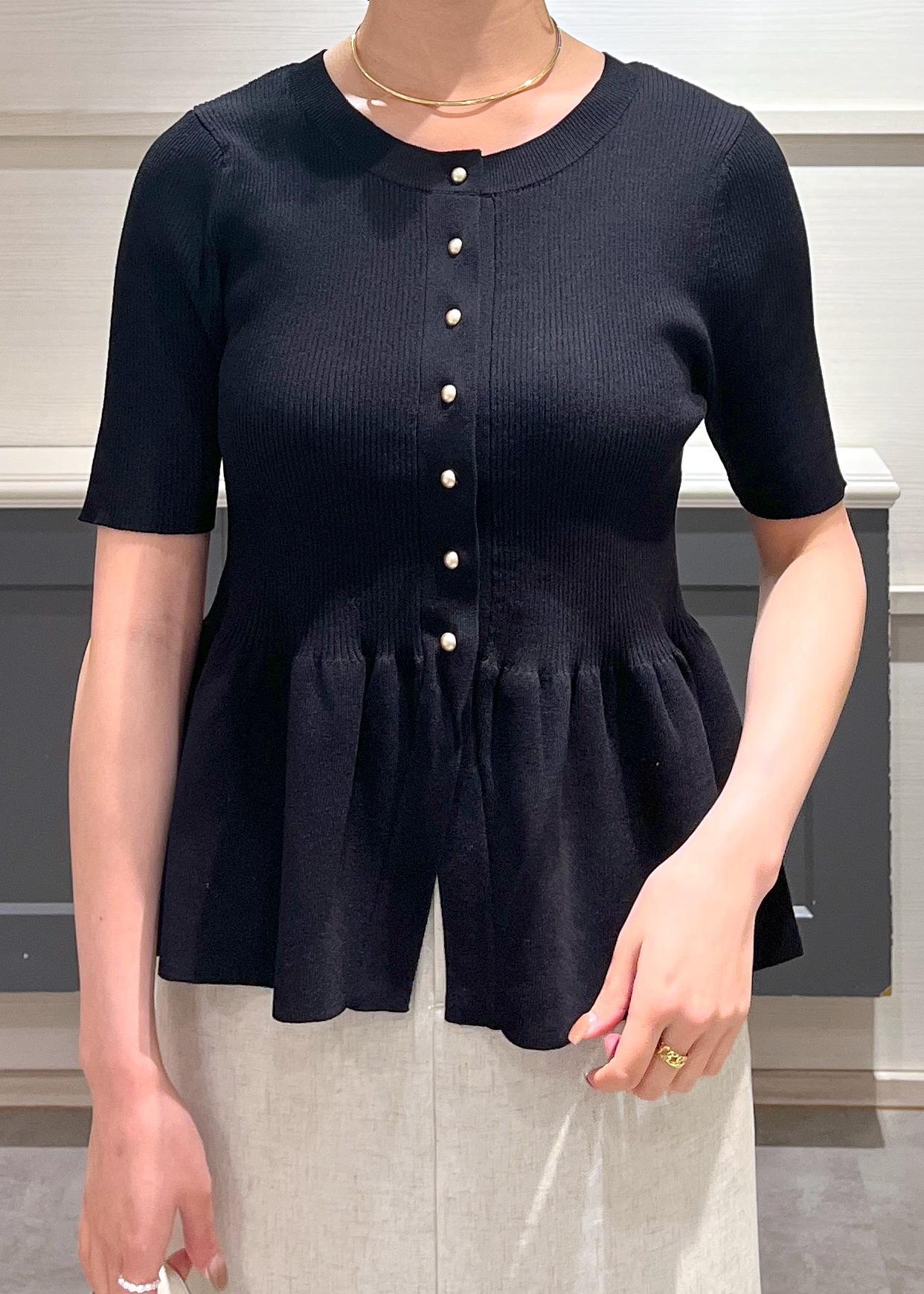 アウトレットVIS【アンチピリング】ペプラムハーフスリーブニットカーディガンブラック / F¥4,391レビュー156cmでヒップ半分かかるくらいの丈感です!