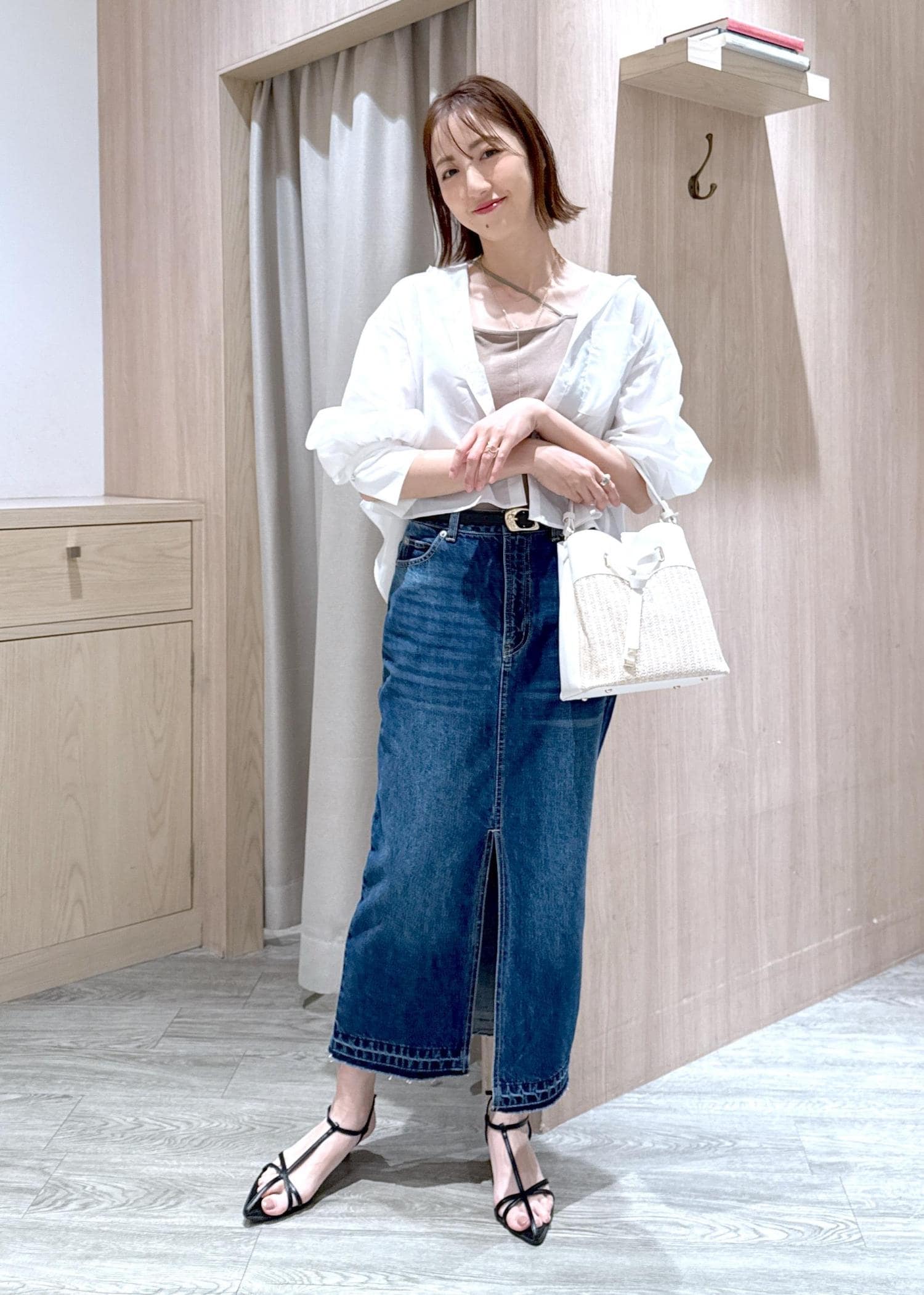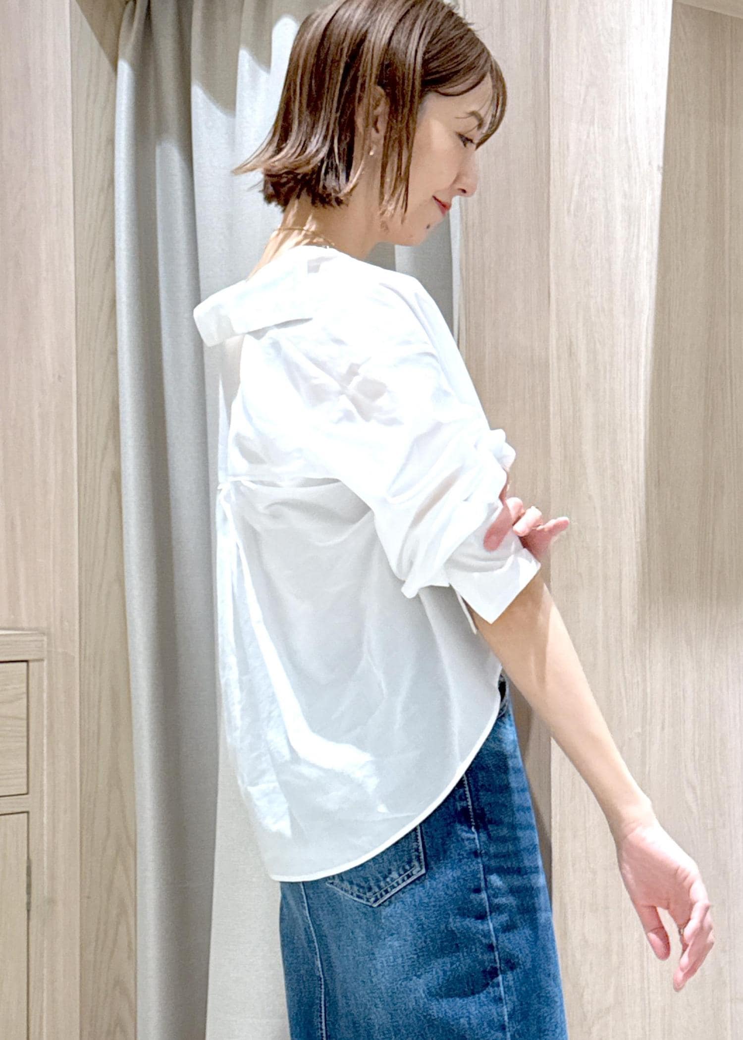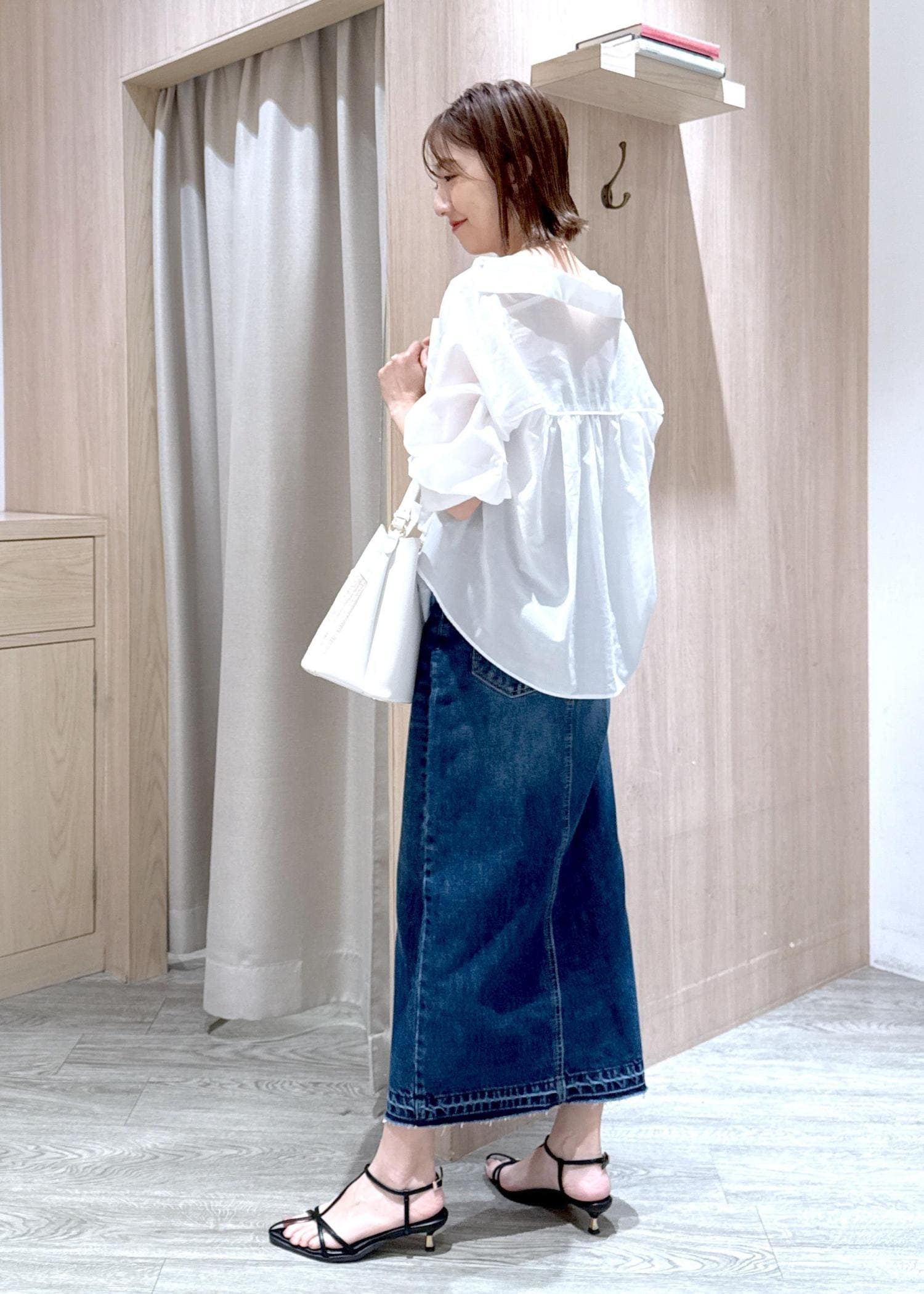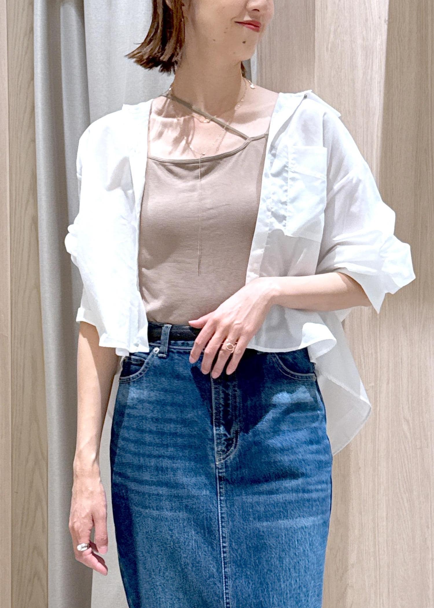 全体的にスッキリしたシルエットなので合わせるトップスを選びません。