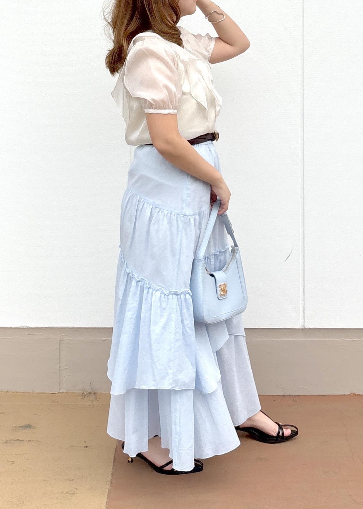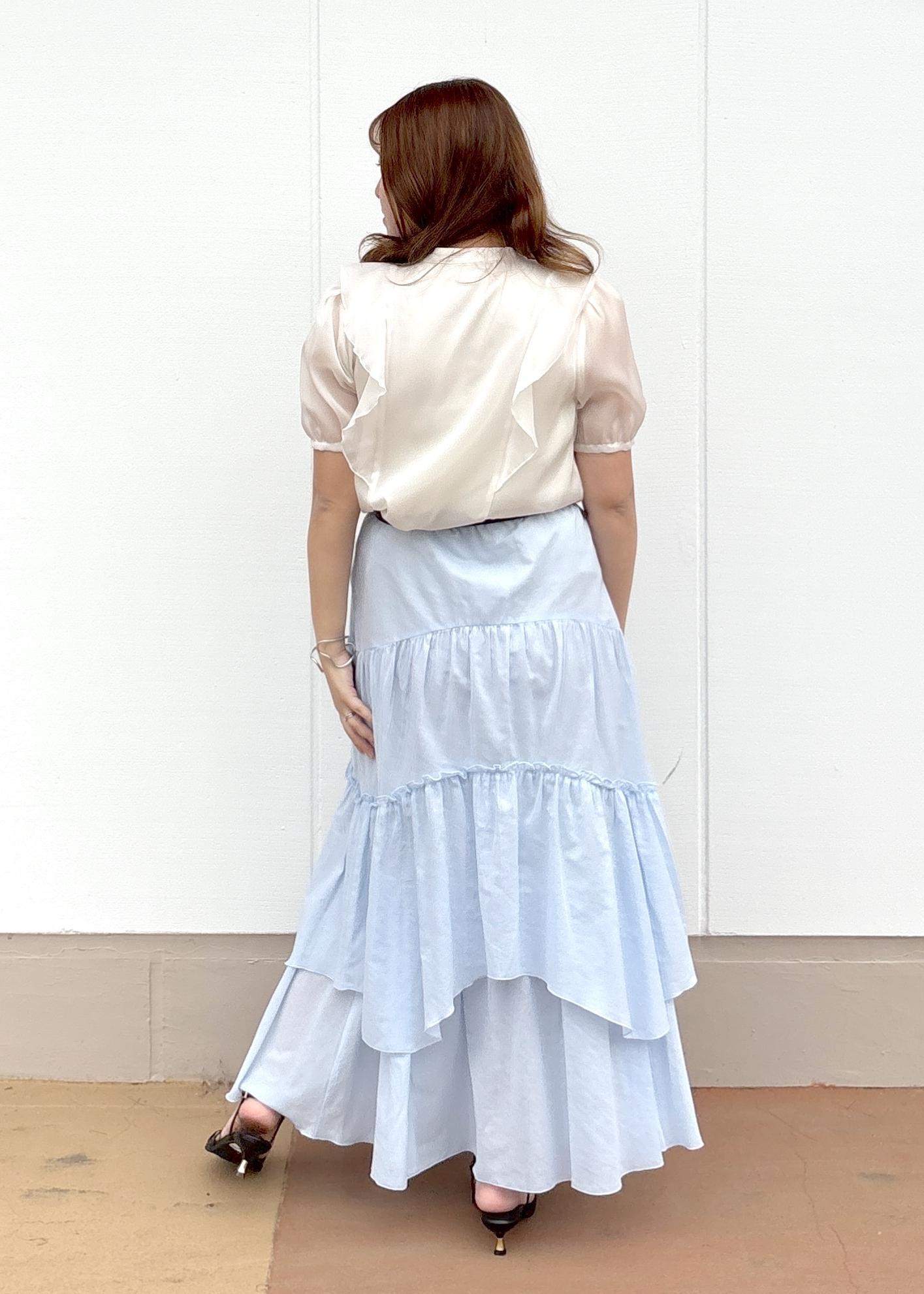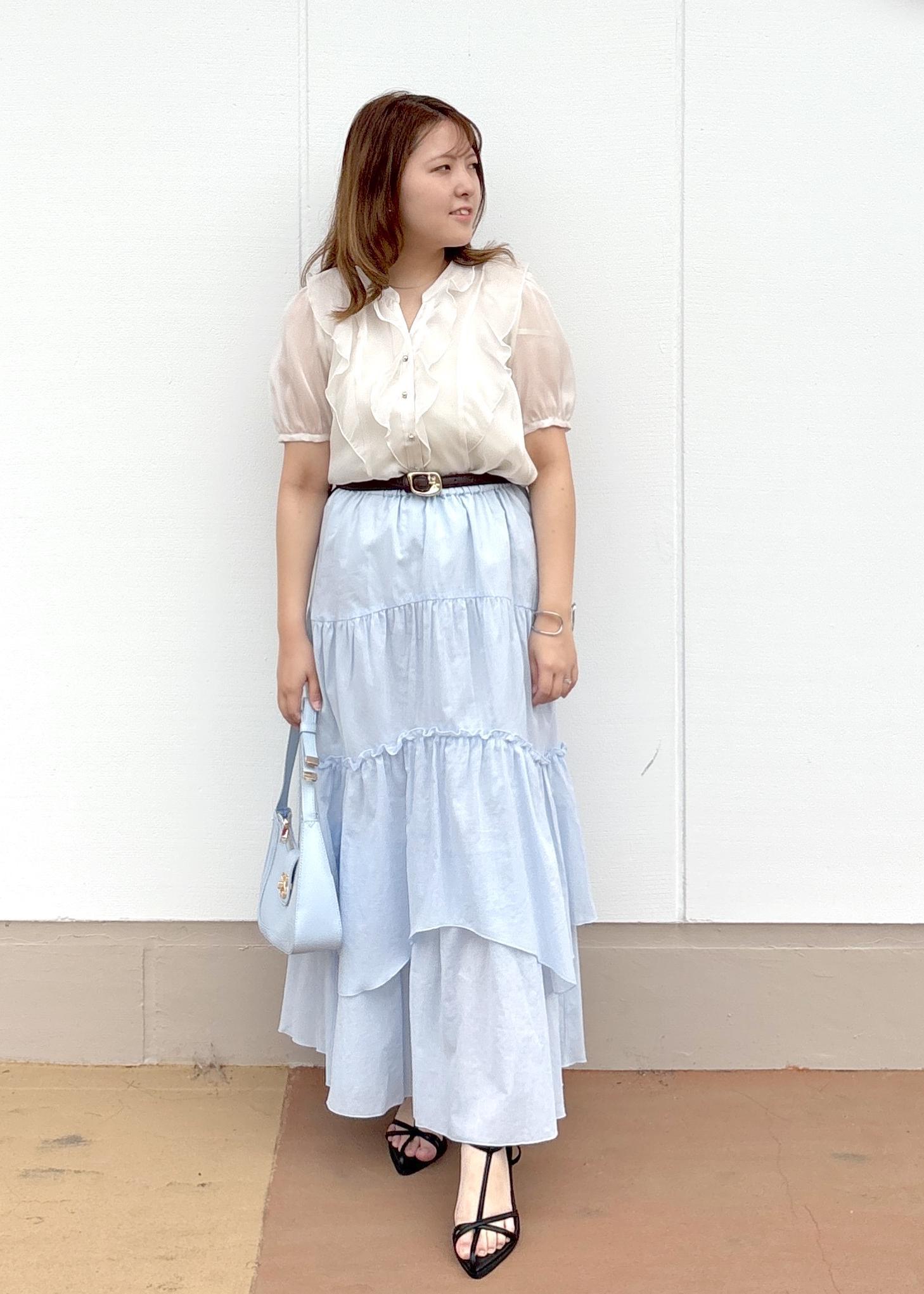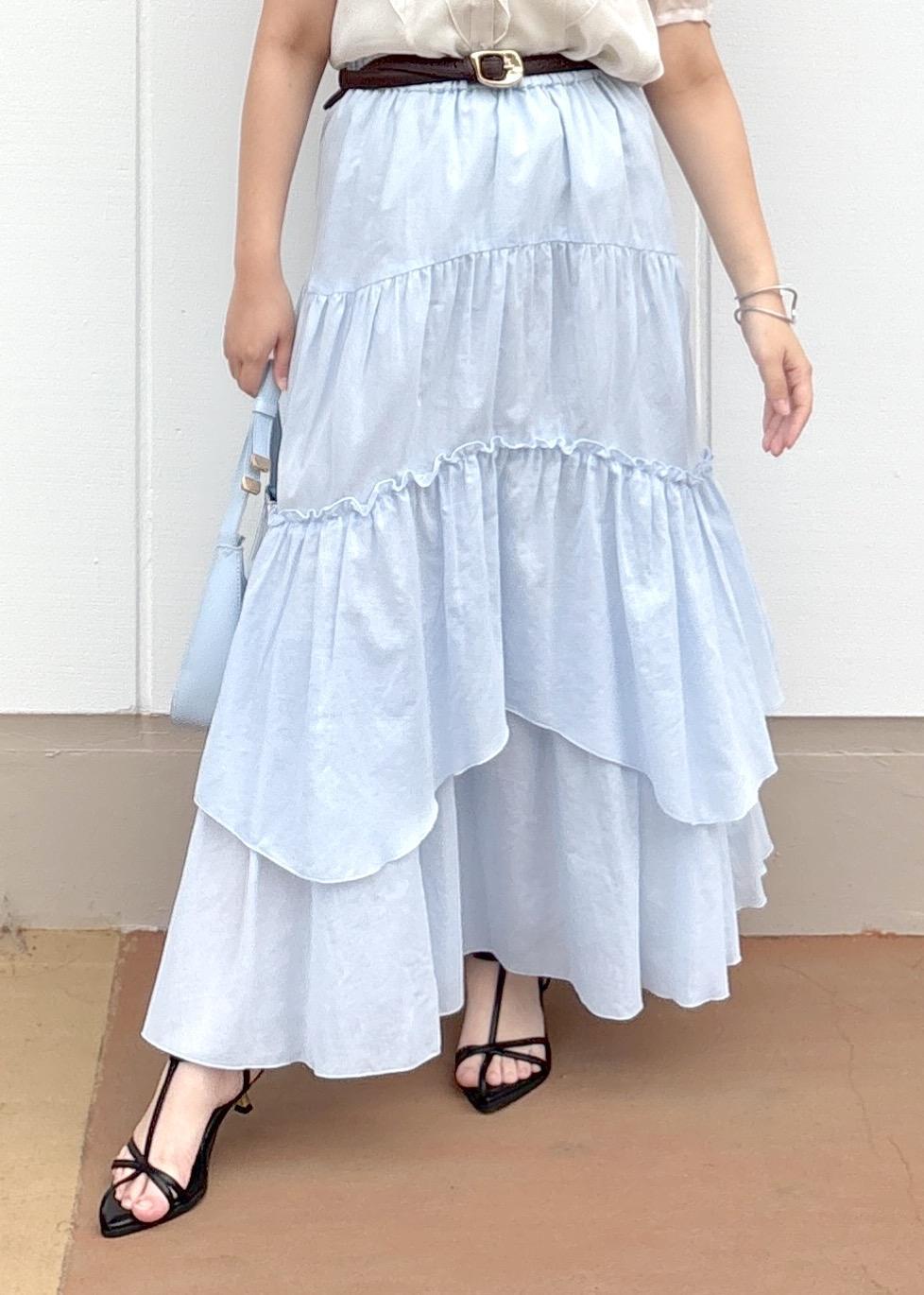 アウトレットVISボイルティアードスカートブルー系 / F¥3,955レビューウエストがゴムで履きやすいです!