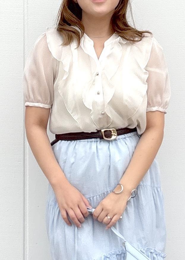 アウトレットVIS【洗える】シアーラッフルフリル半袖ブラウスキナリ / F¥4,391レビュー1枚で着映えするトップス!