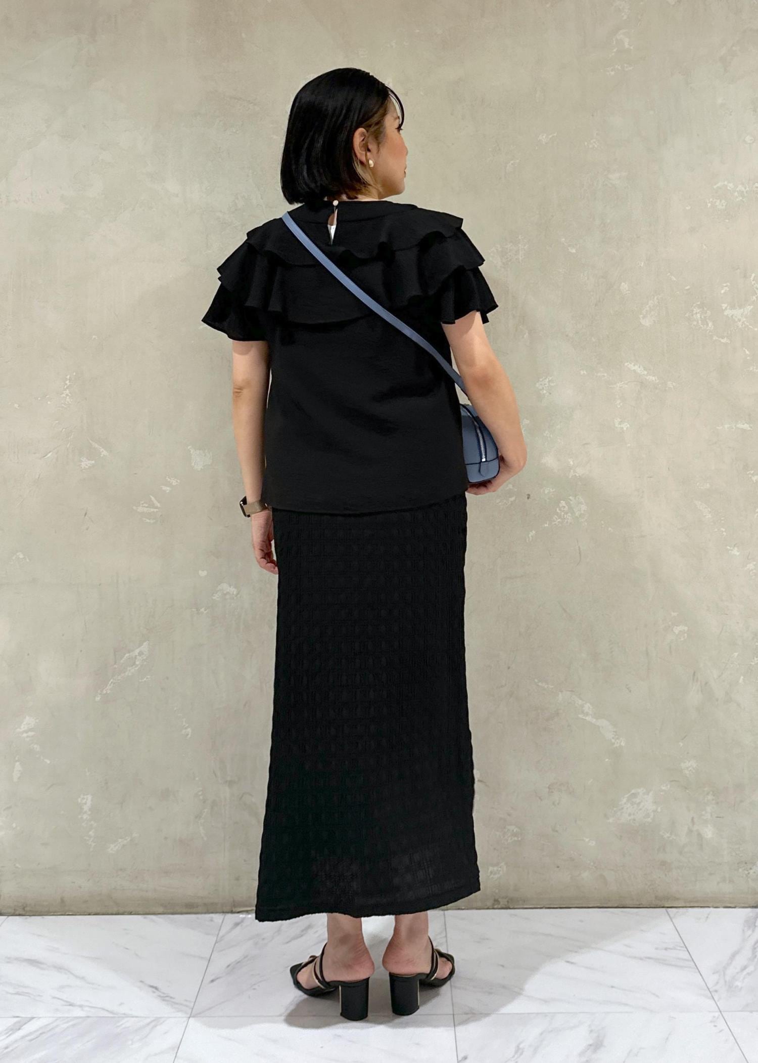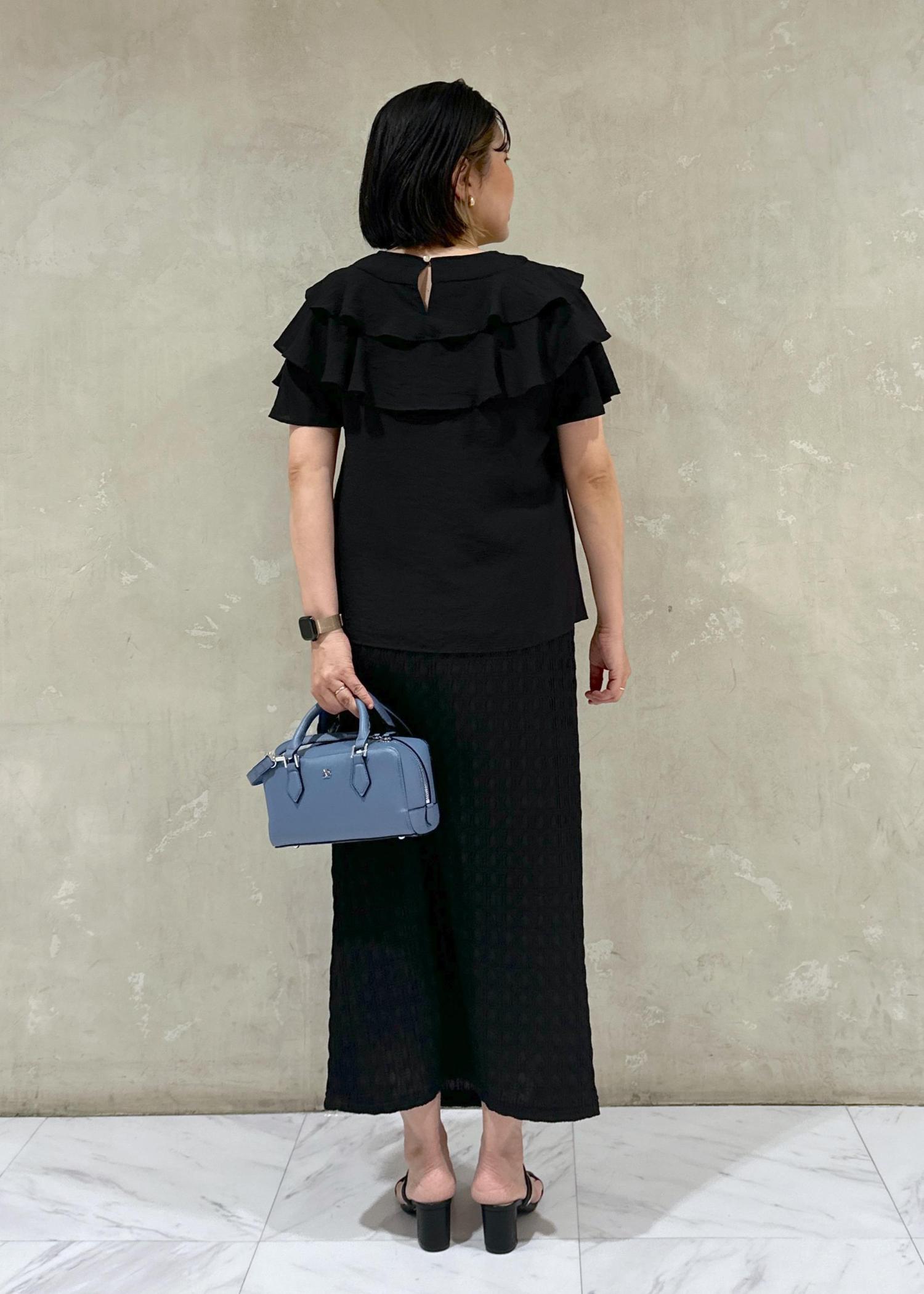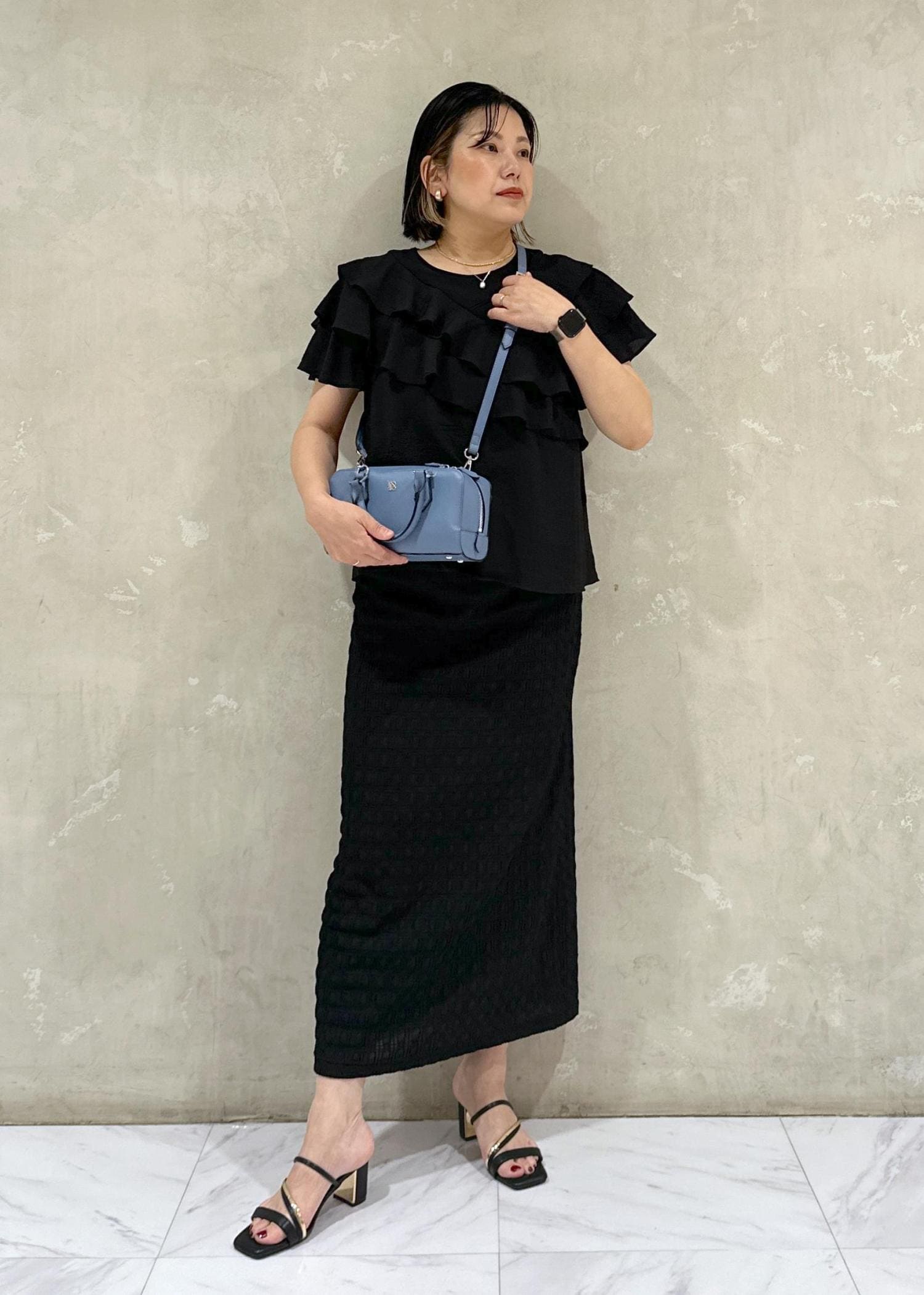 アウトレットVISフリルティアードブラウスブラック /¥4,391レビュー見た目より胸辺りも身幅もゆったりしていて涼しい。