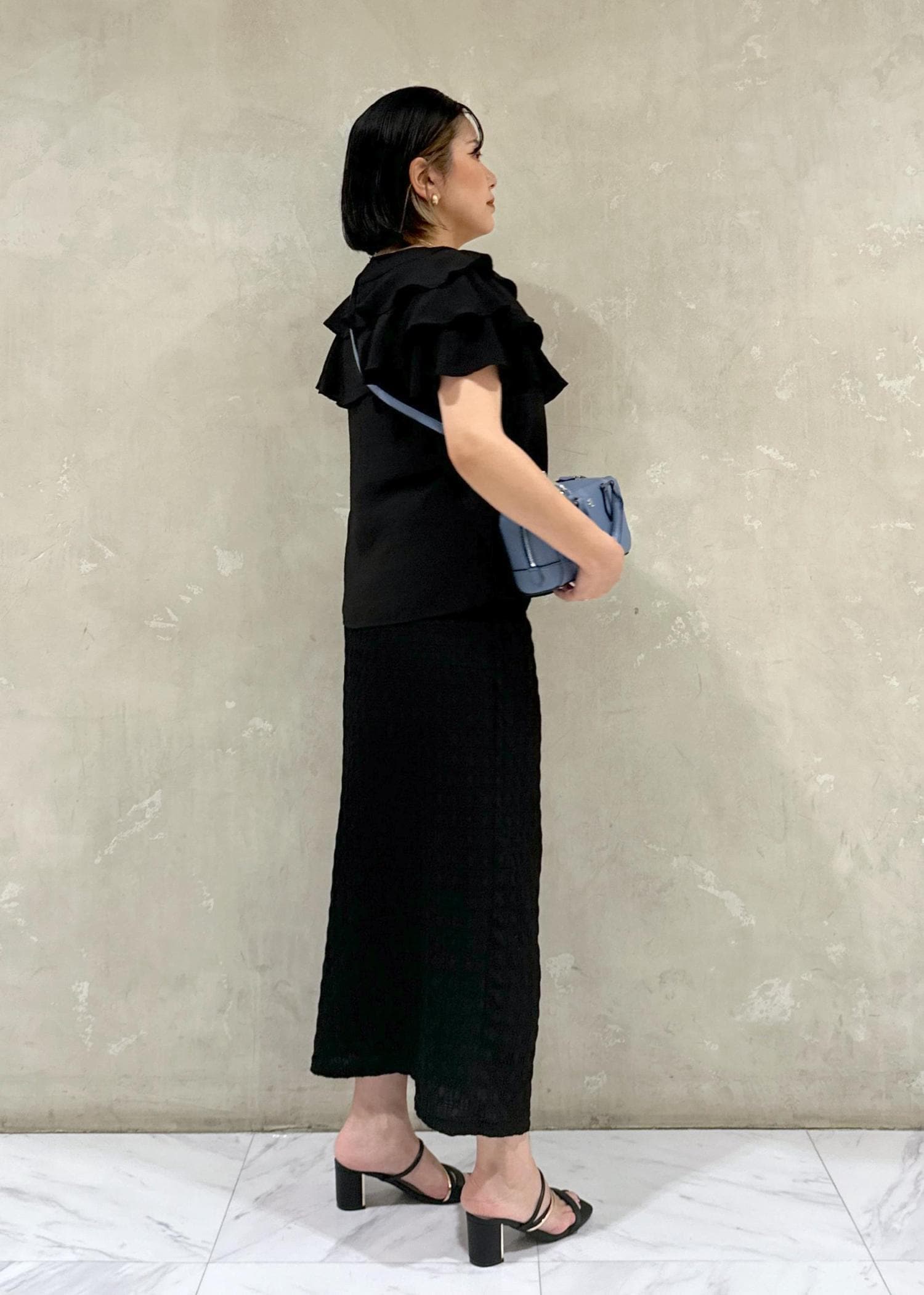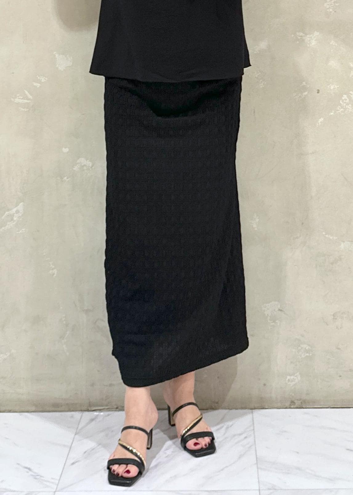 アウトレットVIS【新色追加】【接触冷感】膨れジャガードナロースカートブラック / F¥3,293レビュー生地感柔らかく、ウエストがゴムでストレスフリー!
