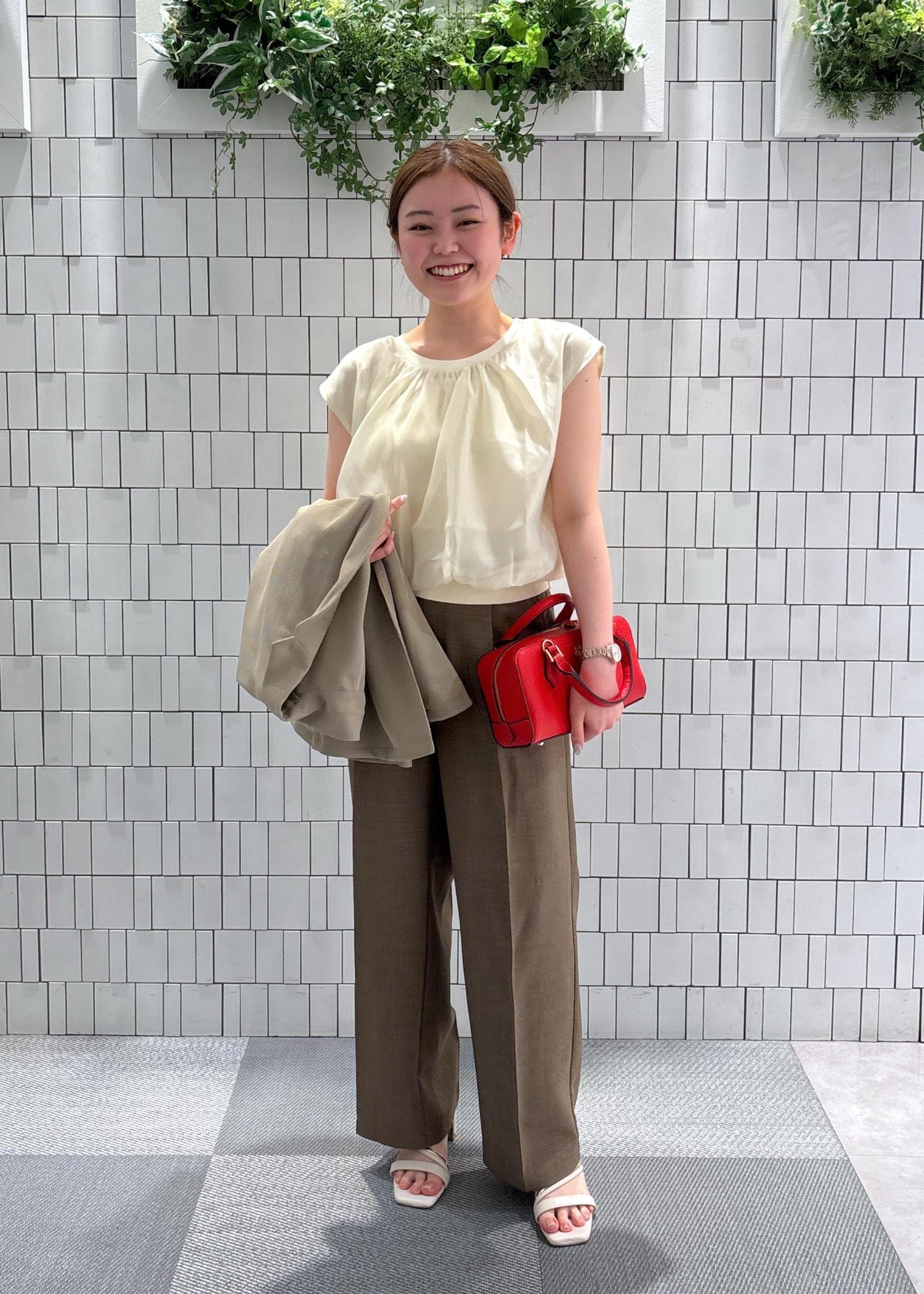 VIS【美easy】ワンタックワイドスラックスパンツ/洗えるカーキ系 / S¥5,489レビュー身長150センチで、Sサイズだと丁度くるぶしが隠れる丈感です。