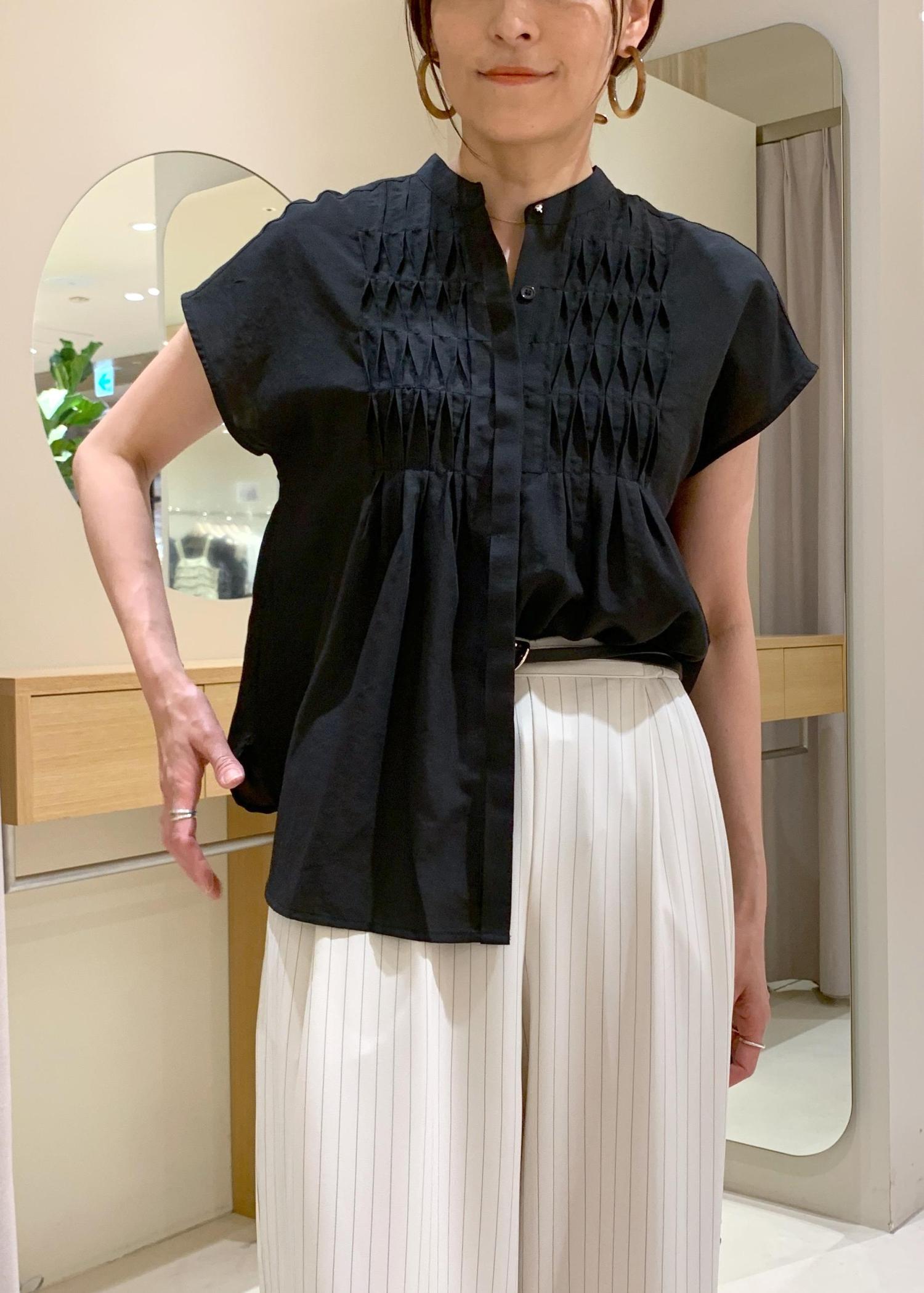 アウトレットVIS【接触冷感/洗える】気流染めスモッキングブラウスブラック / F¥3,457レビューふんわり軽い質感で、ストレスフリーです。
