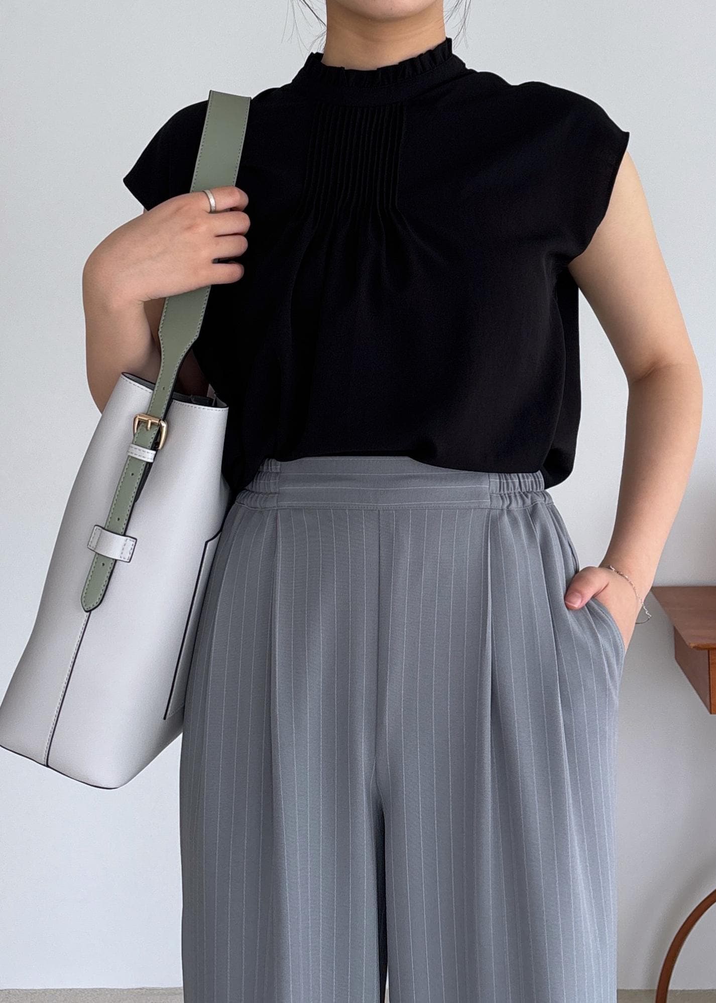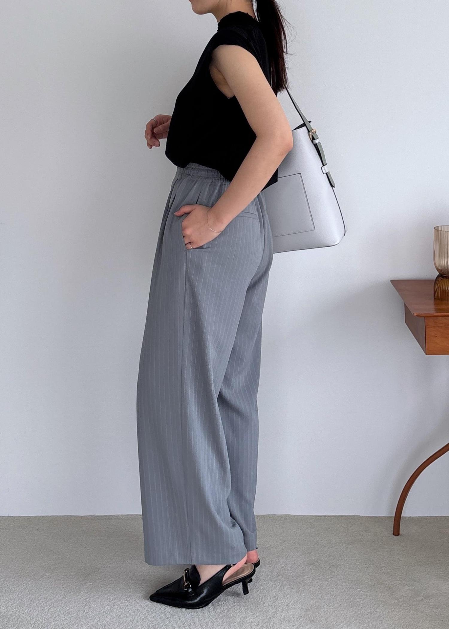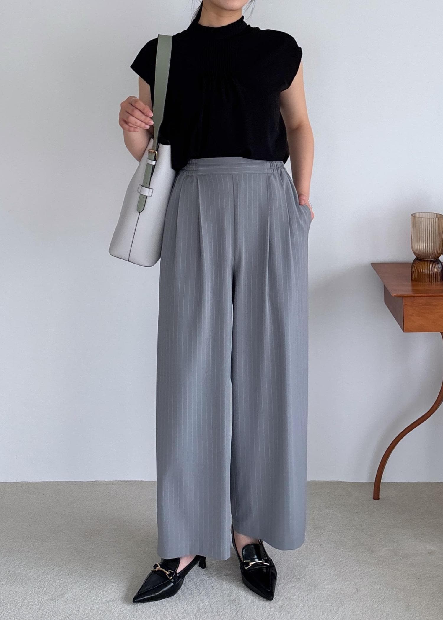 アウトレットVIS【接触冷感/UVケア】ピンストライプリラックスワイドパンツグレー / M¥2,636レビューボディラインをを拾いづらいワイドパンツ。