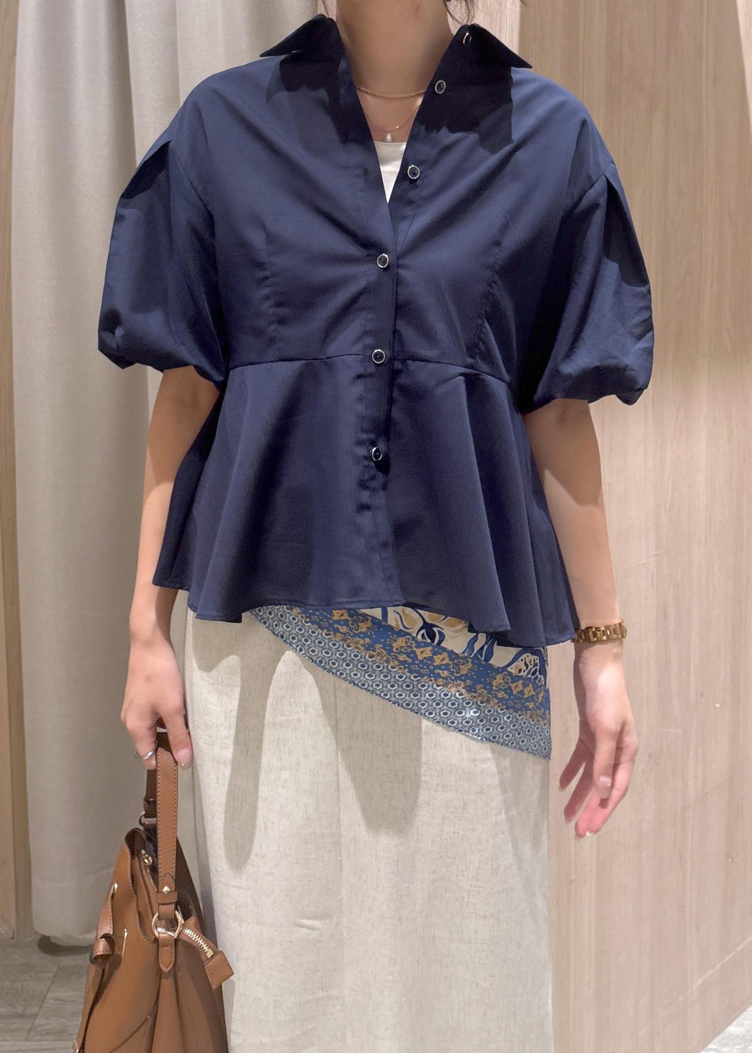 アウトレットVISバルーンスリーブペプラムシャツ/通勤対応ネイビー / F¥3,457レビュー168センチで腰回りが隠れるサイズ感です。
