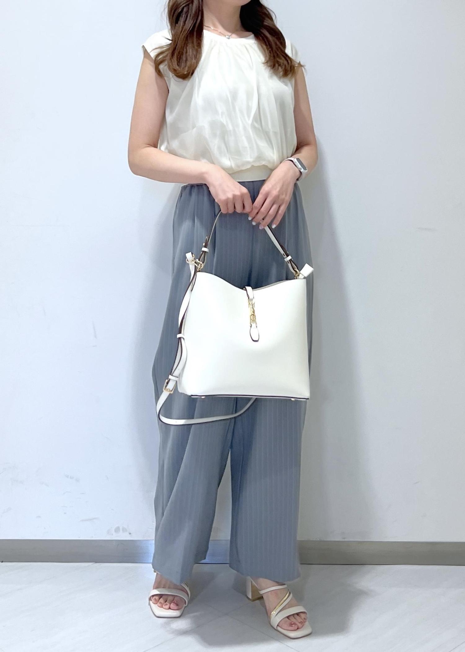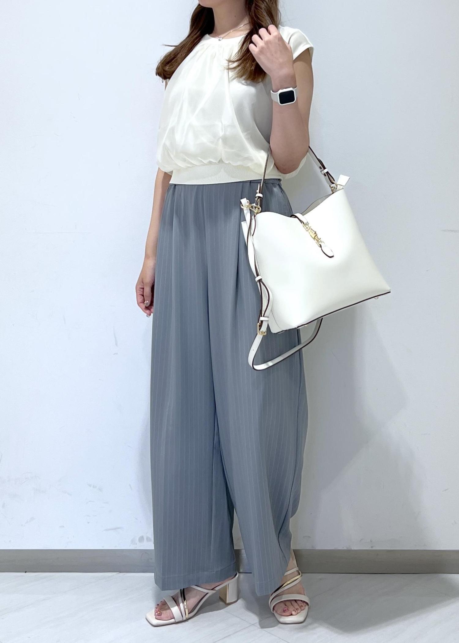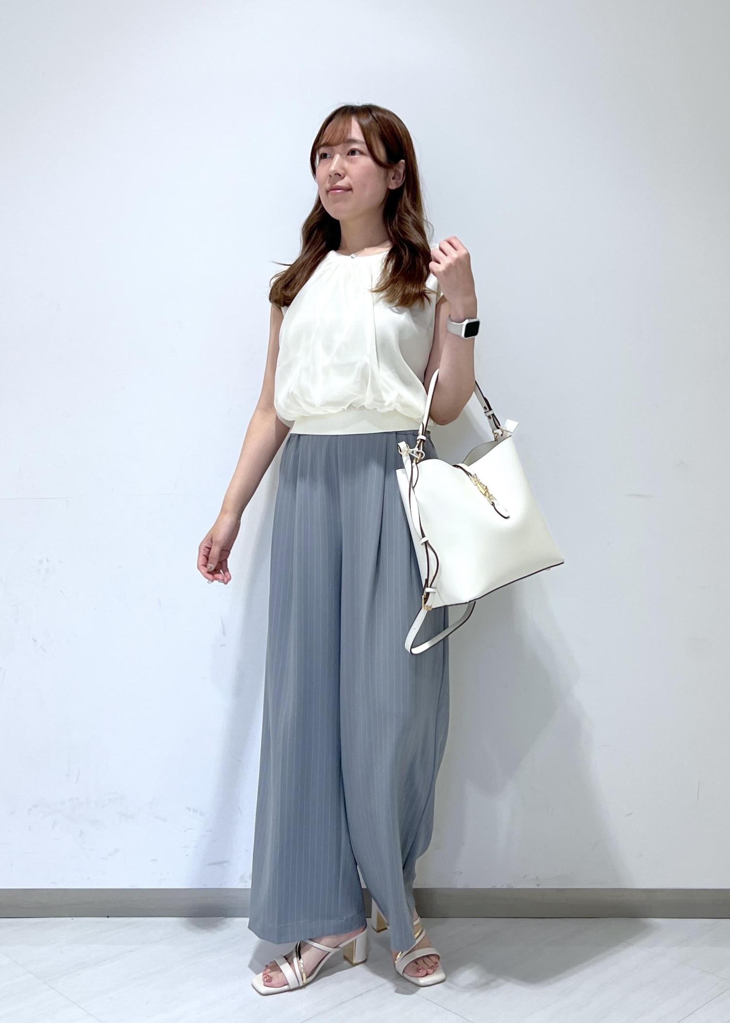 アウトレットVIS【接触冷感/UVケア】ピンストライプリラックスワイドパンツグレー / M¥2,636レビューウエストがゴム+紐で結べるのとワイド作りなので、ゆったりとしたサイズ感です◎くるぶしにかかる丈感です。リラックスして着用出来ます!
