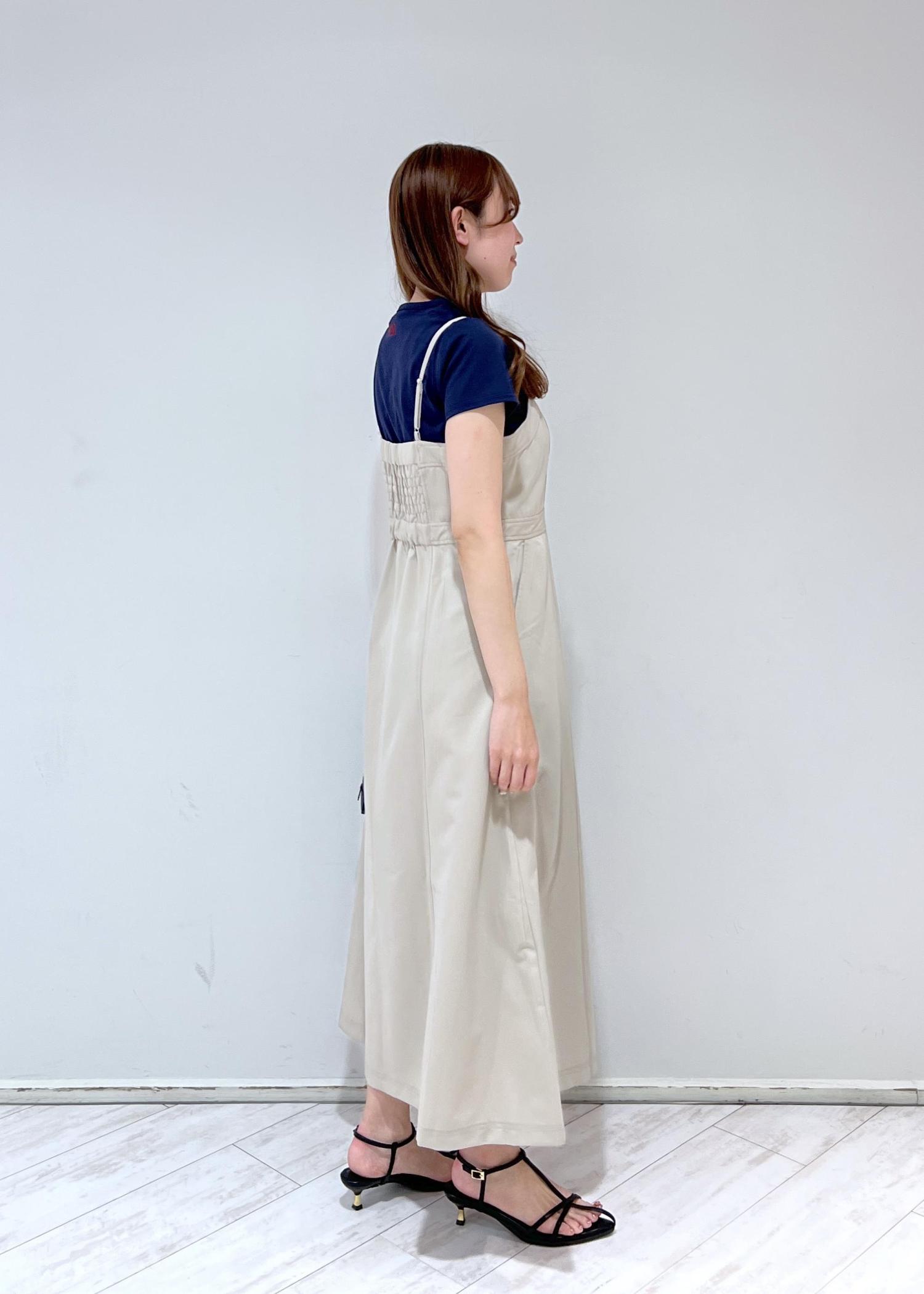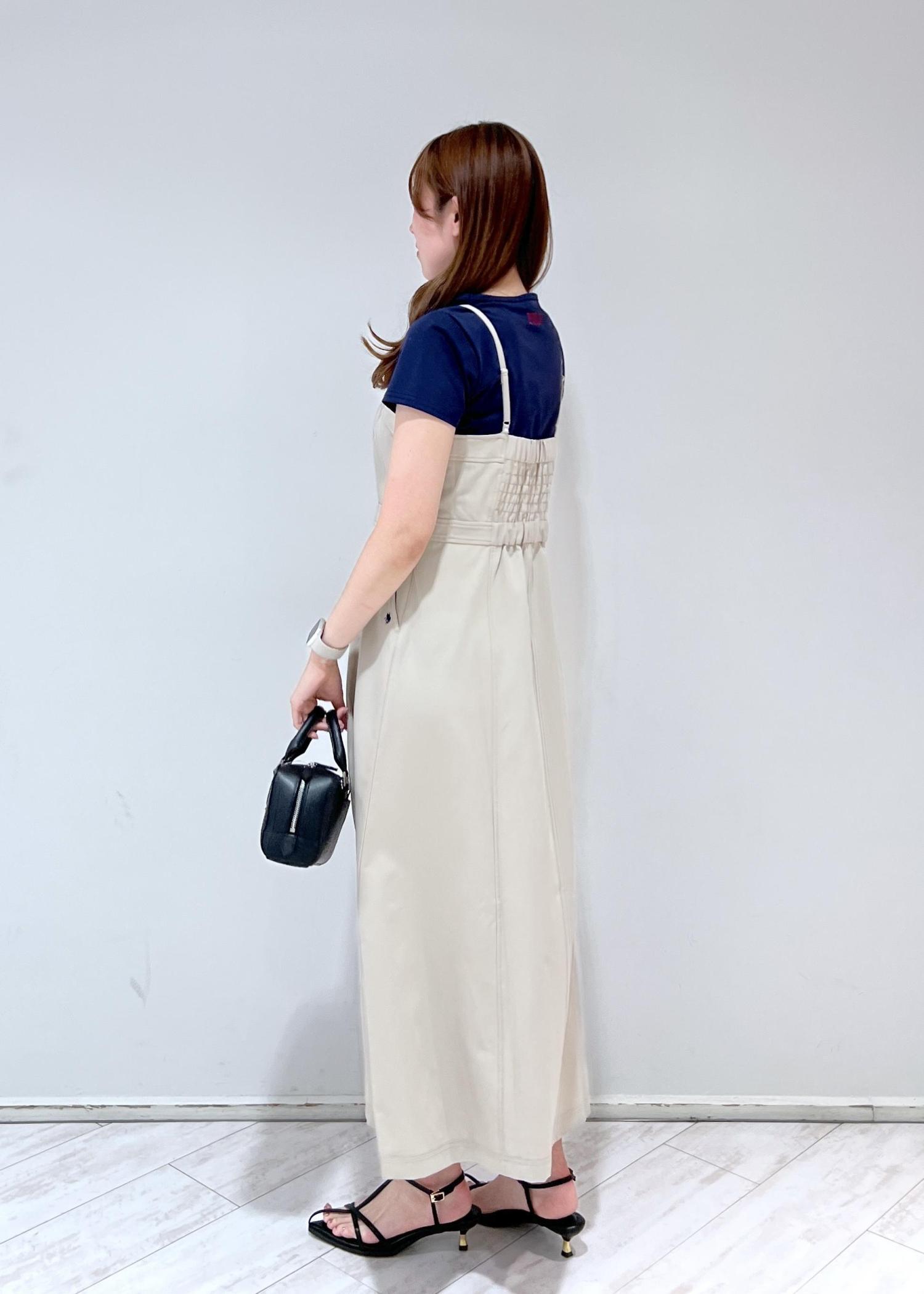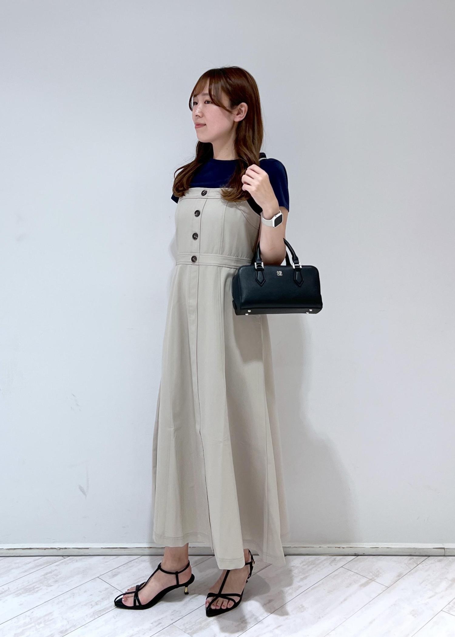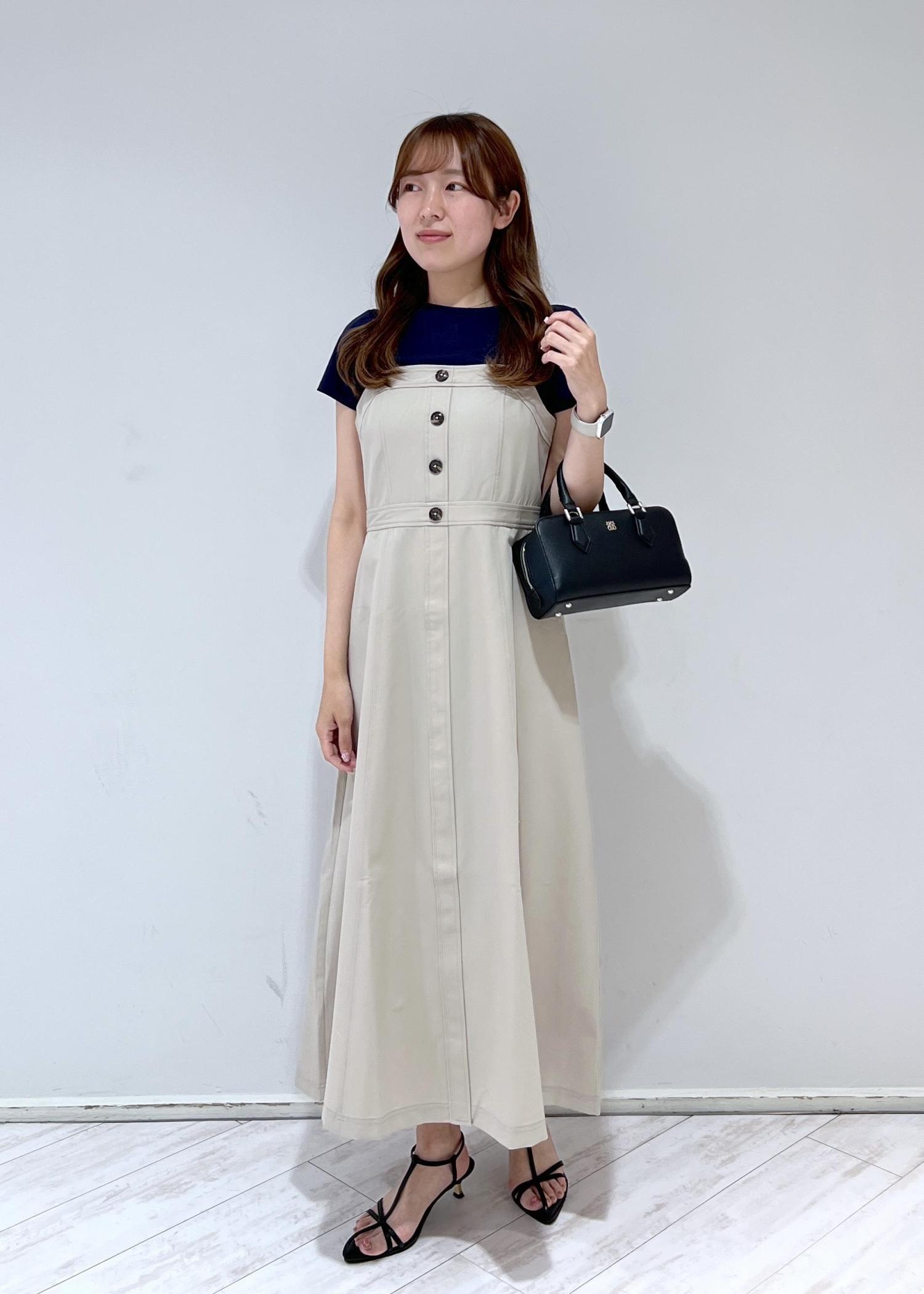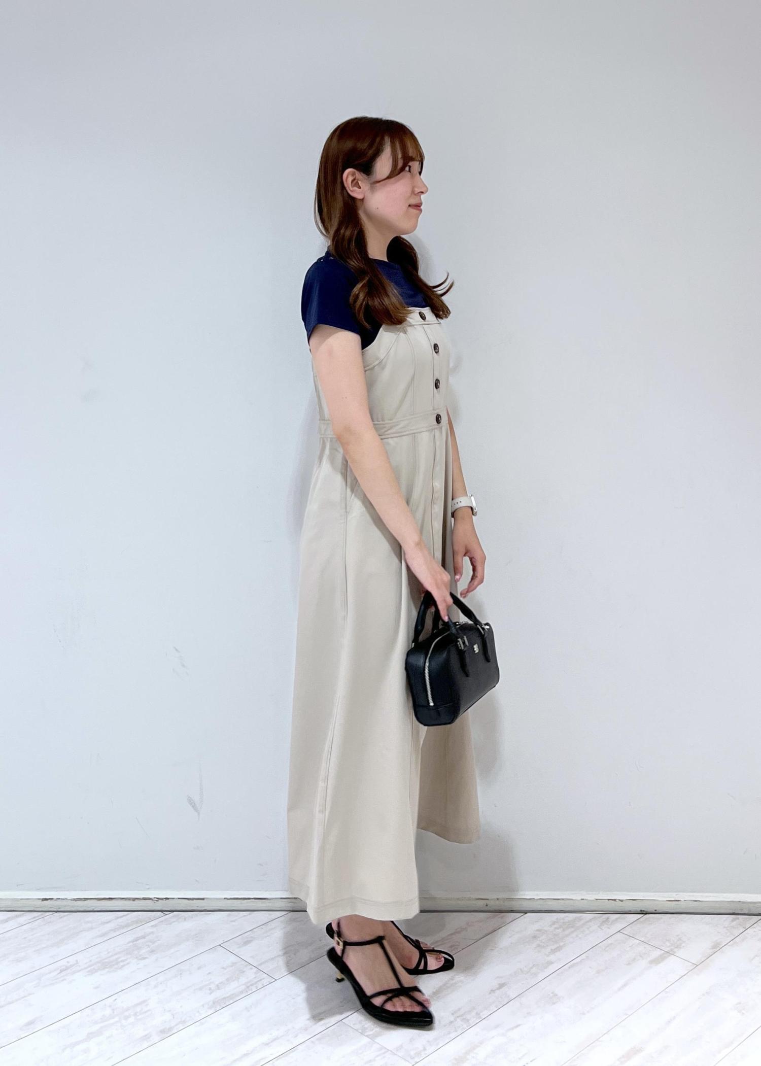 VIS【POLO BCS】VIS別注フロントボタンツイルワンピースベージュ / F¥9,999レビュー身長164cmで足首くらいの丈感です!肩紐で調節出来るのでお好みの丈で着用出来ます◎
