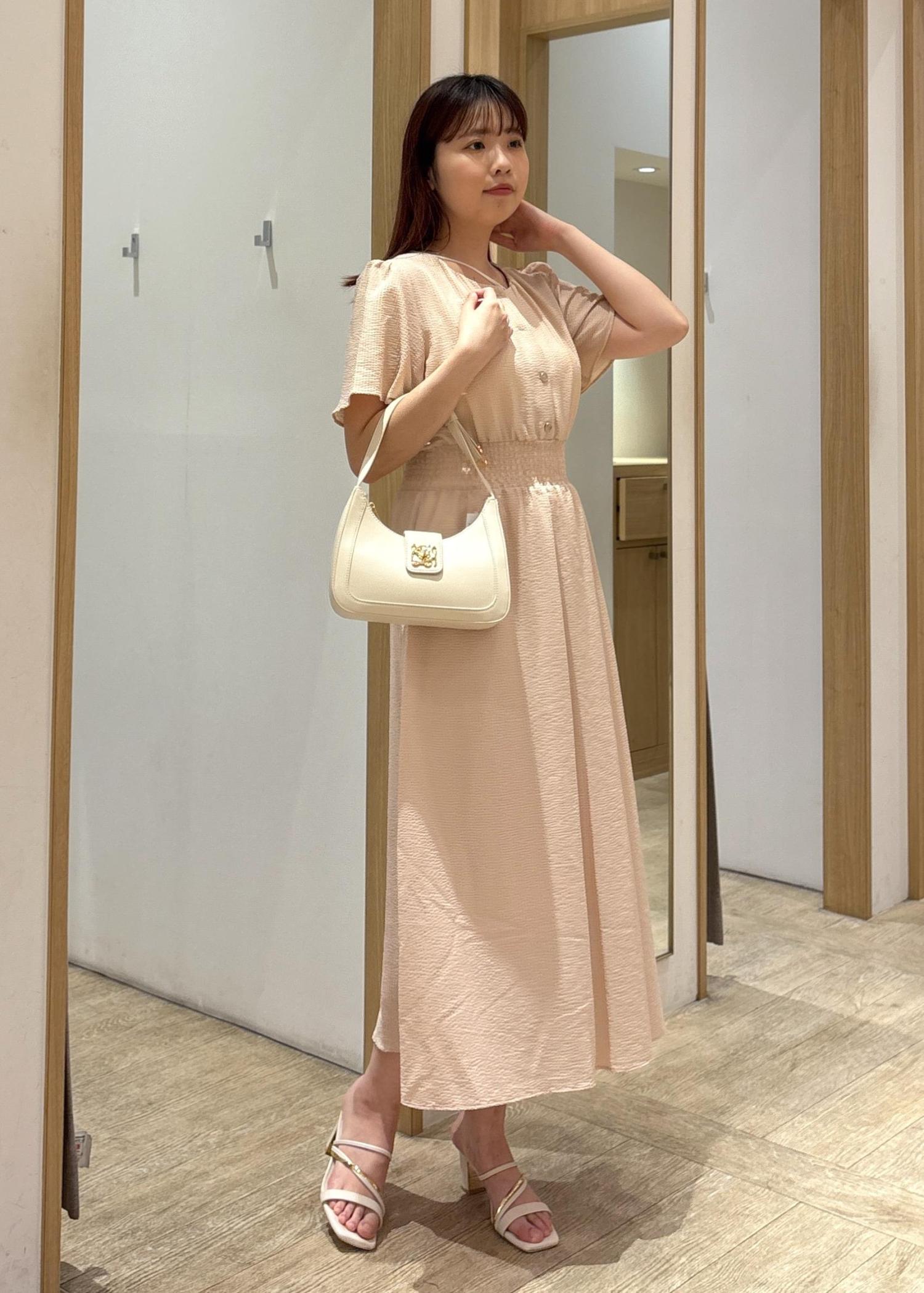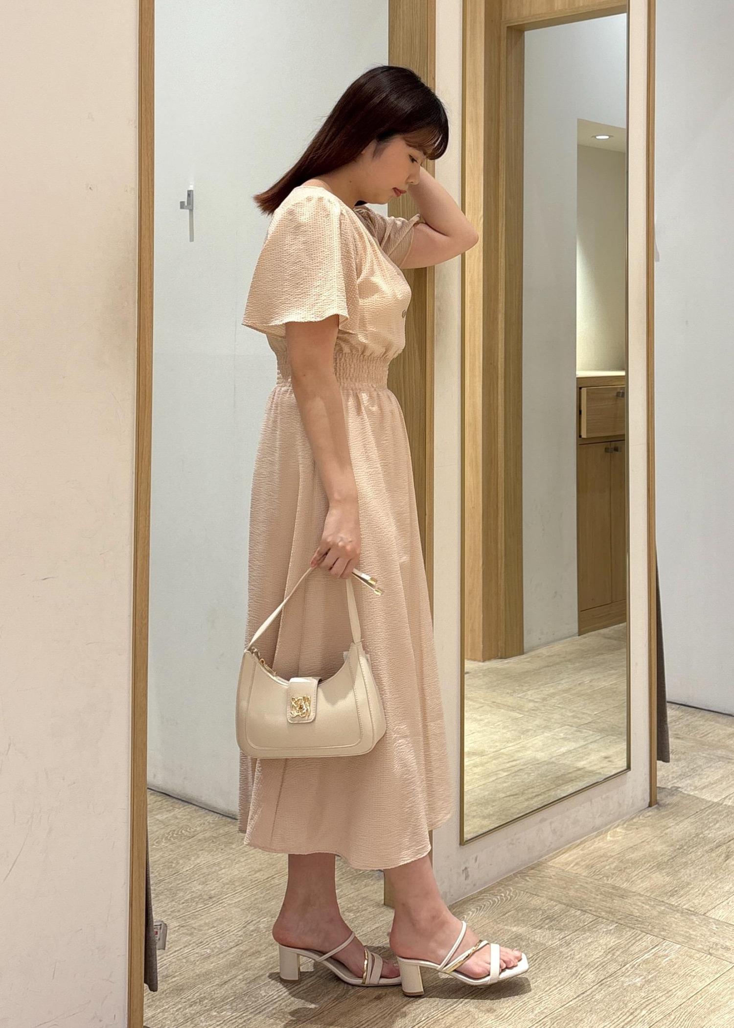デコルテ部分のアシンメトリーのストラップがトレンド感があり大活躍です! -
