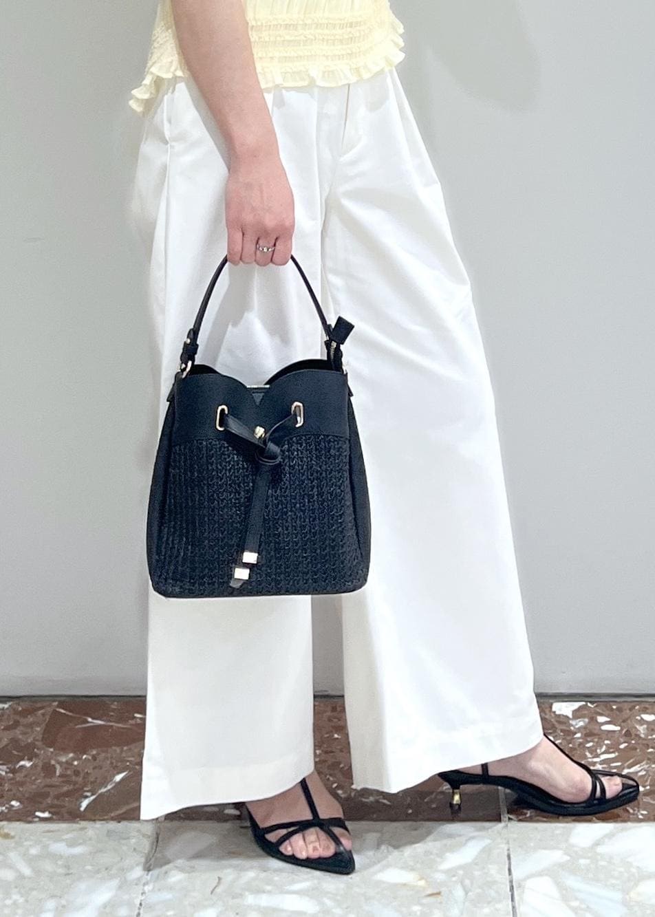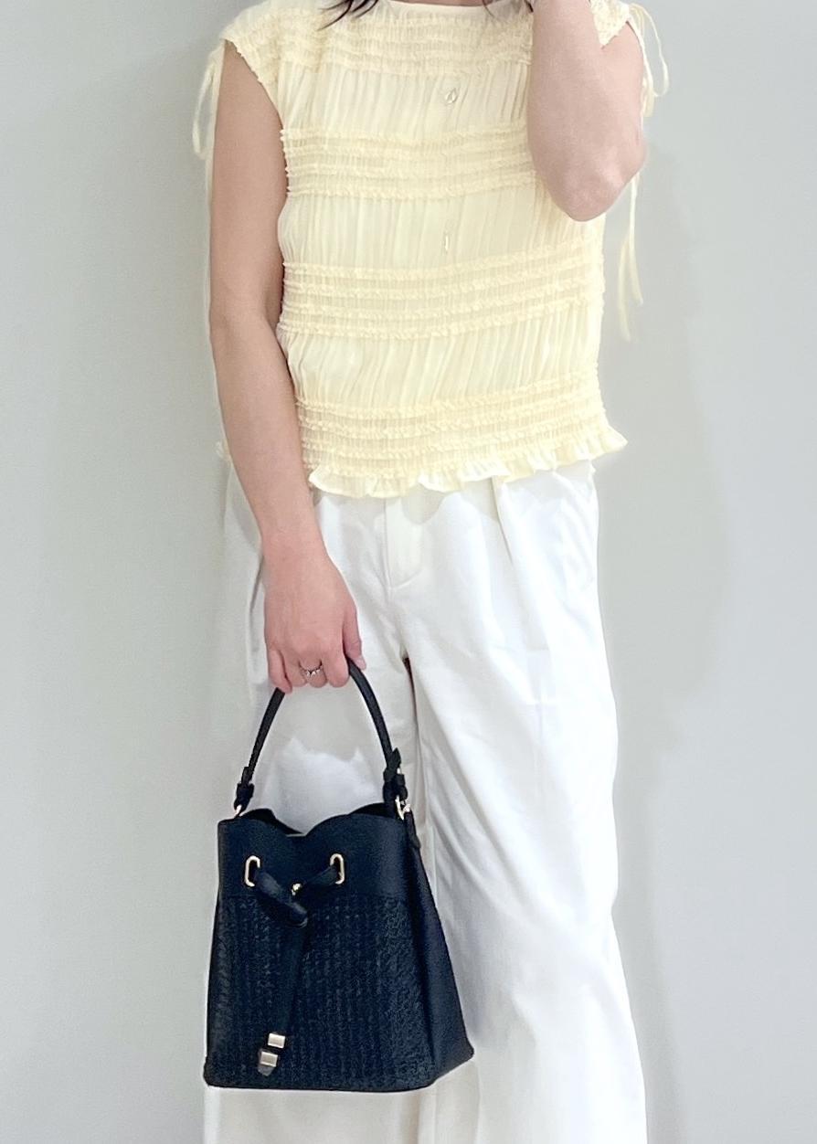 夏らしくカジュアルで持てる軽いデザインでとっても可愛いです。ブラックとホワイトどちらも合わせやすいです。ショルダーつきで便利です。 -