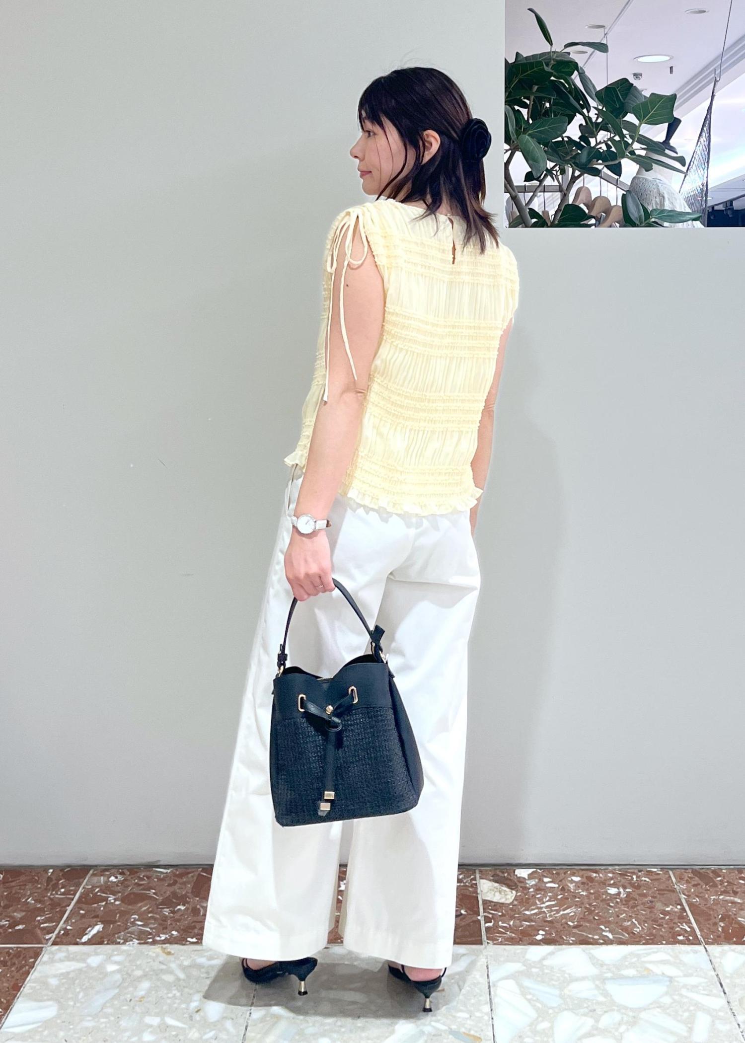 アウトレットVISプリーツシアーシャーリングブラウスクリーム / F¥3,842レビューサラサラっとしたシフォン素材で肌あたりが良く着心地が良いです。肩のリボンデザインがアクセントで幅を少し調節できるデザインです。身ごろ部分のシャーリングがきゅっとしてボディラインをスッキリ見せてくれます。