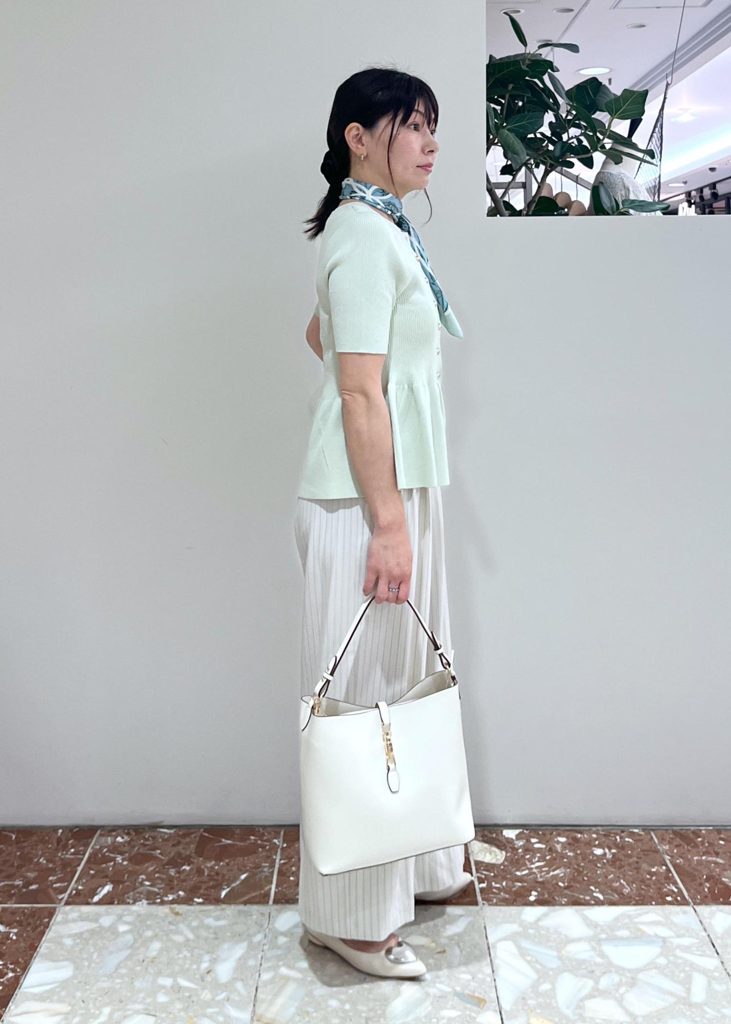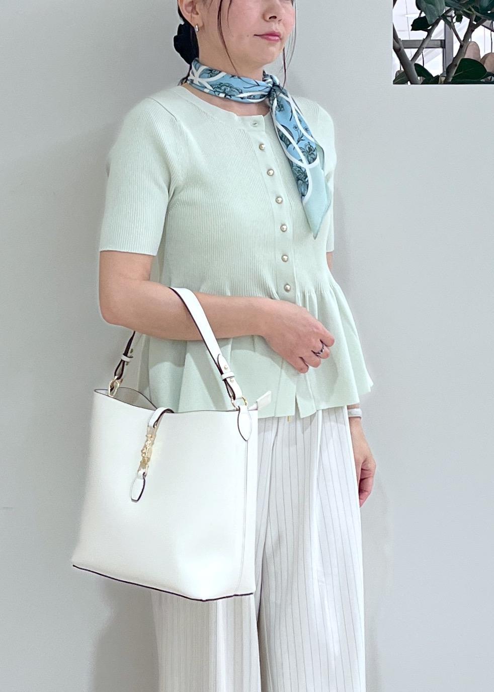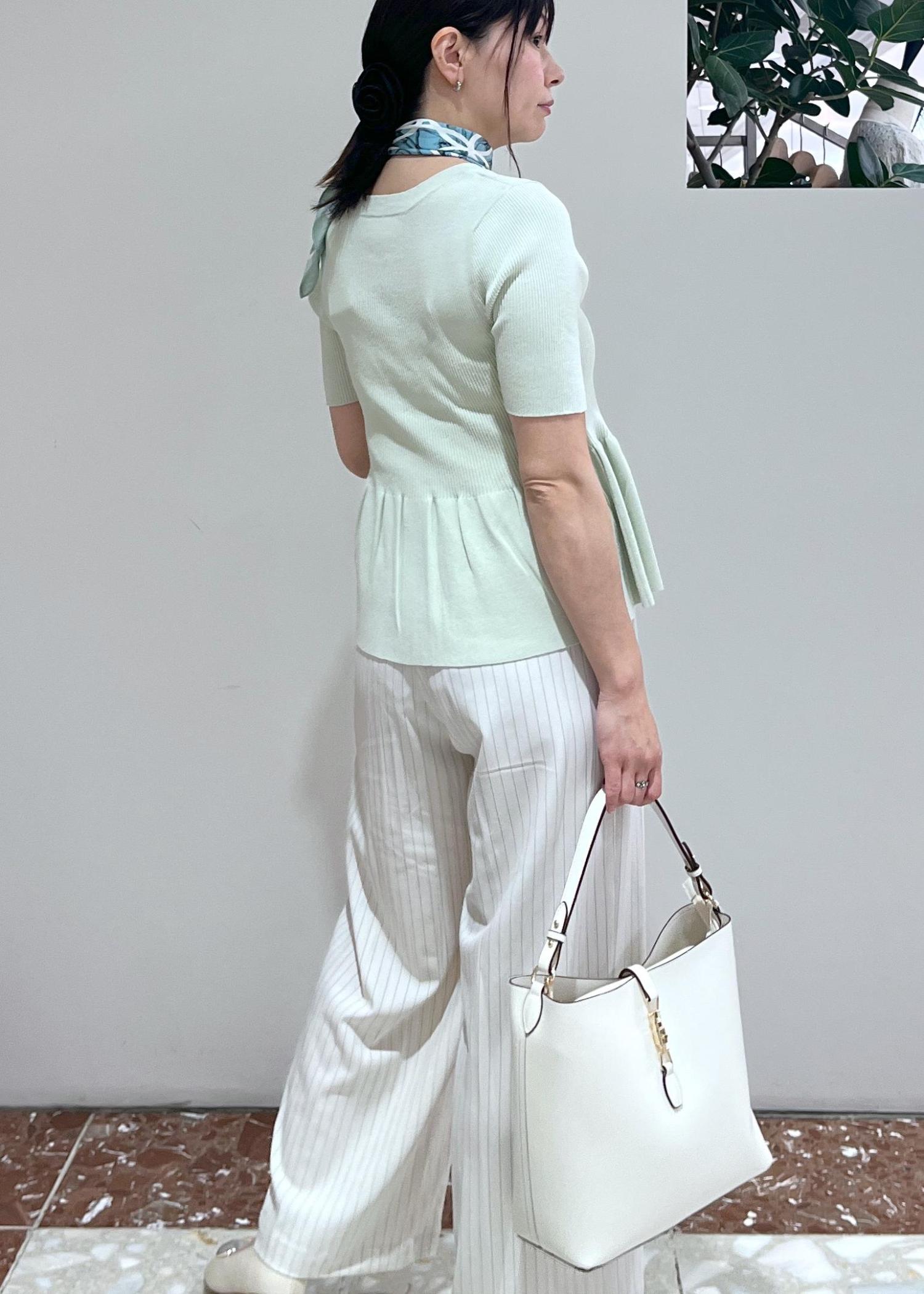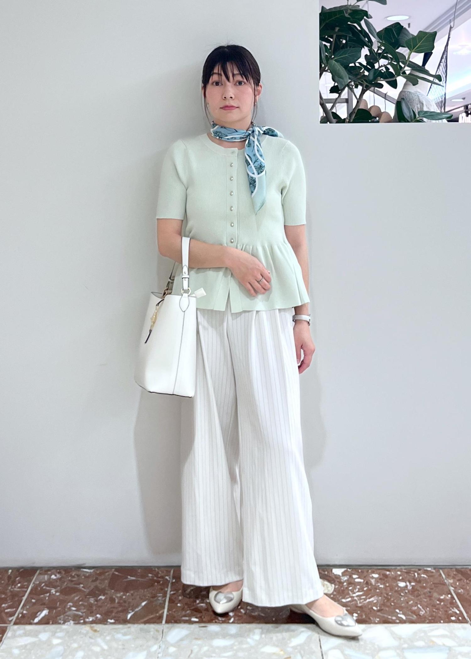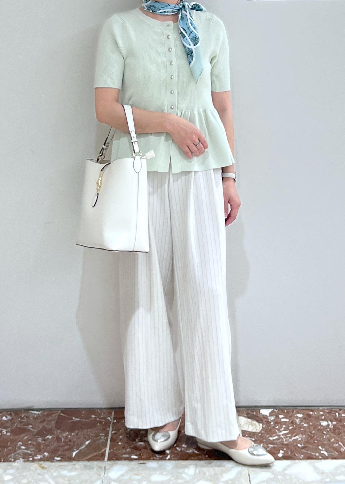 アウトレットVIS【アンチピリング】ペプラムハーフスリーブニットカーディガンライトグリーン / F¥4,391レビュー長袖バージョンで大人気だったカーディガンの半袖タイプです。ライトグリーンは明るく爽やかな印象です。同系色のスカーフを合わせてキレイ目大人コーデにしてみました。ペプラムのデザインとほどよく伸びて着心地の良いニット生地が暑い夏もオススメです。