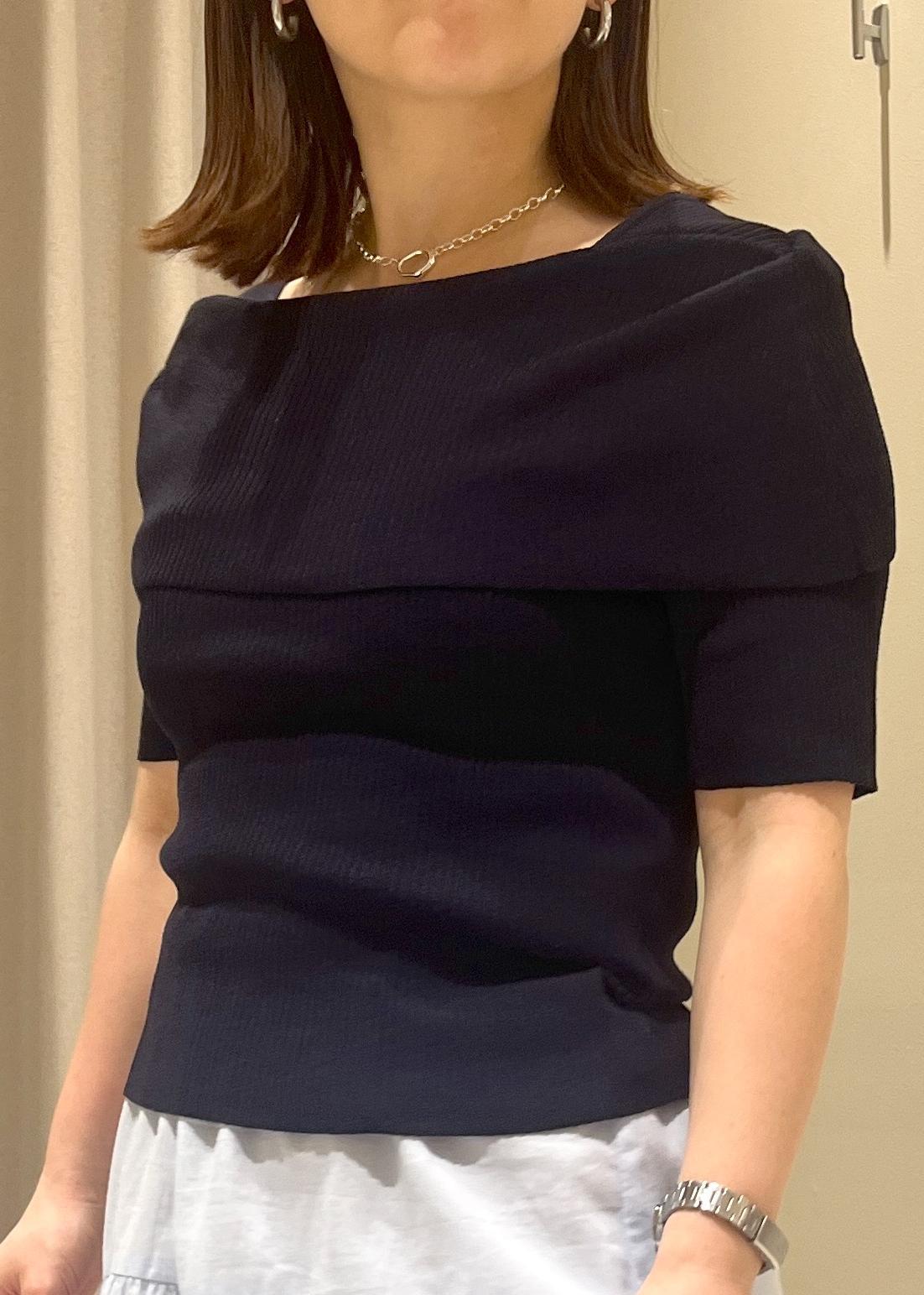 VIS【アンチピリング/UVケア/洗える】オフショルハーフスリーブニットネイビー / F¥4,939レビューリブ編みですがぴったりしすぎず、気になるボディラインを拾うことなくスッキリ着れました。