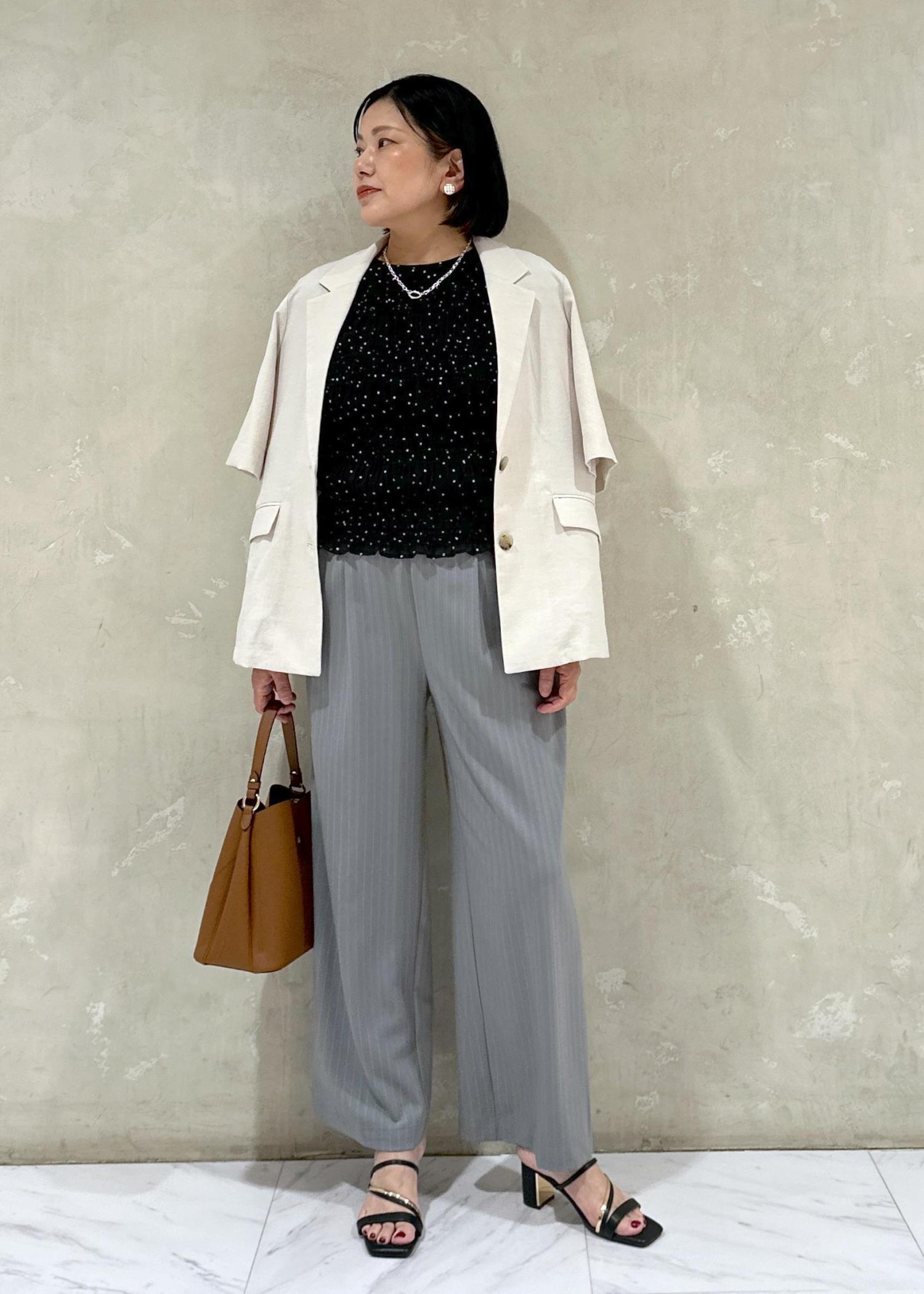 アウトレットVIS【接触冷感/UVケア】ピンストライプリラックスワイドパンツグレー / M¥2,636レビューウエストがゴムで楽ちん、ストレッチ素材で動きやすいのにワークにも使えるラインでした!