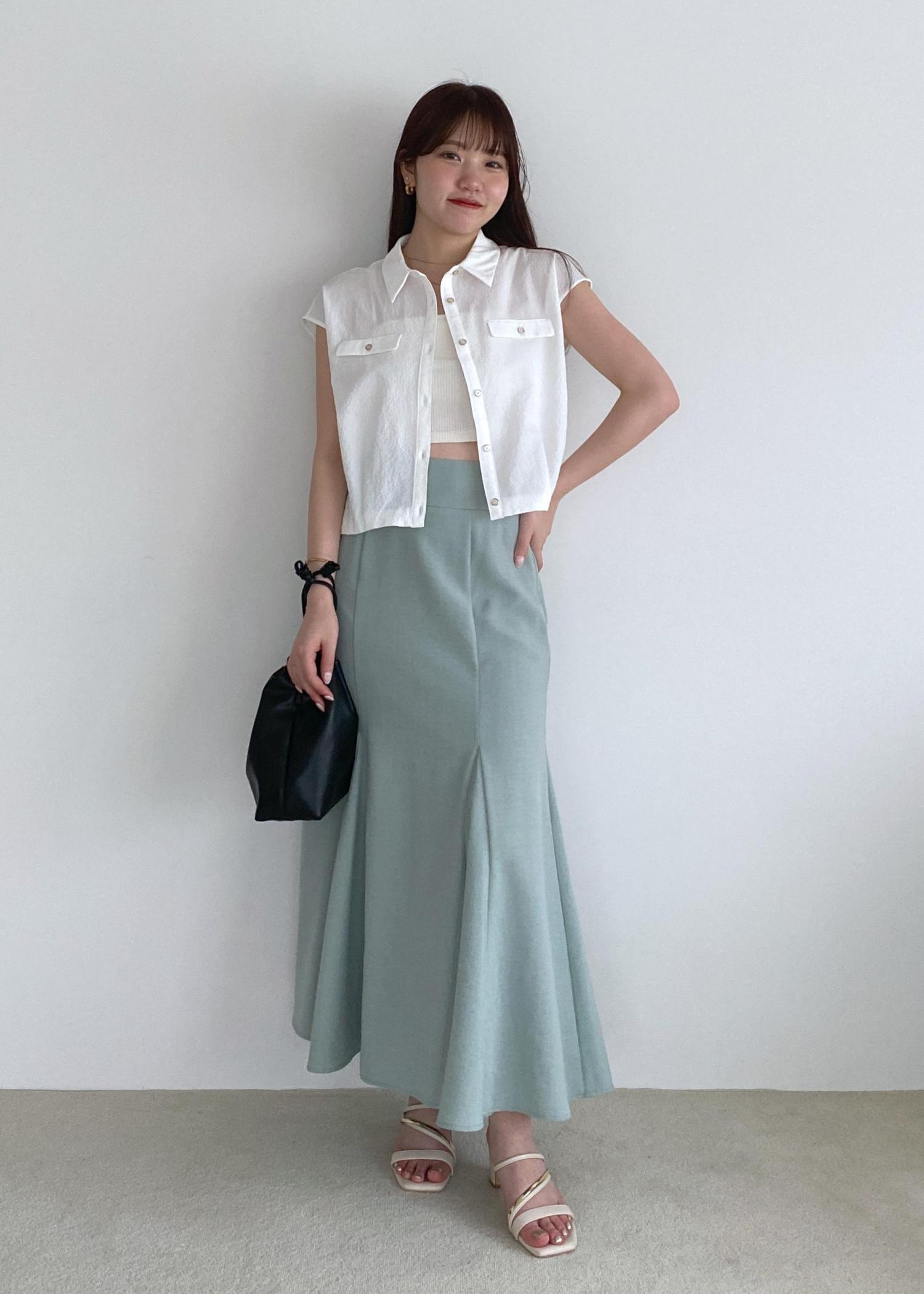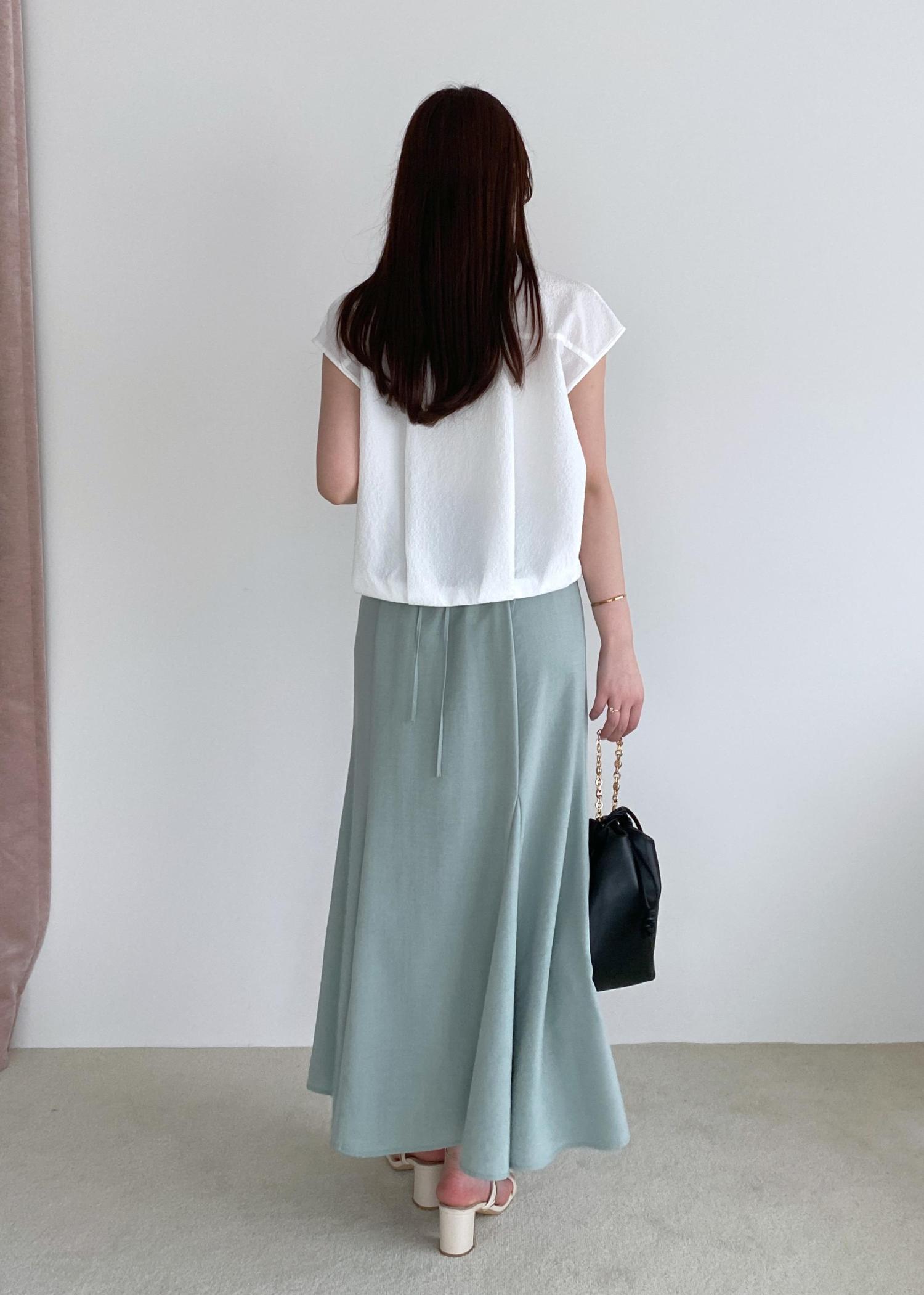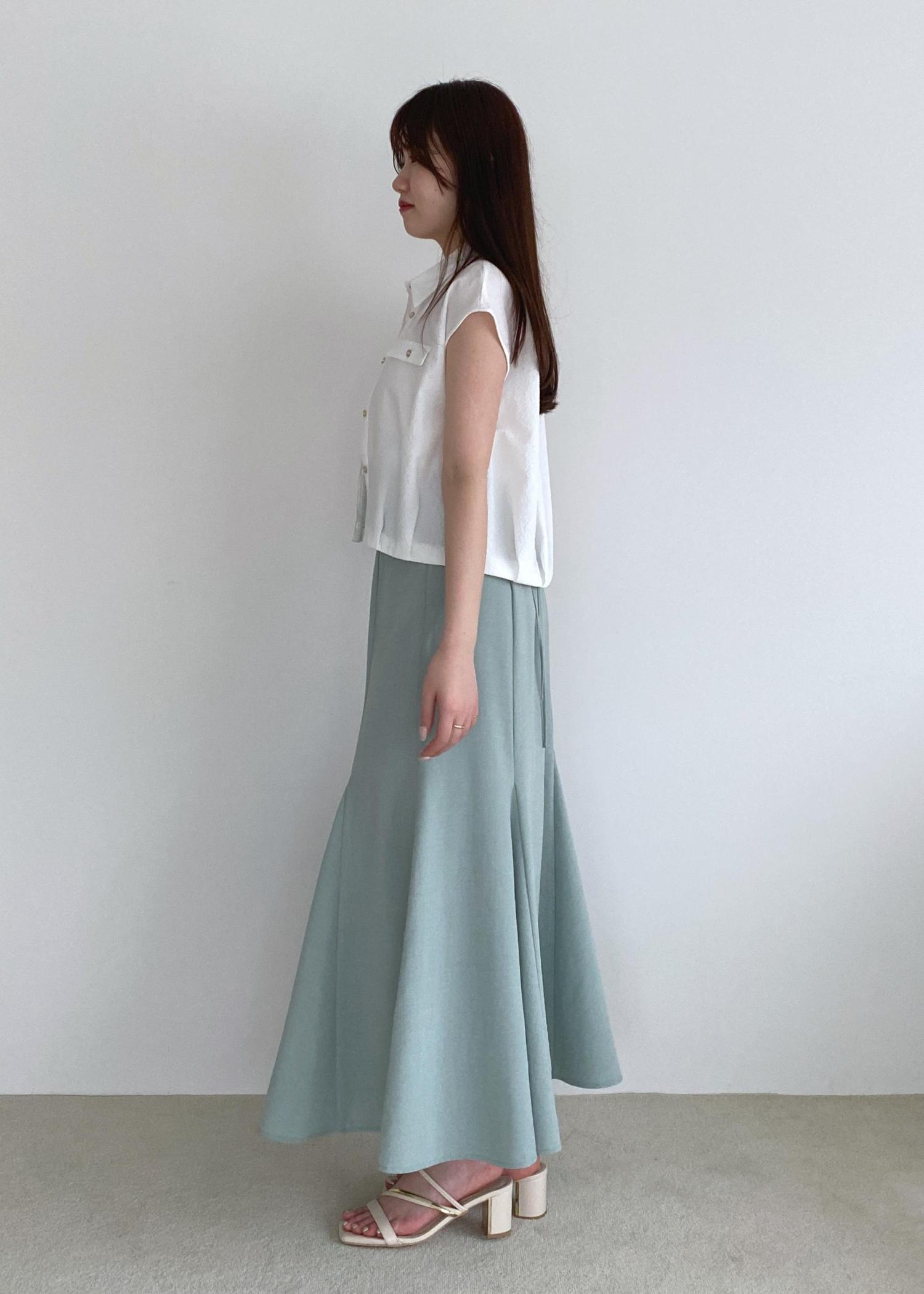 涼しげなブラウスに爽やかなカラーのマーメイドスカートを合わせて、海にもぴったりデートコーデ!