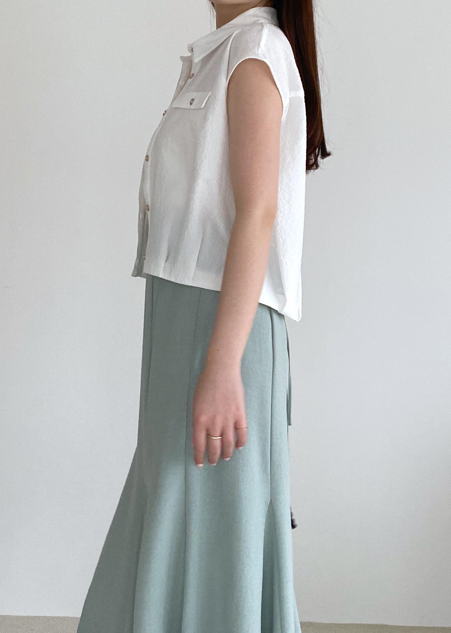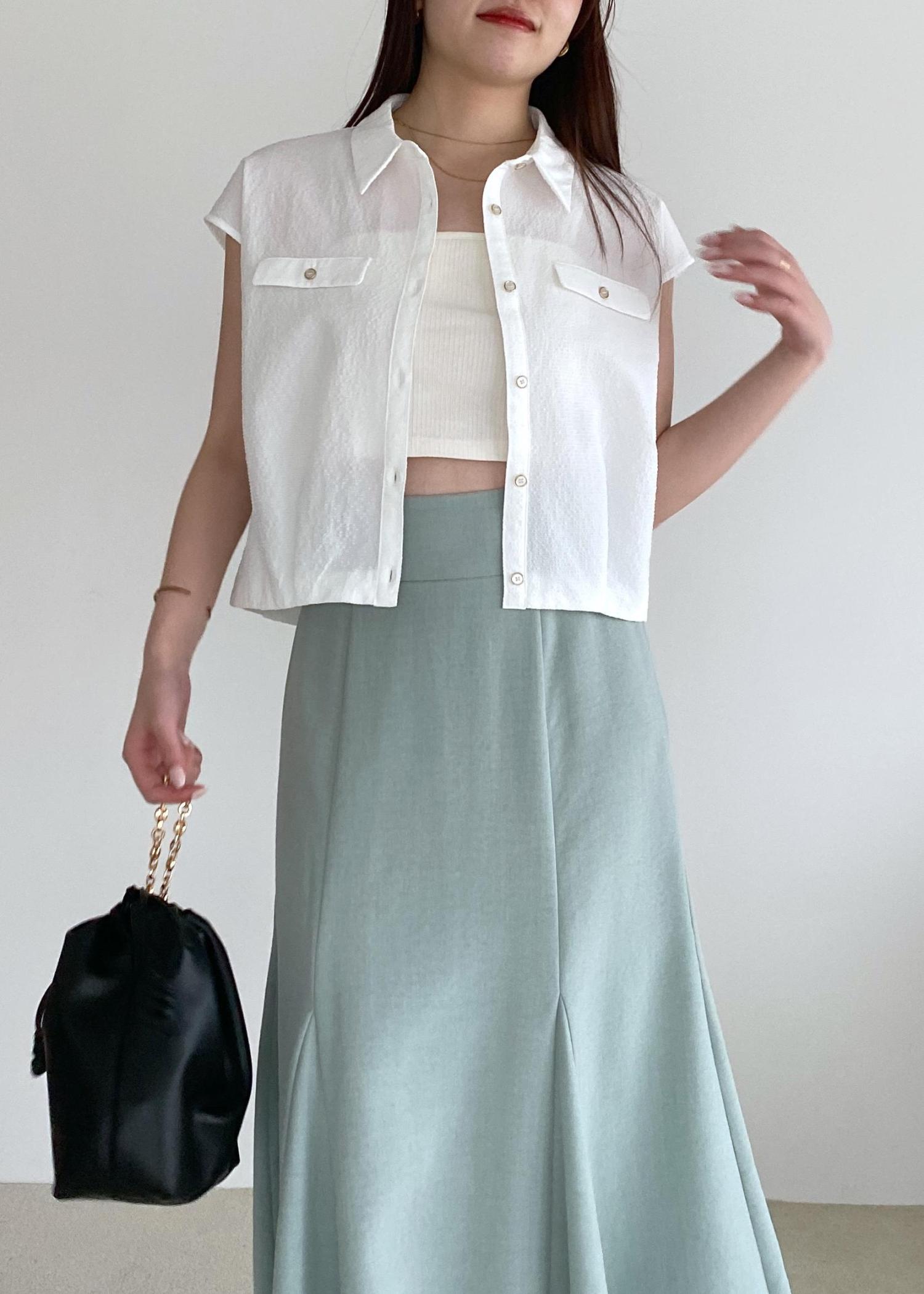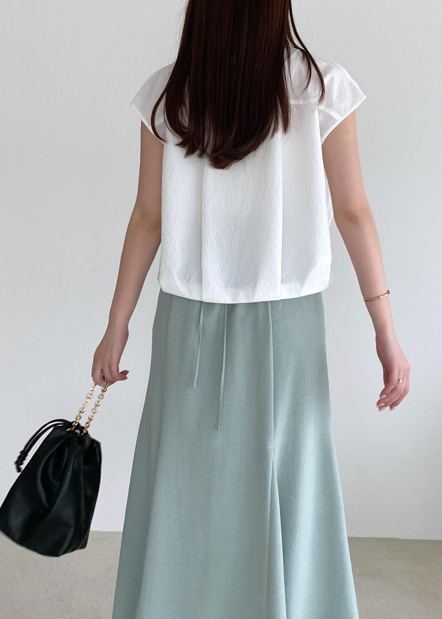 涼しげなブラウスに爽やかなカラーのマーメイドスカートを合わせて、海にもぴったりデートコーデ!